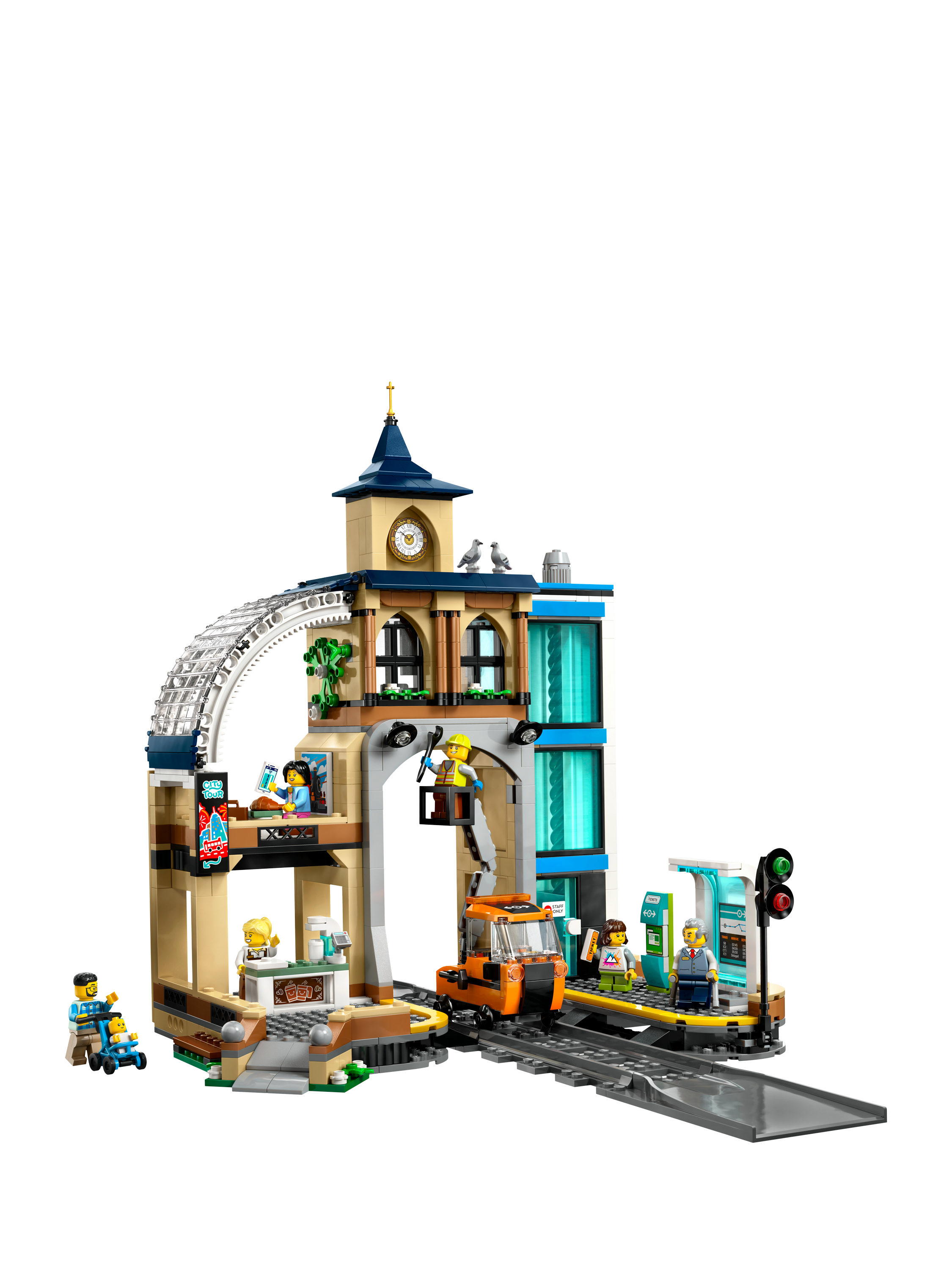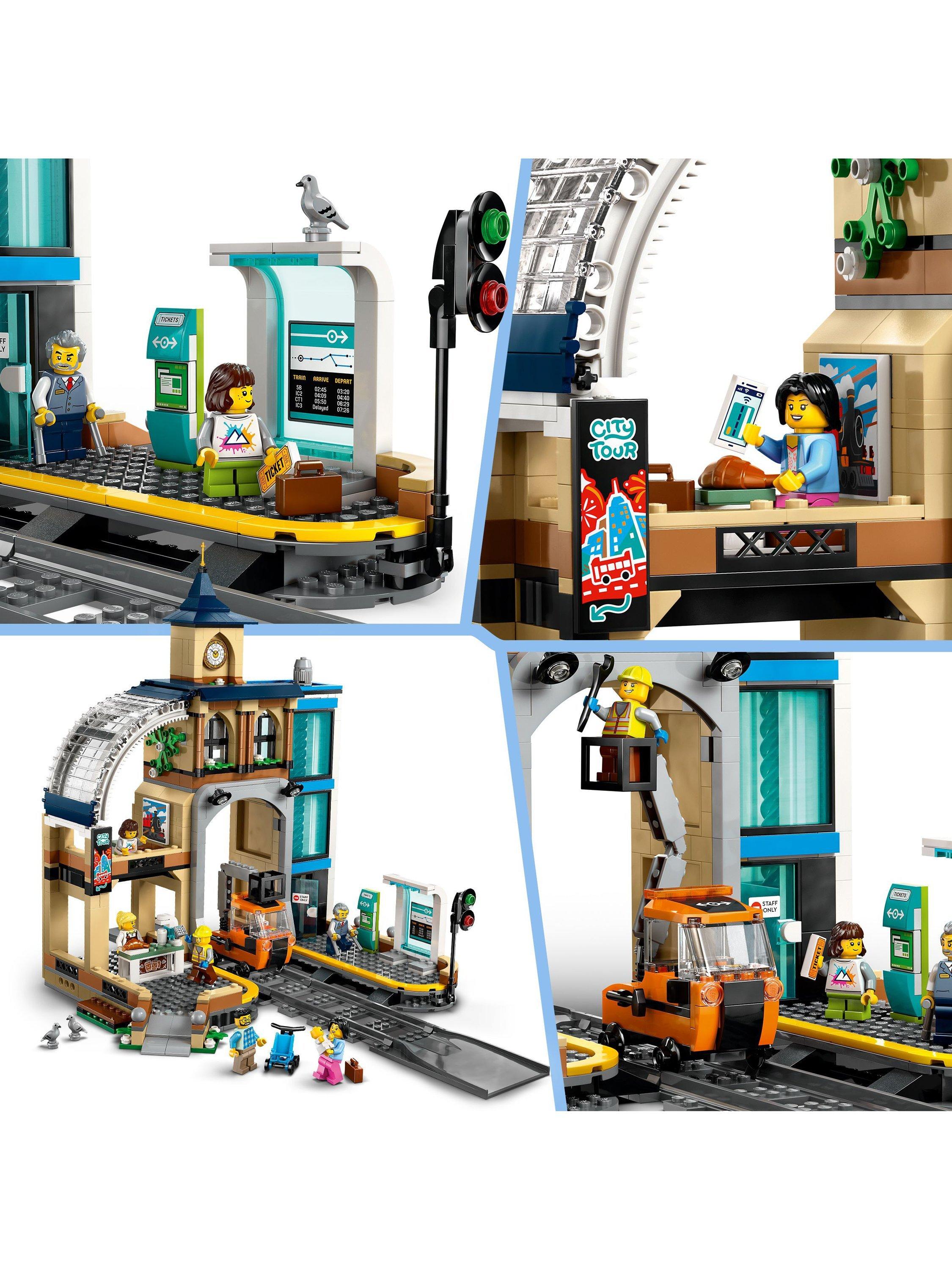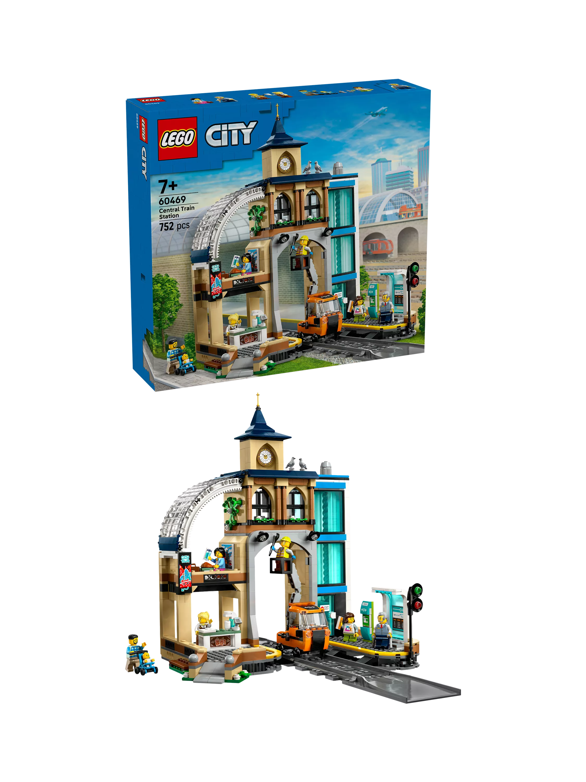 This LEGO City Central Train Station (60469) construction toy for 7+ year olds is packed with cool features for imaginative play across three levels. Topped with a classic clock tower, the toy train station set includes a cosy coffee bar, working lift, control room, bus stop, two passenger platforms, a timetable display and a ticket machine.