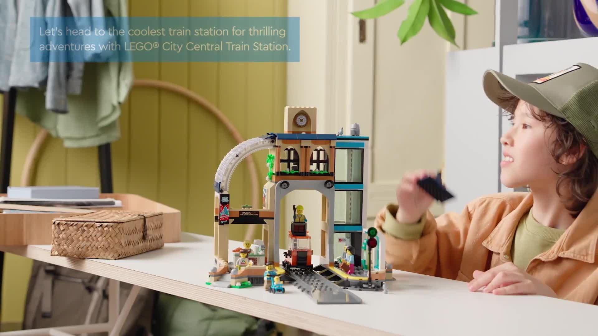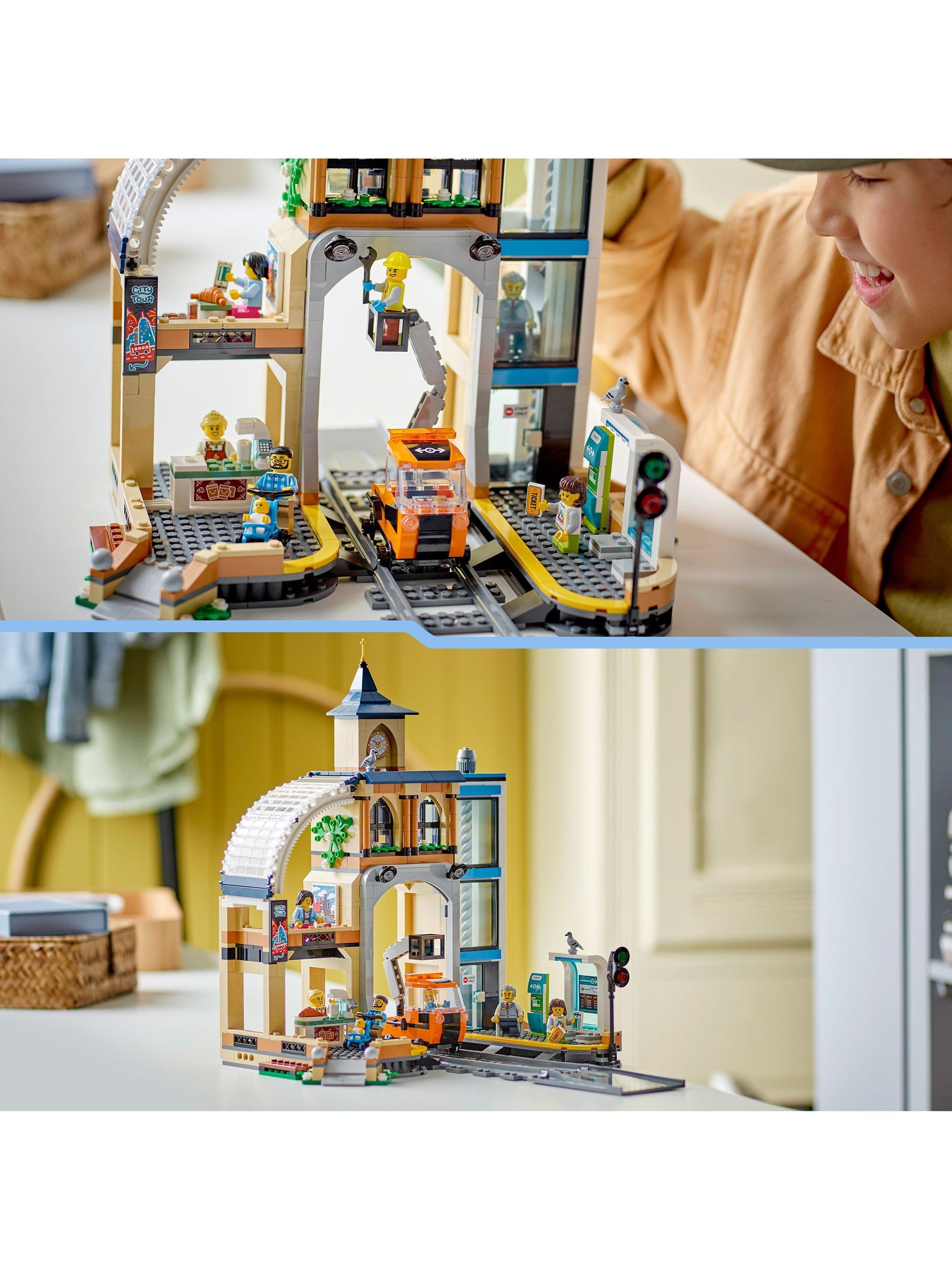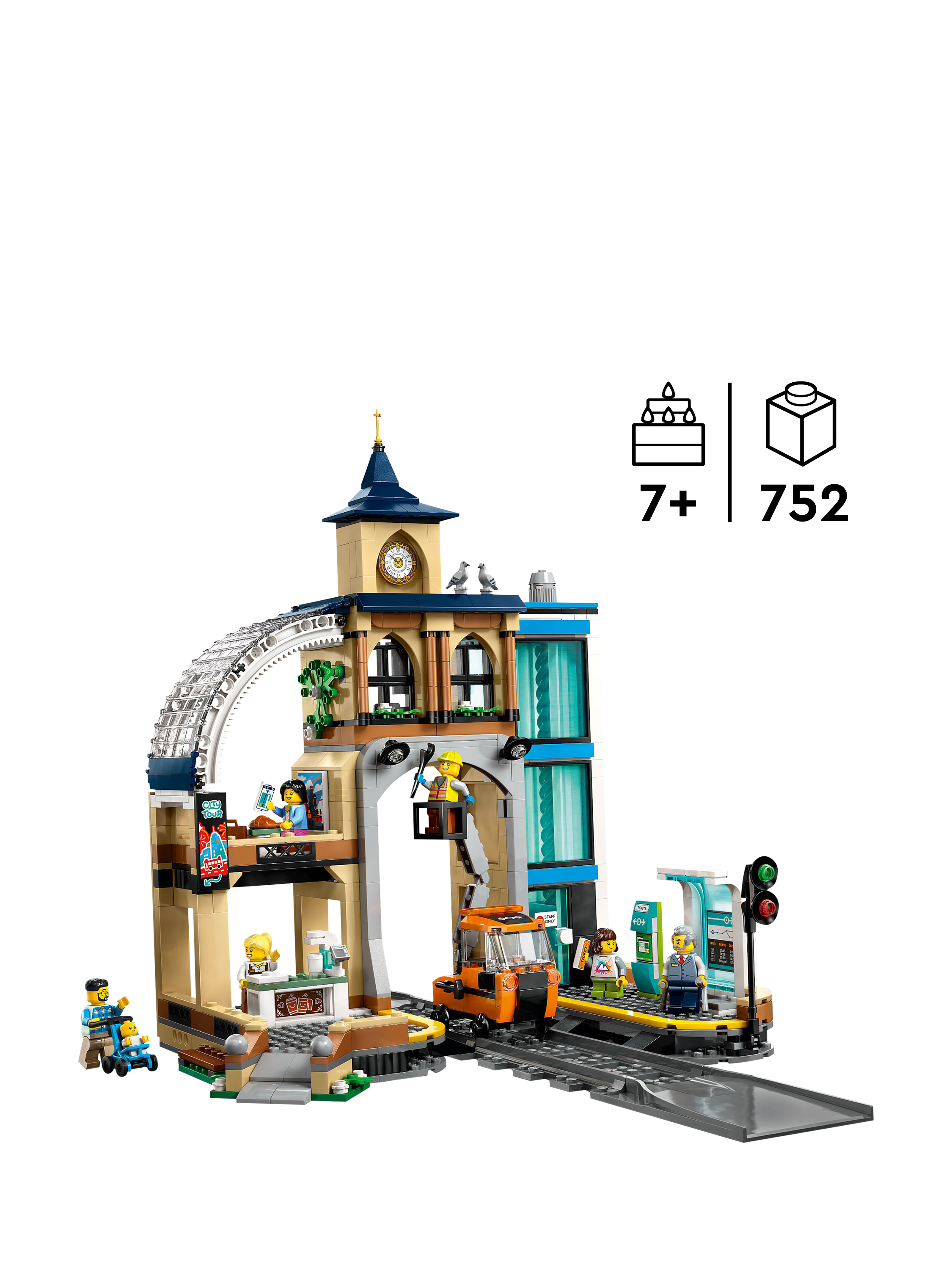 This LEGO City Central Train Station (60469) construction toy for 7+ year olds is packed with cool features for imaginative play across three levels. Topped with a classic clock tower, the toy train station set includes a cosy coffee bar, working lift, control room, bus stop, two passenger platforms, a timetable display and a ticket machine.