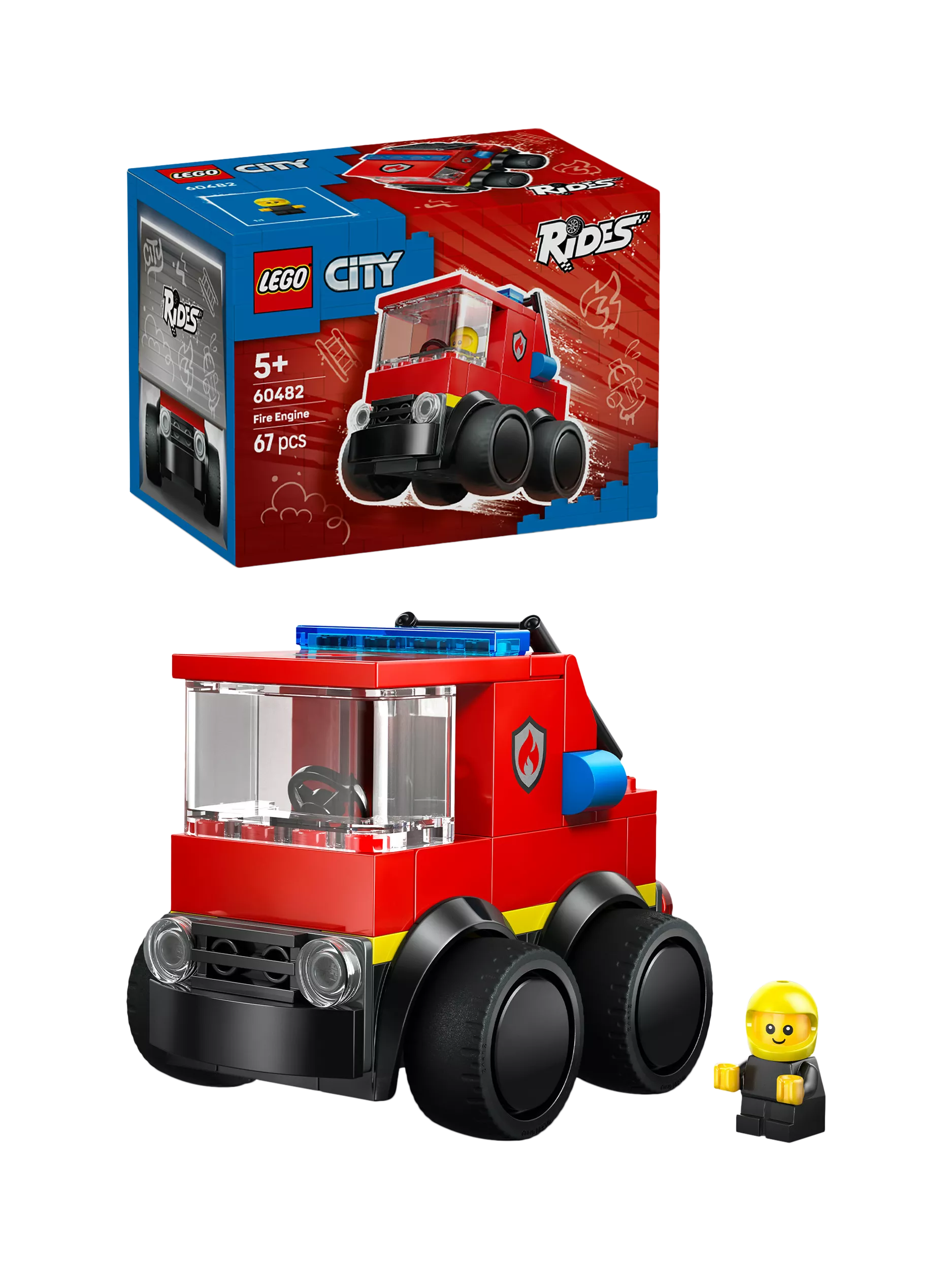 Ignite exciting rescue adventures with this easy-to-build LEGO City Rides Fire Engine (60482) toy for kids.