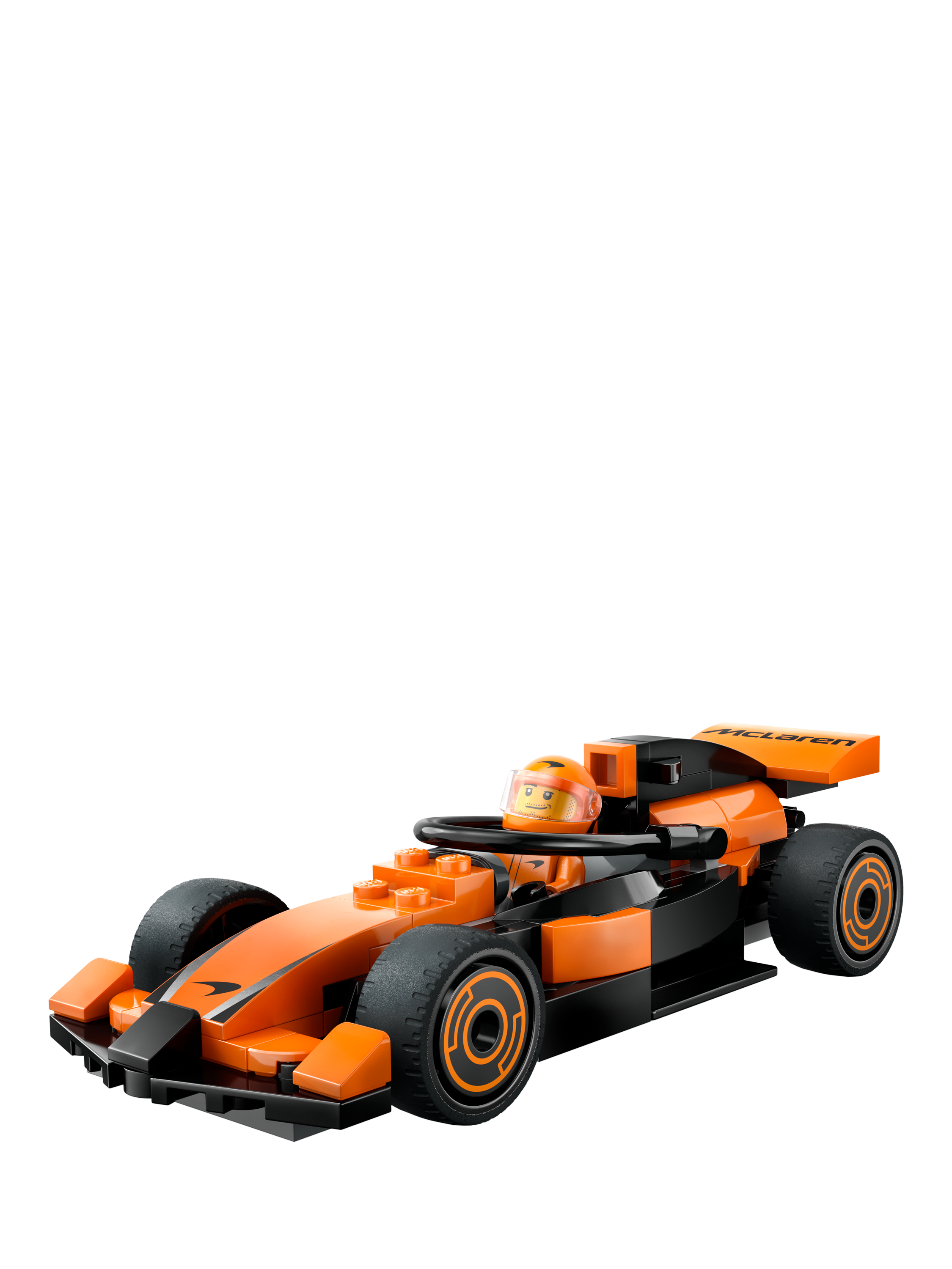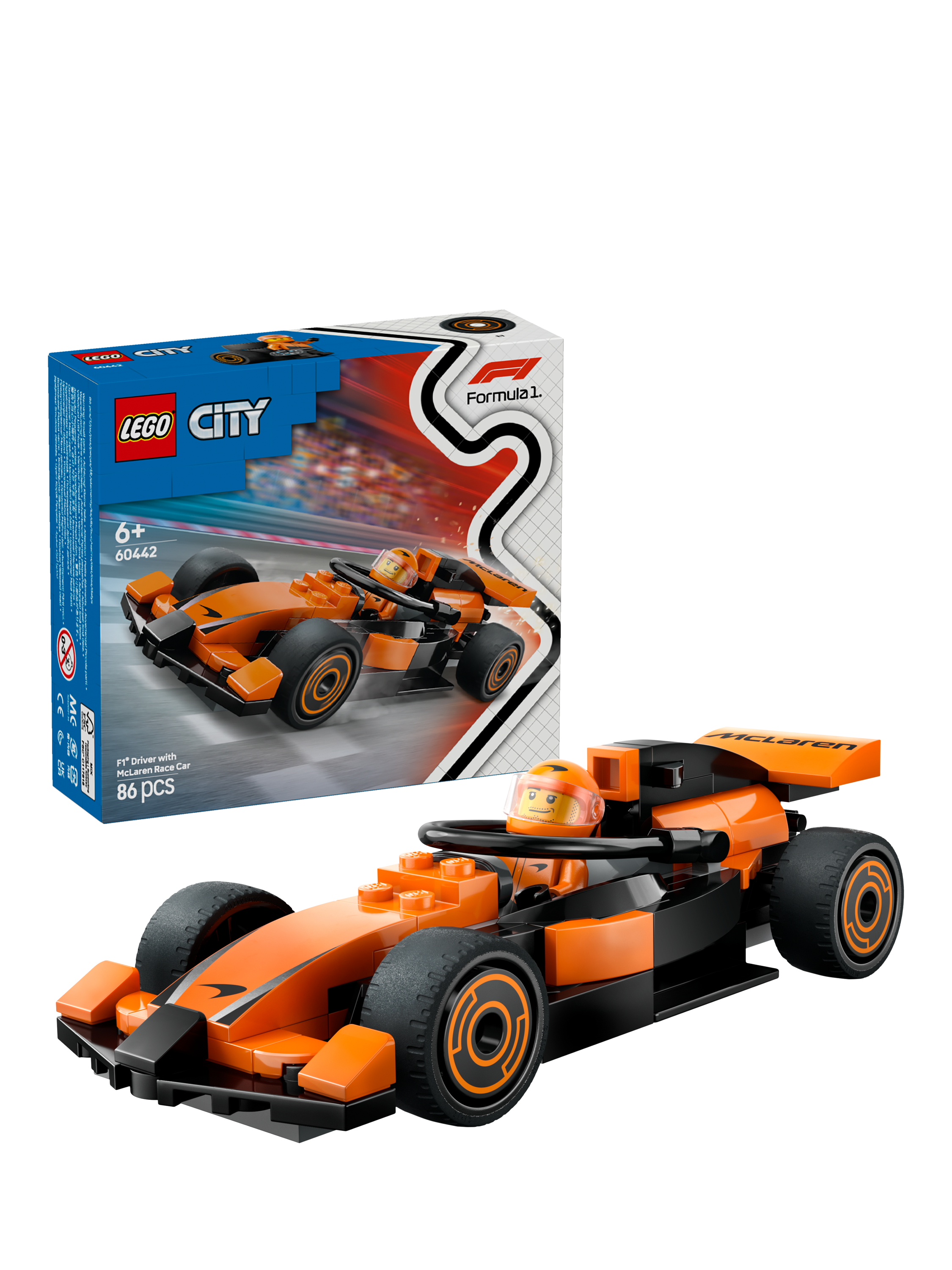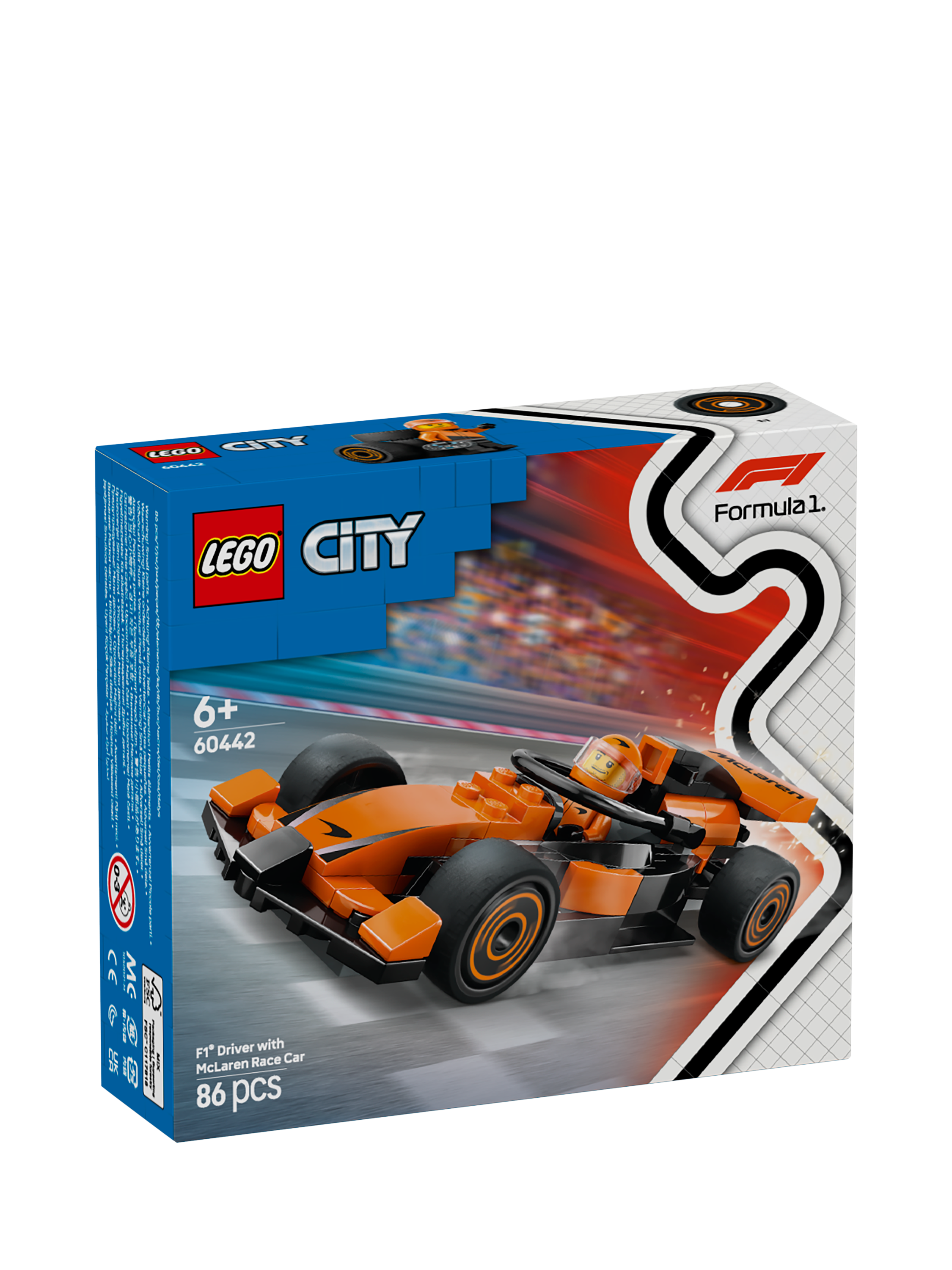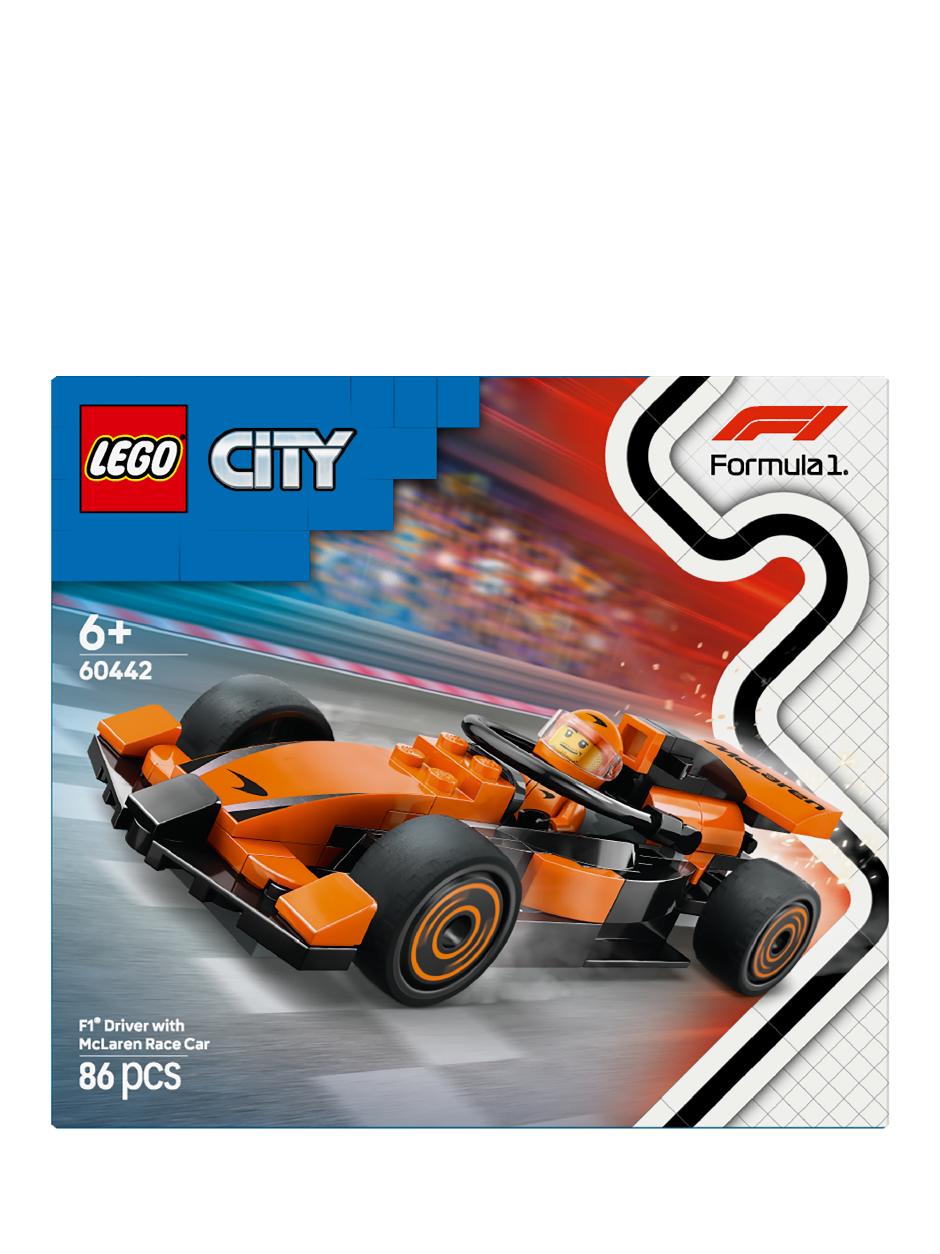 Kids can dive into the excitement of high-speed racing with the LEGO® City F1® Driver with McLaren Race Car (60442) set. Perfect for race enthusiasts aged 6 and over, the mini vehicle toy features a super-aerodynamic Formula 1® design with slick tyres and comes with an F1 McLaren driver minifigure for imaginative play and storytelling.