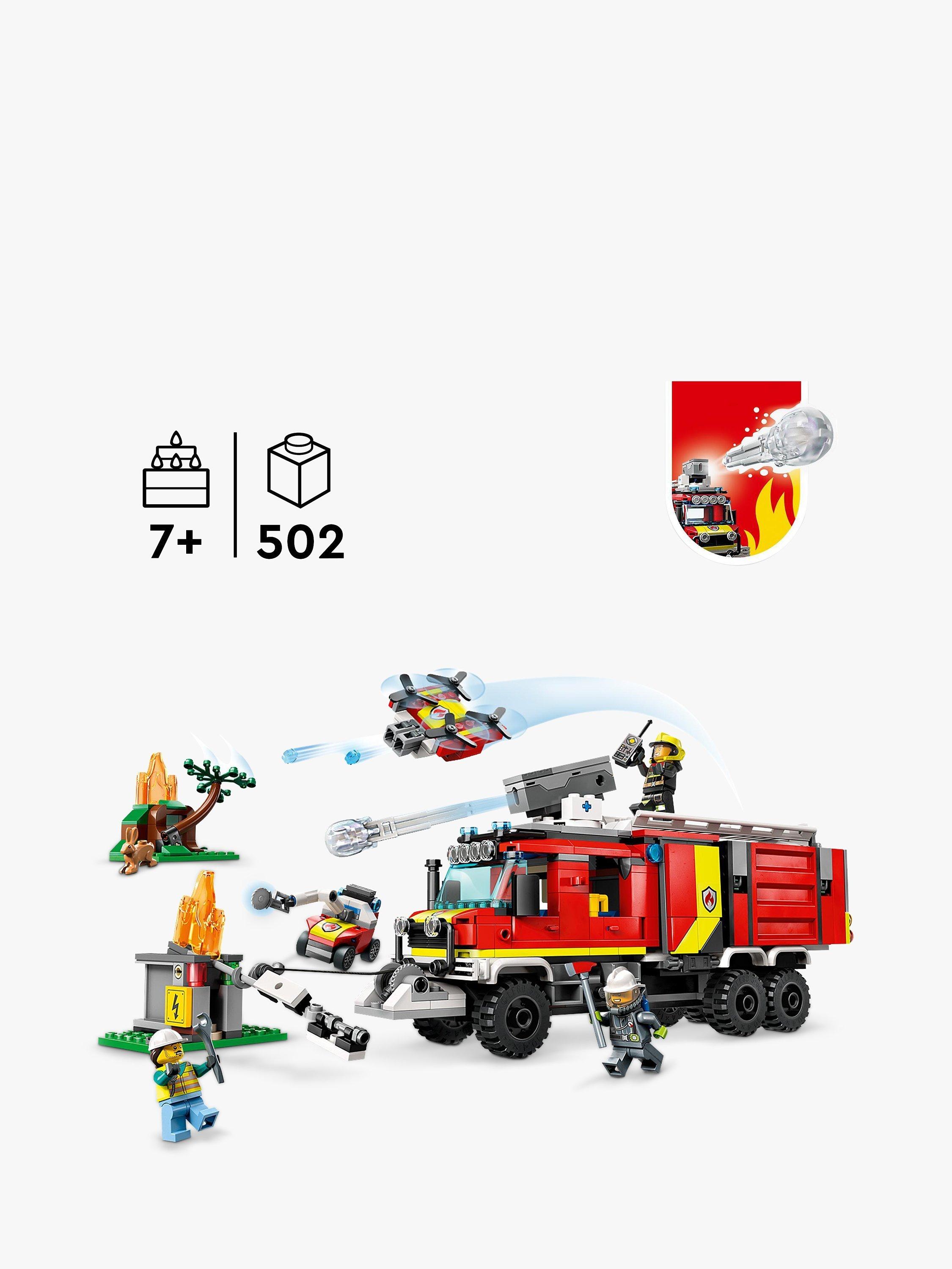 - Contains 502 pieces and includes a fire drone, land drone and control centre, plus city and forest fire settings, 3 minifigures and a rabbit