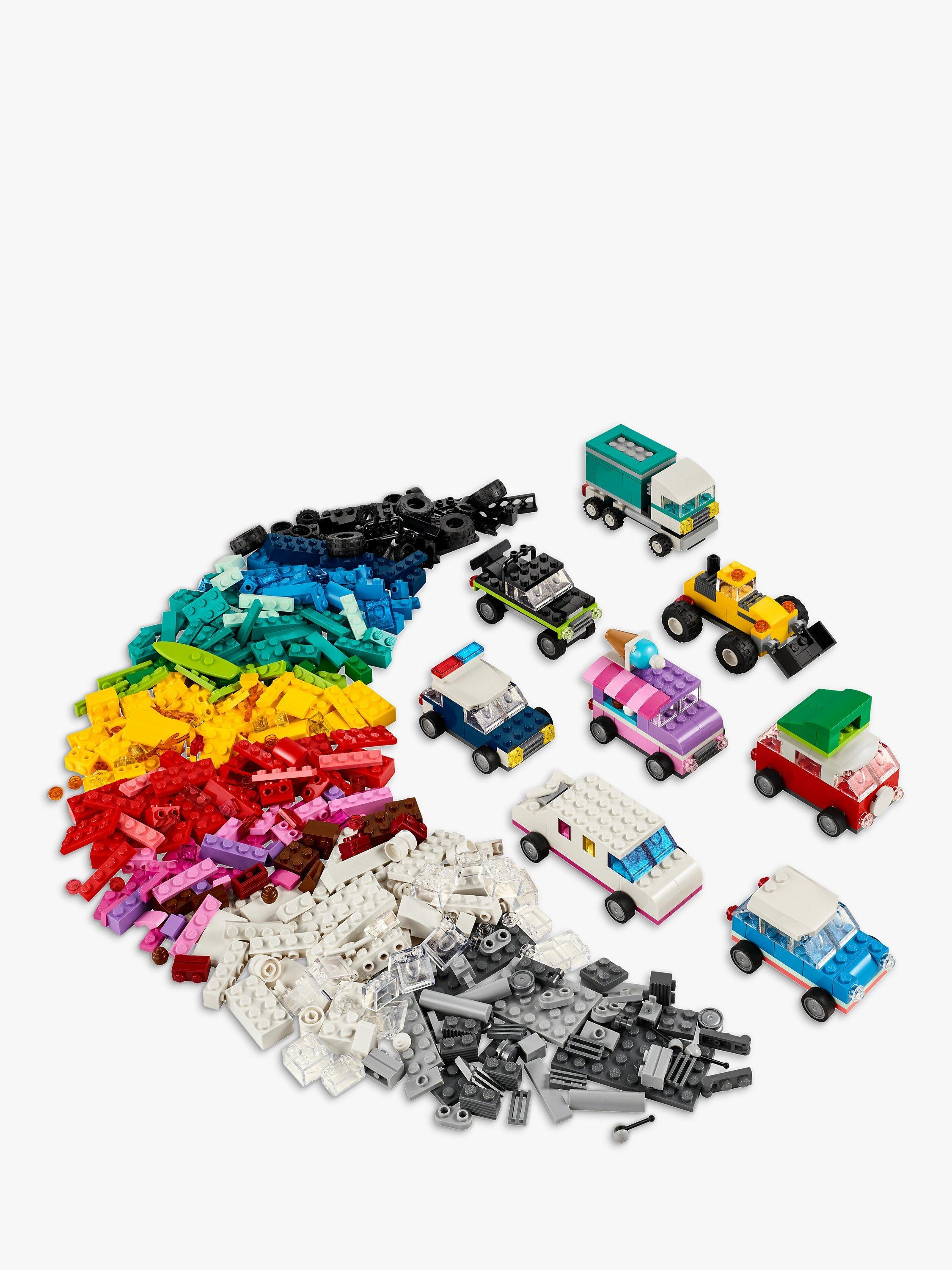 Strap yourself in and rev up the fun with the coolest collection of customisable LEGO® vehicles! Create a police car, ice-cream van, ATV, front loader, truck, limo, off-roader and an estate car. Use colourful bricks, special pieces and 50+ wheels to customise your ride. Discover 10 ideas to make your cars even more awesome!