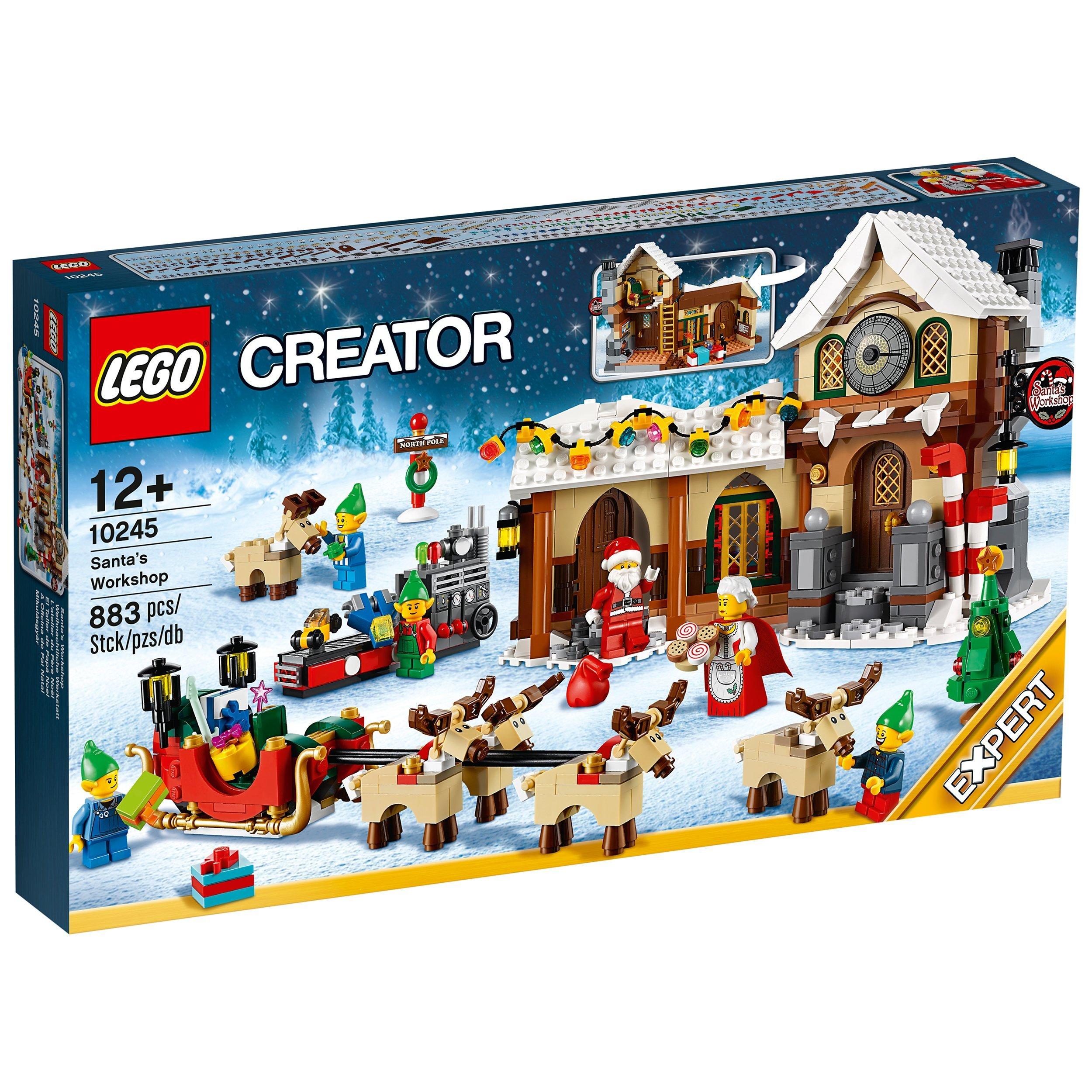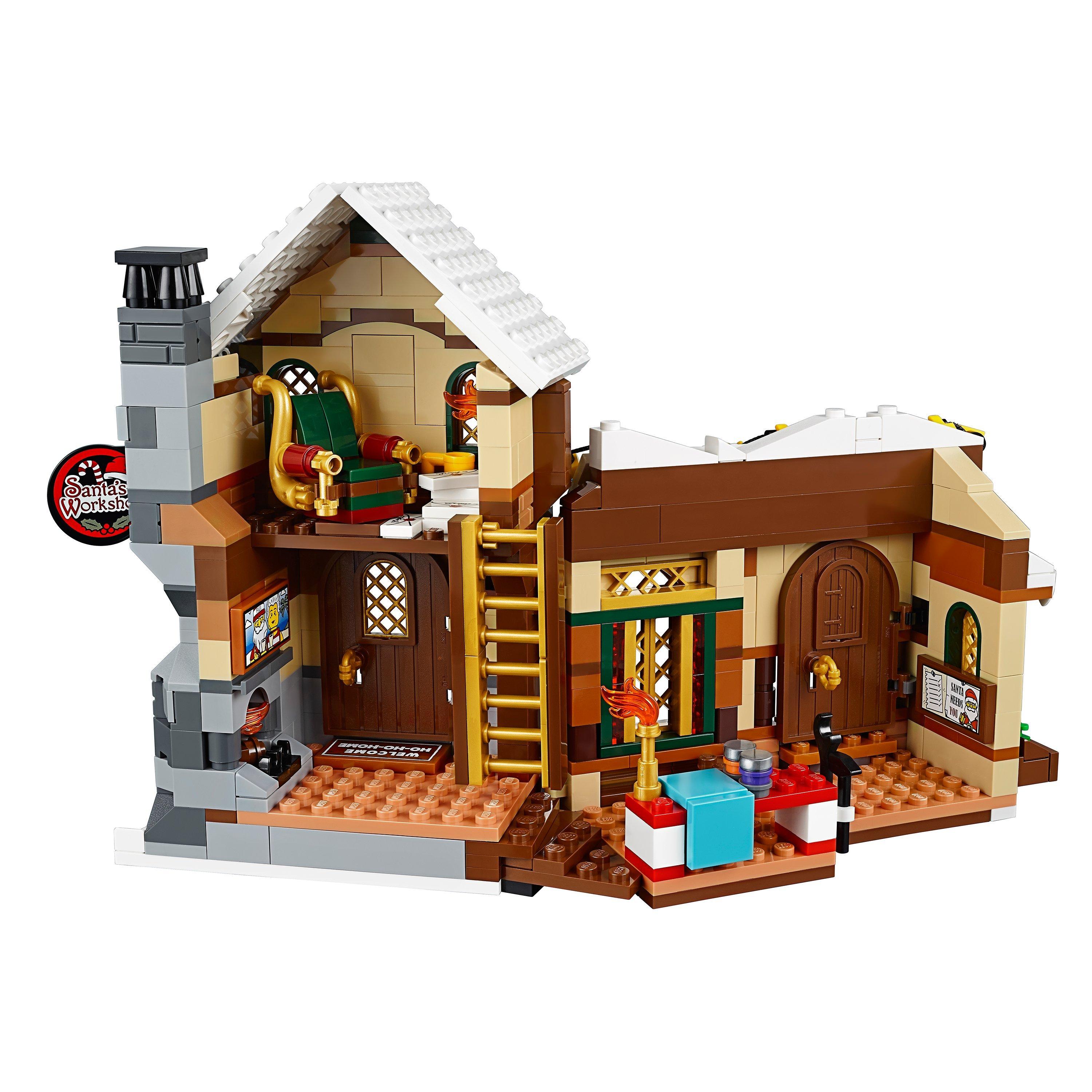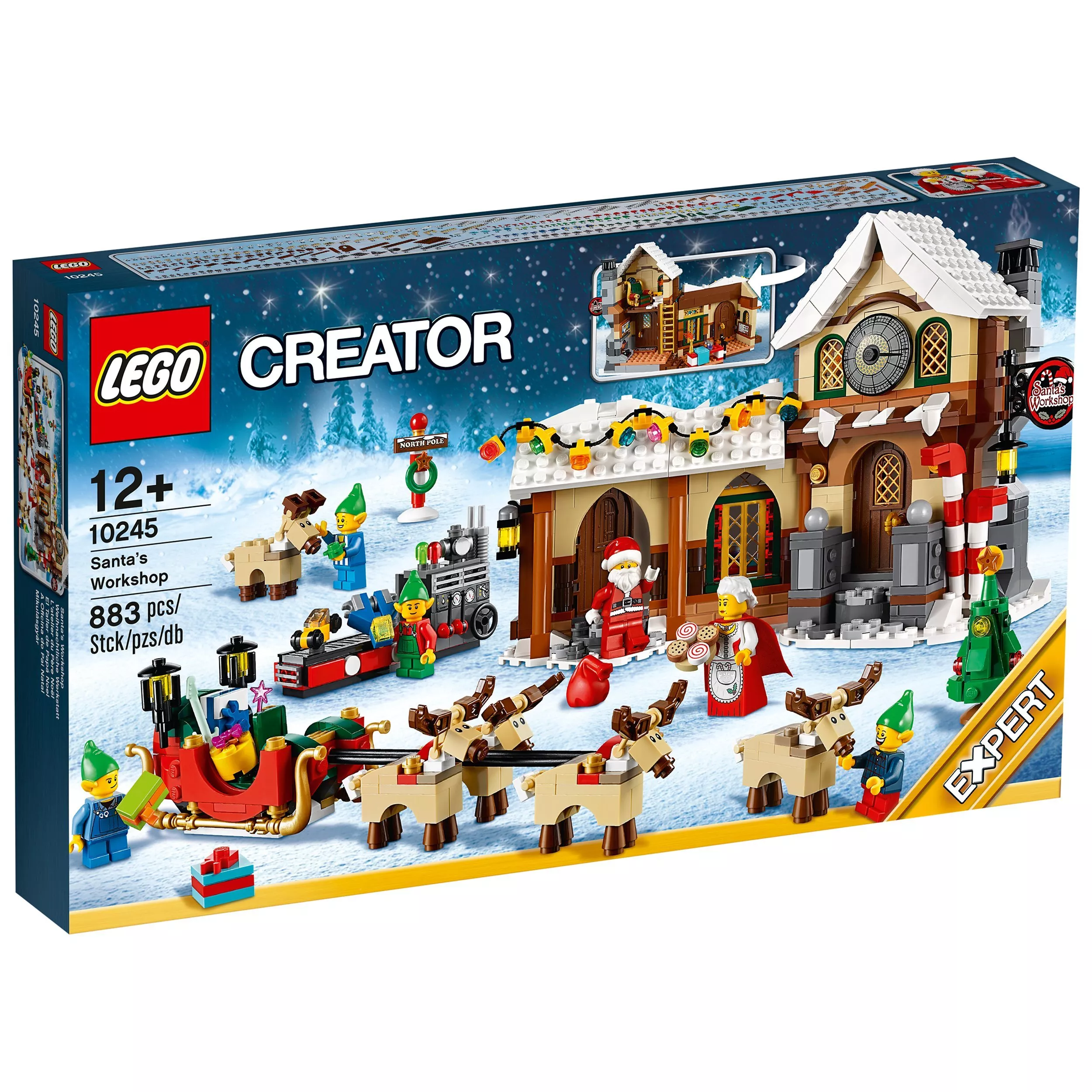 This festive addition to the LEGO Creator Winter Village Series includes 6 minifigures: Santa with red gift sack, Mrs. Claus with biscuit tray and 4 elves with pointy ears and hats.
