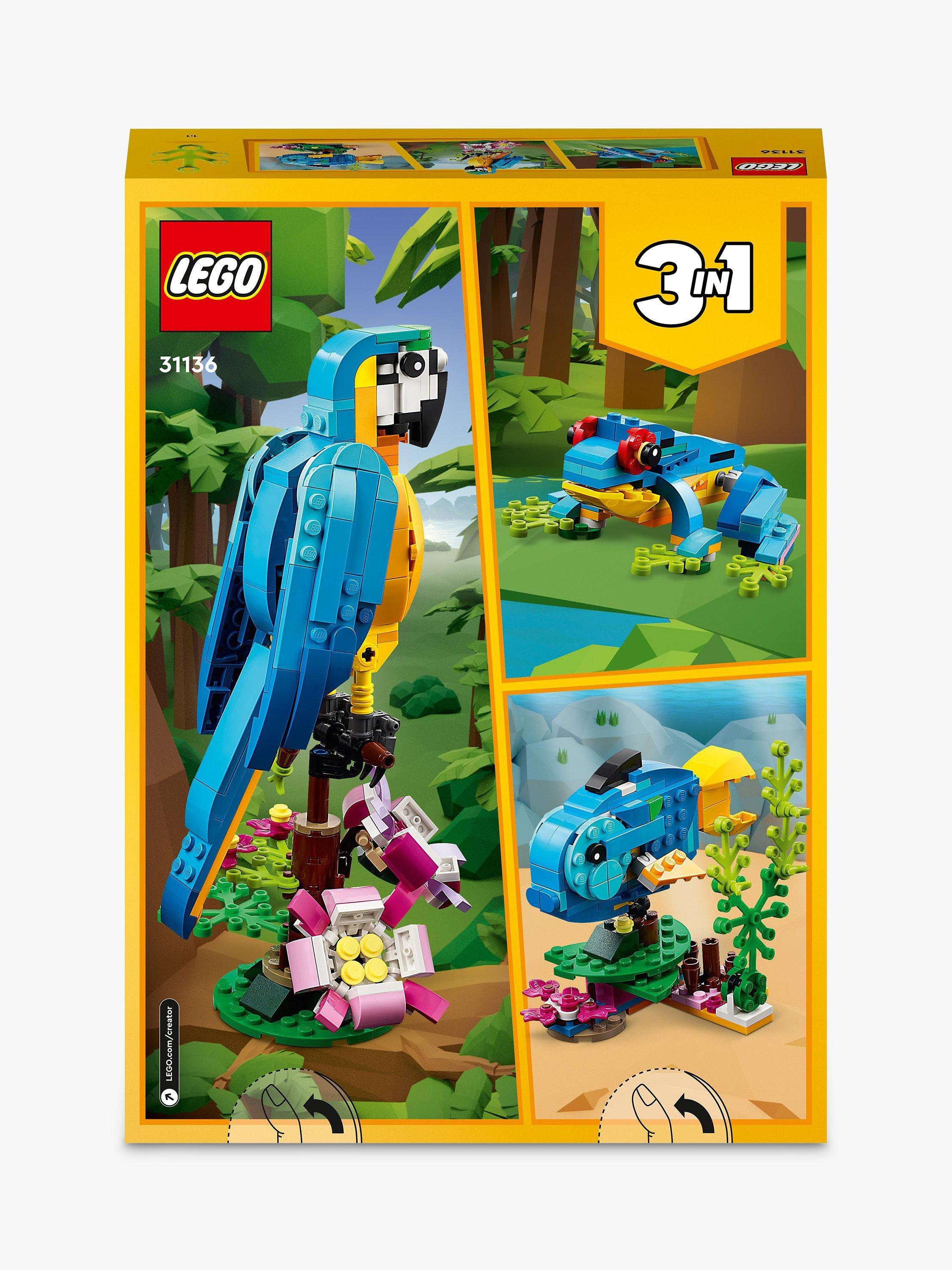 - Includes 253 bricks and pieces, featuring 3 models in 1 – a parrot, fish, and a frog