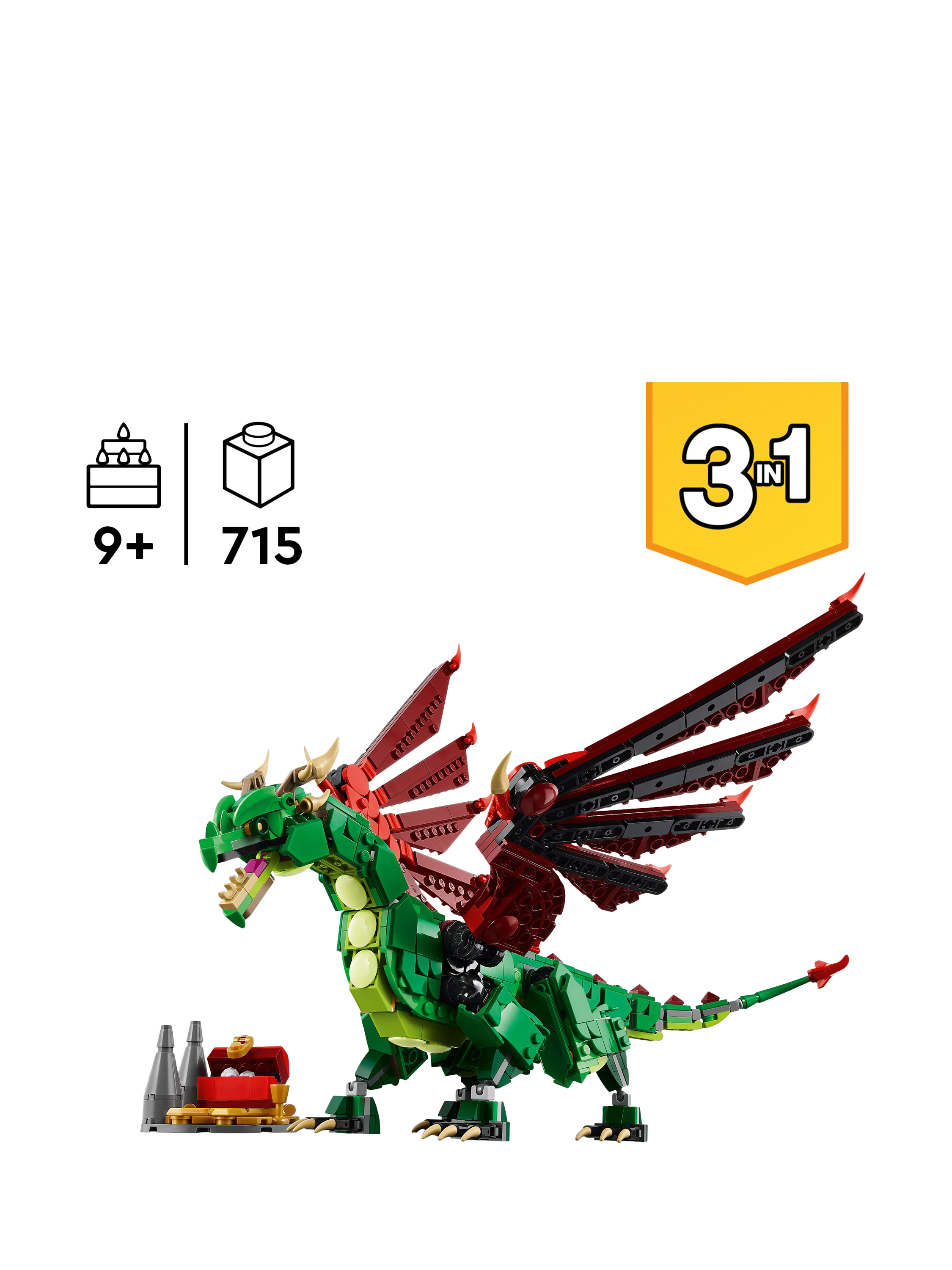 Delight your little time traveller with this LEGO Creator Medieval Dragon (31161) building toy for 9+ year-old girls and boys.