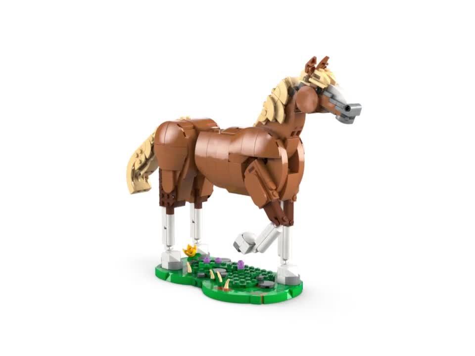 Animal-loving kids can dive into exciting playtime with the LEGO Creator Beautiful Horse (31166) toy, designed for 9+ year olds. This highly posable animal figure brings realistic movement with its articulated head, neck, hips, ankles, tail, and even one of its knees. It also includes a grass-effect base, allowing kids to showcase their creation in three dynamic stances: standing gracefully on three or four legs, or dramatically rearing up on its two hind legs.