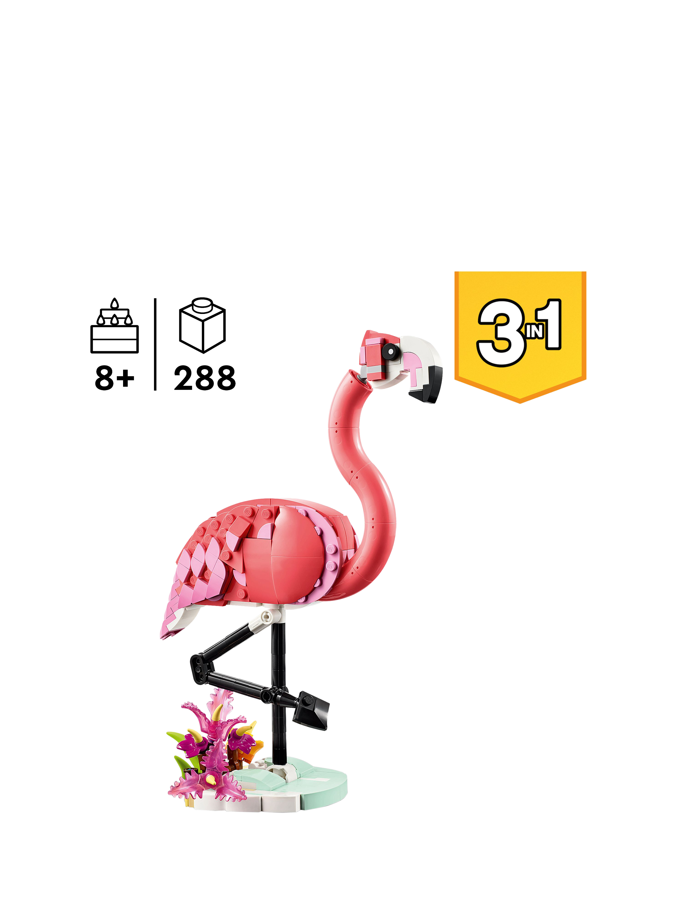 Delight animal-loving girls and boys aged 8 and over with this fantastic LEGO® Creator 3in1 Wild Animals: Pink Flamingo (31170) toy playset.