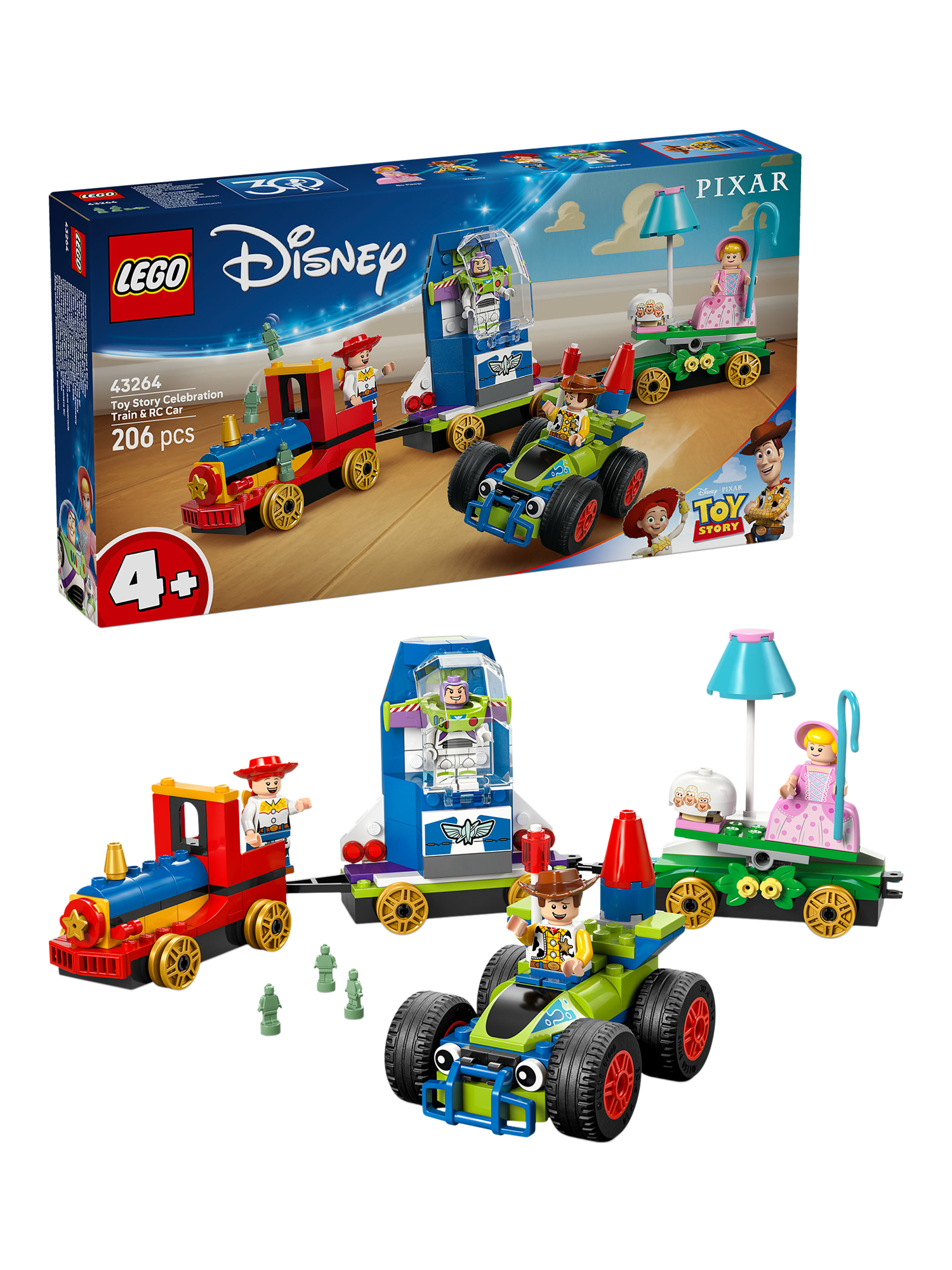 Kids who love vehicles and trains will find all that and more in this LEGO Disney Pixar Toy Story Celebration Train and Radio Controlled Car (43264) building toy for 4+ year olds.