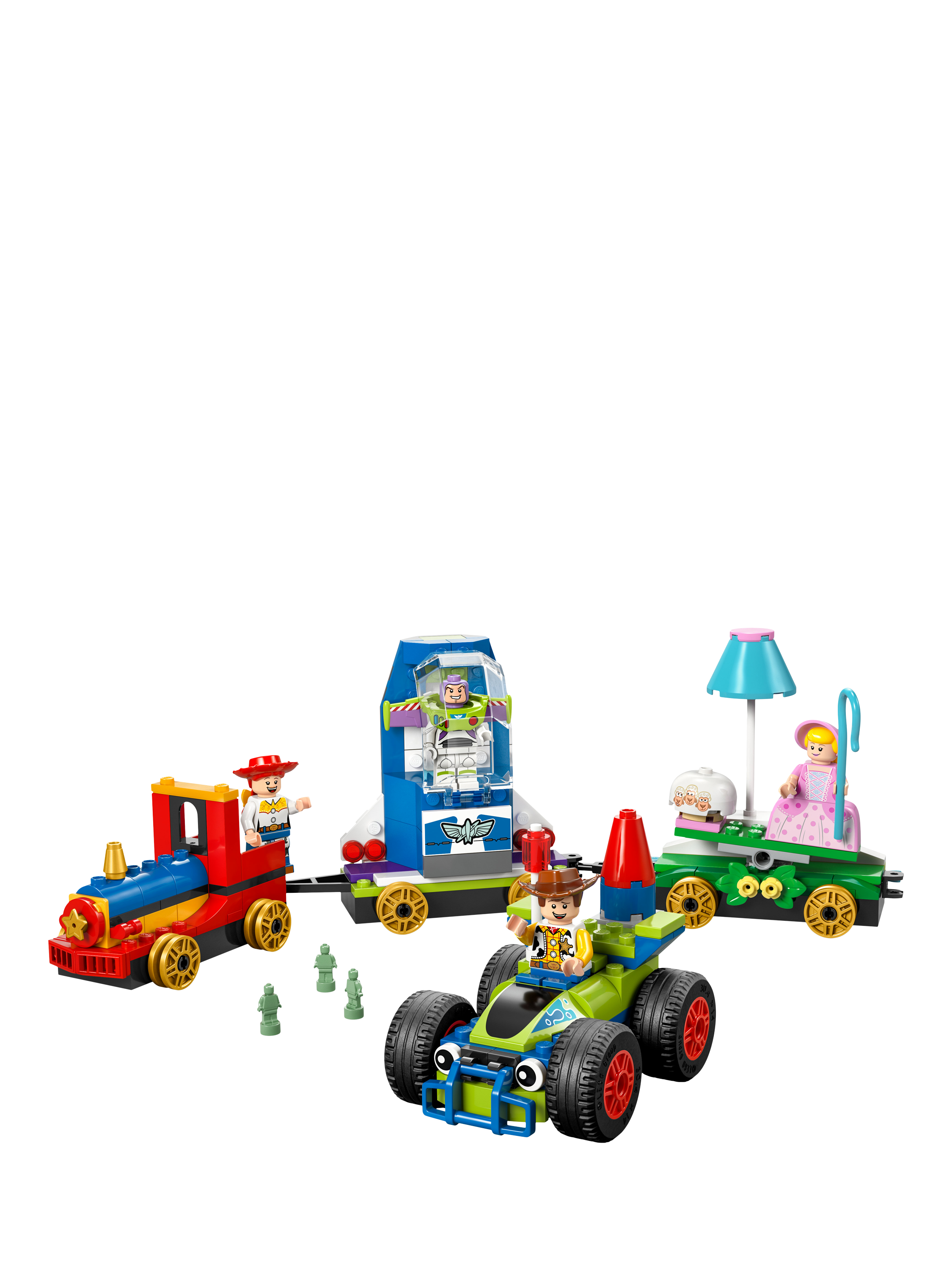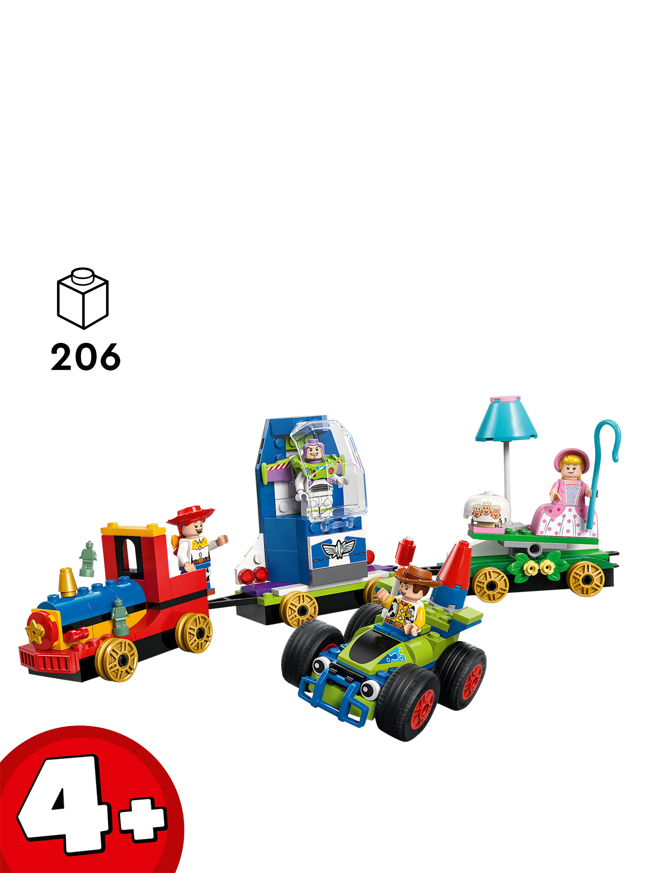 With this building toy set, children learn to build as they celebrate the 30th anniversary of Disney and Pixar's hit Toy Story with a Western-inspired train engine, two floats (a seesaw and a spaceship) and a buildable car toy. The LEGO 4+ set also includes four LEGO Disney and Pixar characters: Woody, Jessie, Bo Peep and Buzz Lightyear.