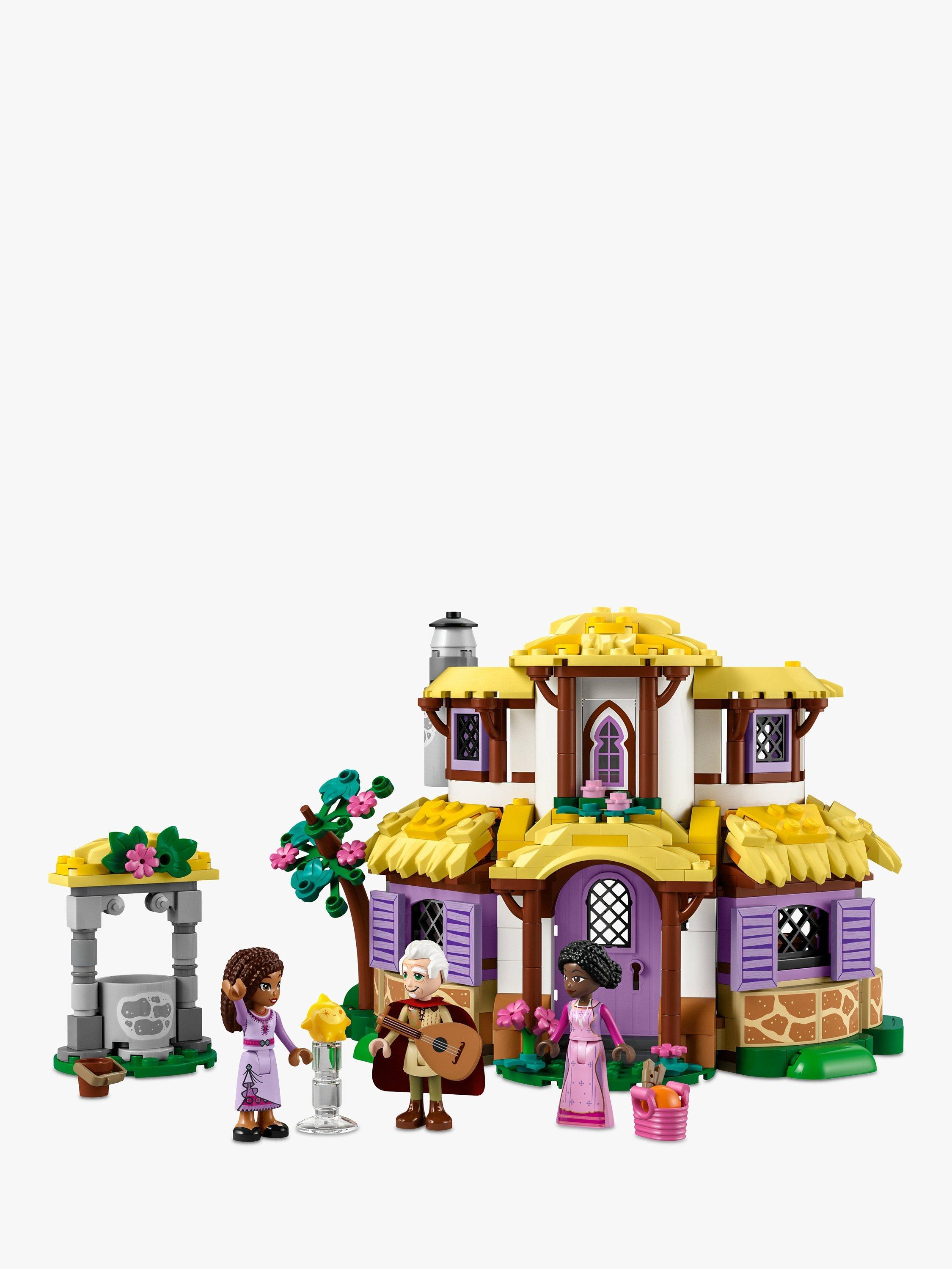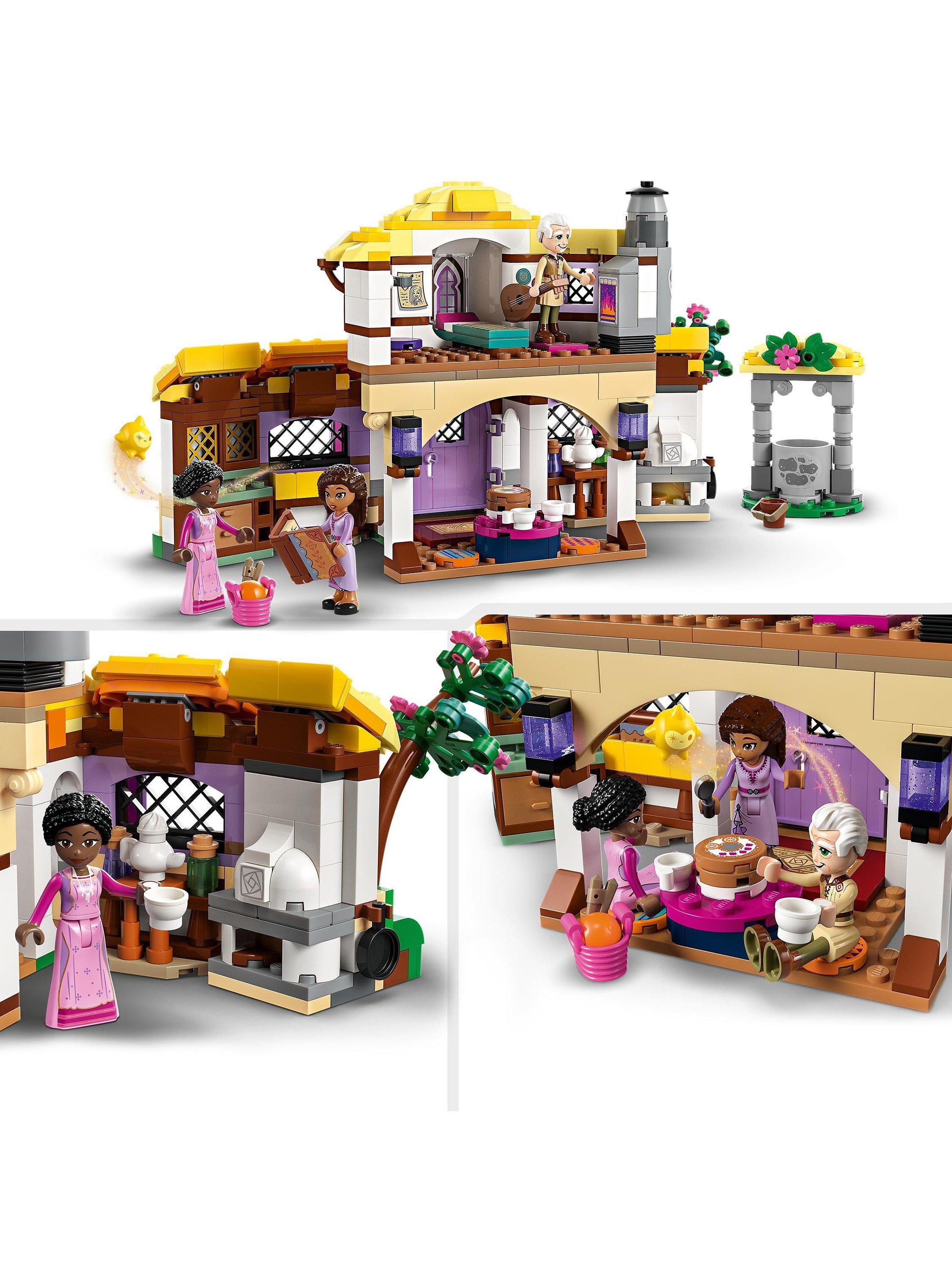 Visit Asha at home! The detailed LEGO® Disney set welcomes you to Ashas home in the Hamlet with her mum and granddad. Step inside the round, 2-level house and start exploring. Warm yourself by the fireplace as you look through Ashas notebook. Check out the smiley-face cake, waiting for the right moment. Then head upstairs to the bedroom for a rest or outside to the wishing well and make a wish!