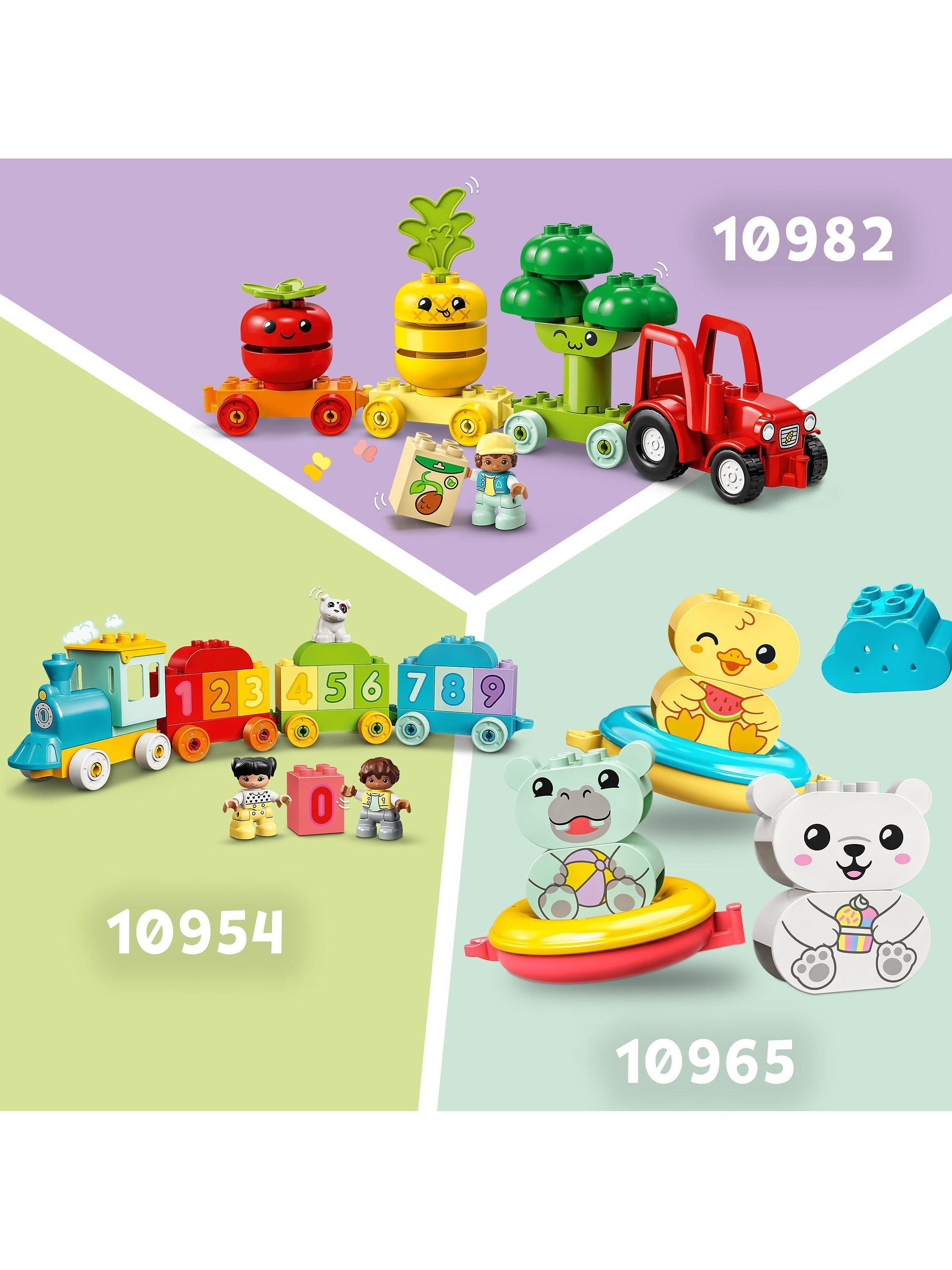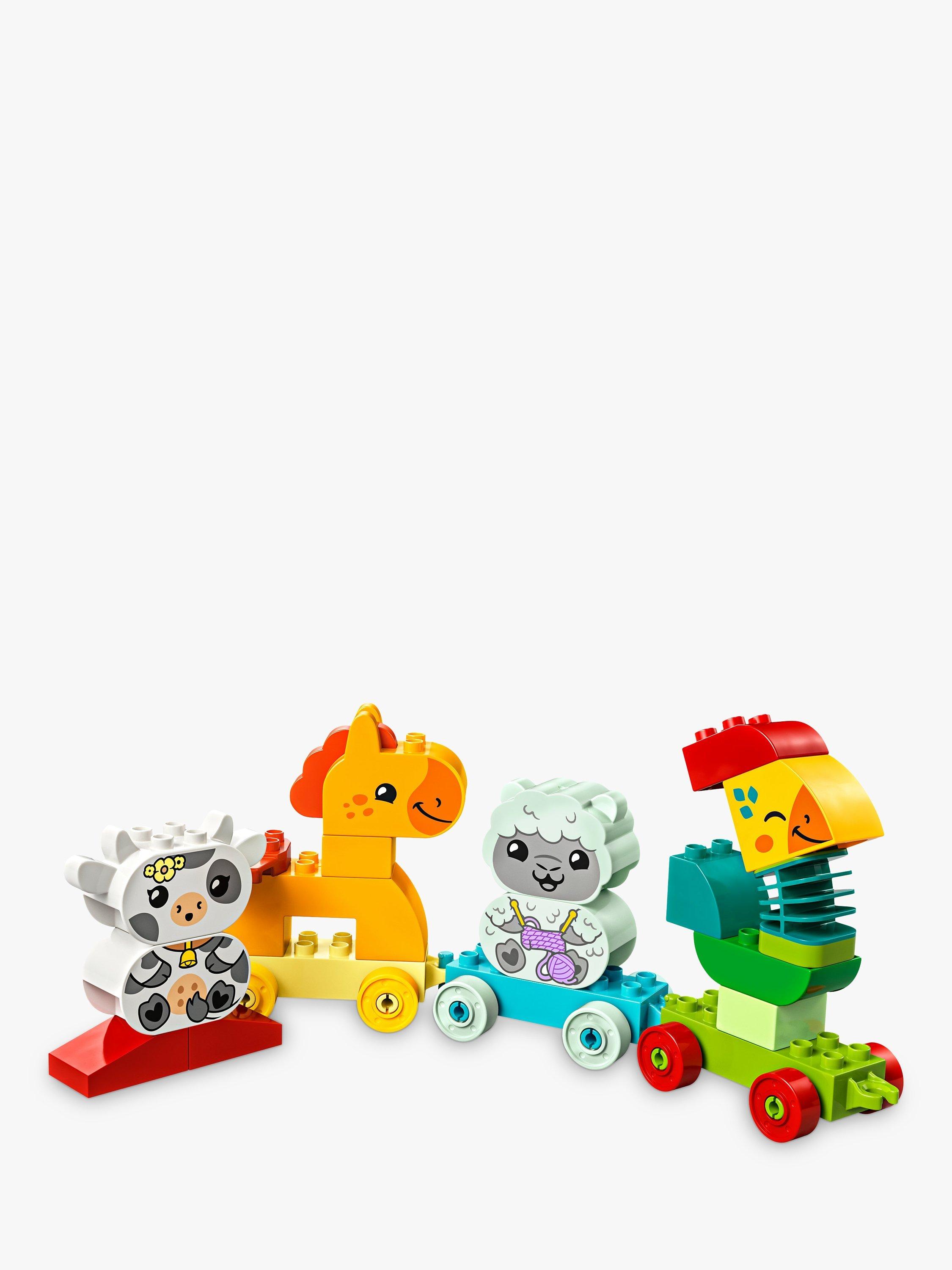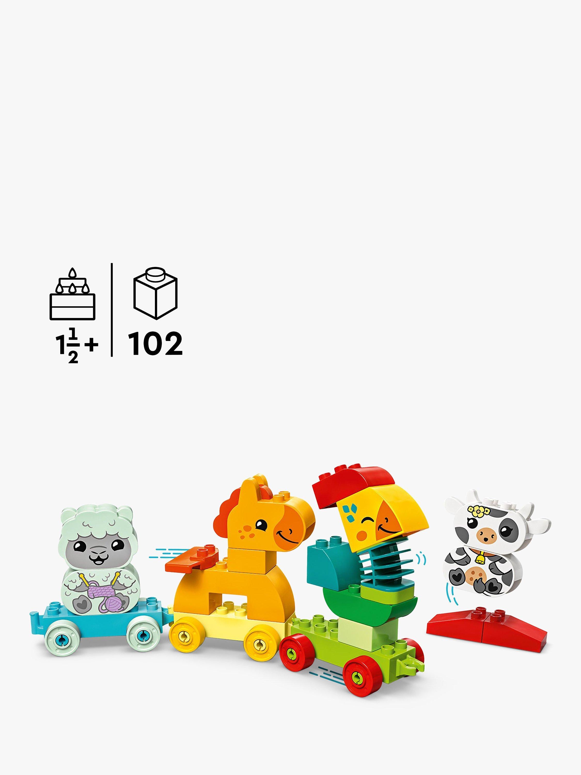 All aboard for hours of creative colour-matching with the fun LEGO® DUPLO® My First Animal Train. Toddlers decide which animal should sit on which carriages, depending on their colour, and build and rebuild the cute farm animals in whichever way they choose. They'll develop important motor skills as they connect the carriages and wobble the rooster's flexible neck.