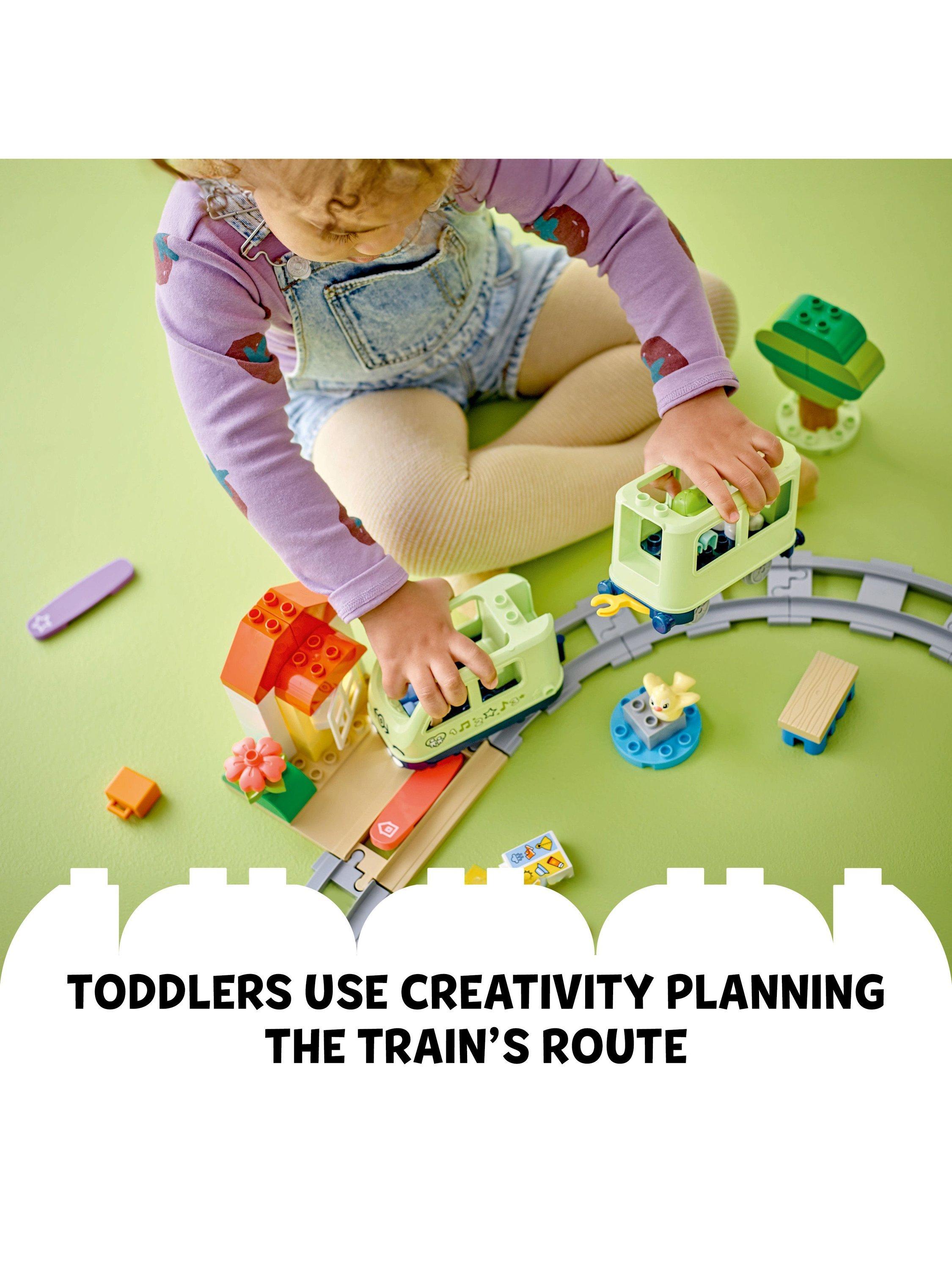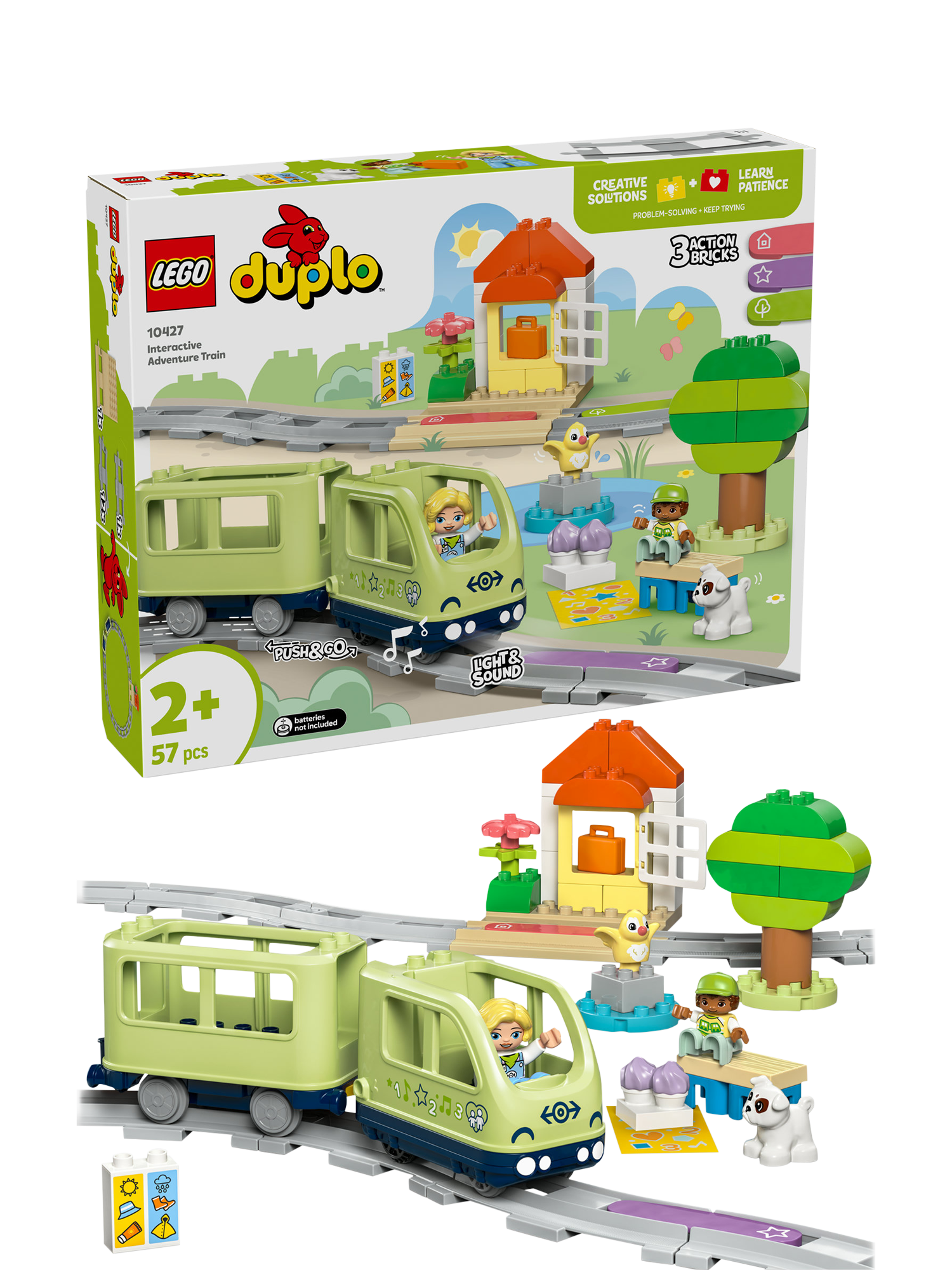 Preschoolers take the driving seat with the Interactive Adventure Train (10427) toddler toy. This train toy for kids aged 2+ lets little ones decide the destination for a family trip, then set off on a journey filled with lights, sounds and learning.