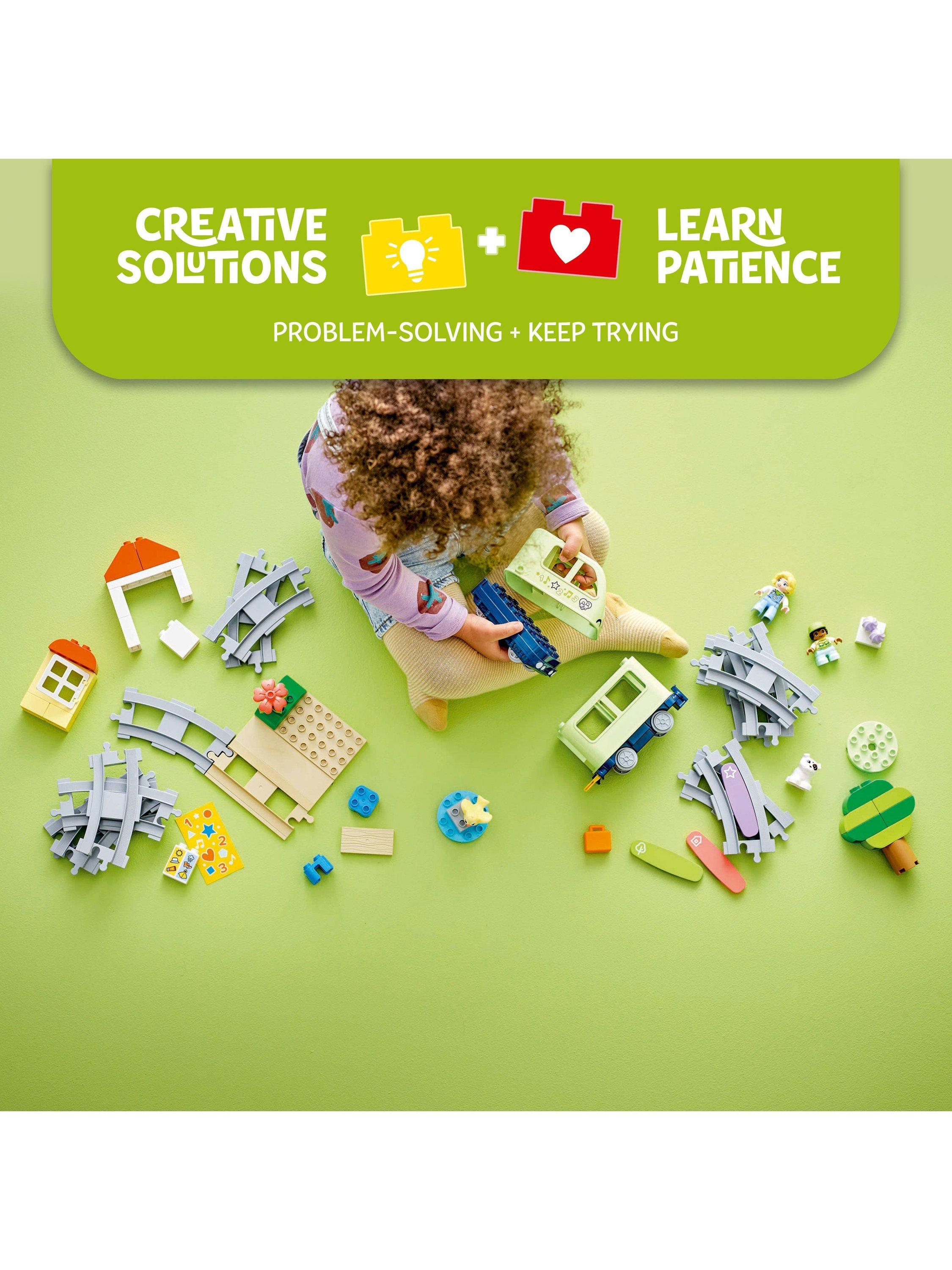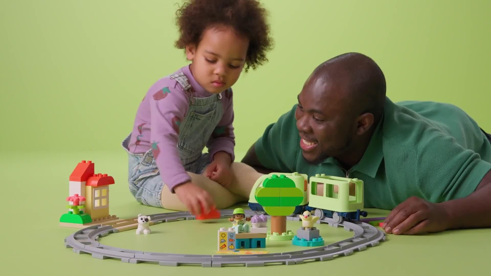 The 3 action bricks bring play to life, prompting the toy train to make realistic noises as it passes over them, boosting toddlers’ prediction skills as they guess what sound the train will make. They can also use the special customisation brick to play their own sounds recorded using the free LEGO® DUPLO® Interactive Trains app, which also lets them drive the train using a portable electronic device.