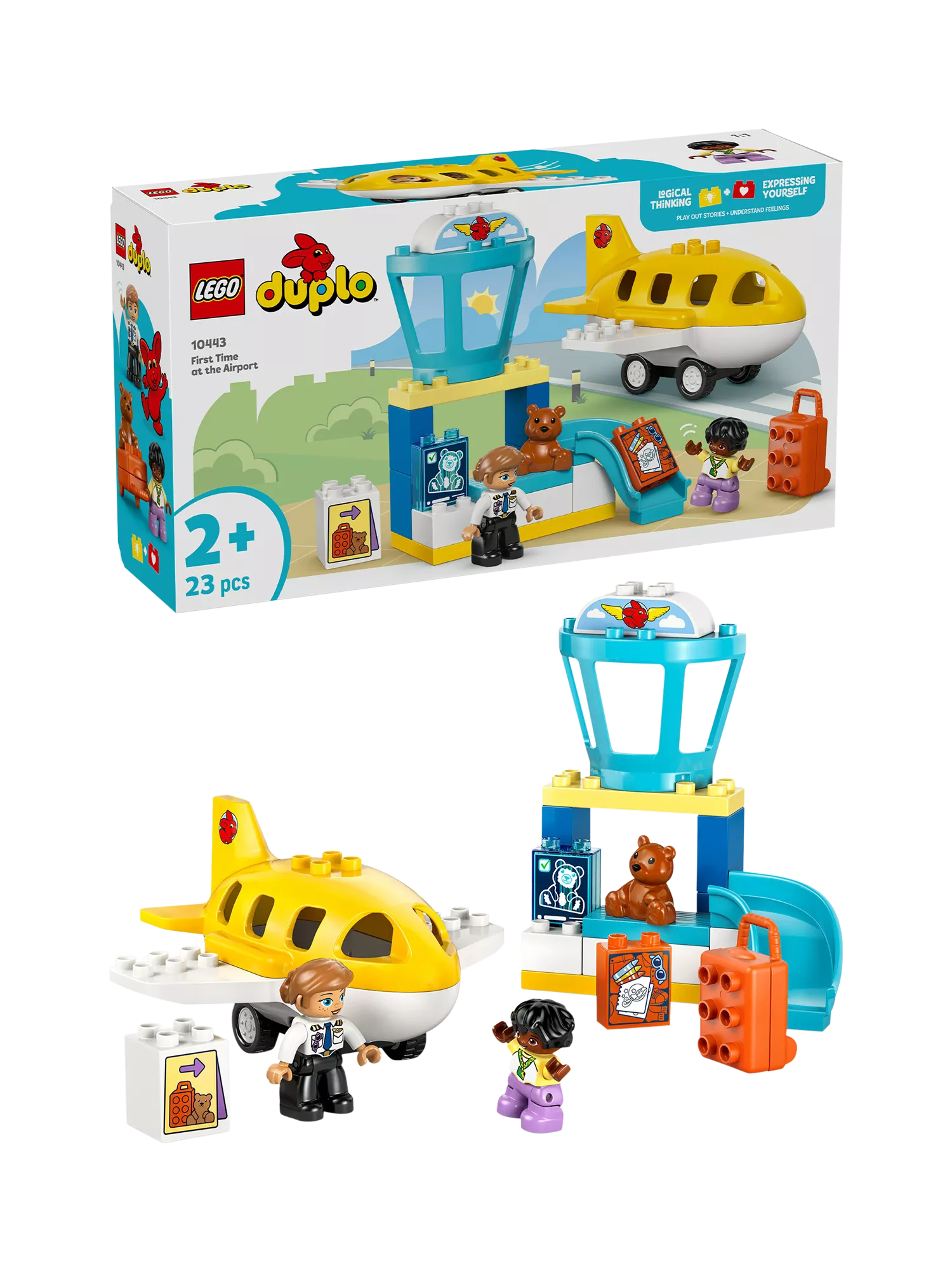Help little ones build confidence navigating new experiences with the LEGO DUPLO First Time at the Airport (10443) learning toy for 2+ year olds. This fun toddler learning toy lets preschoolers enjoy hours of imaginary play as they act out packing for a trip and checking in for an exciting journey.