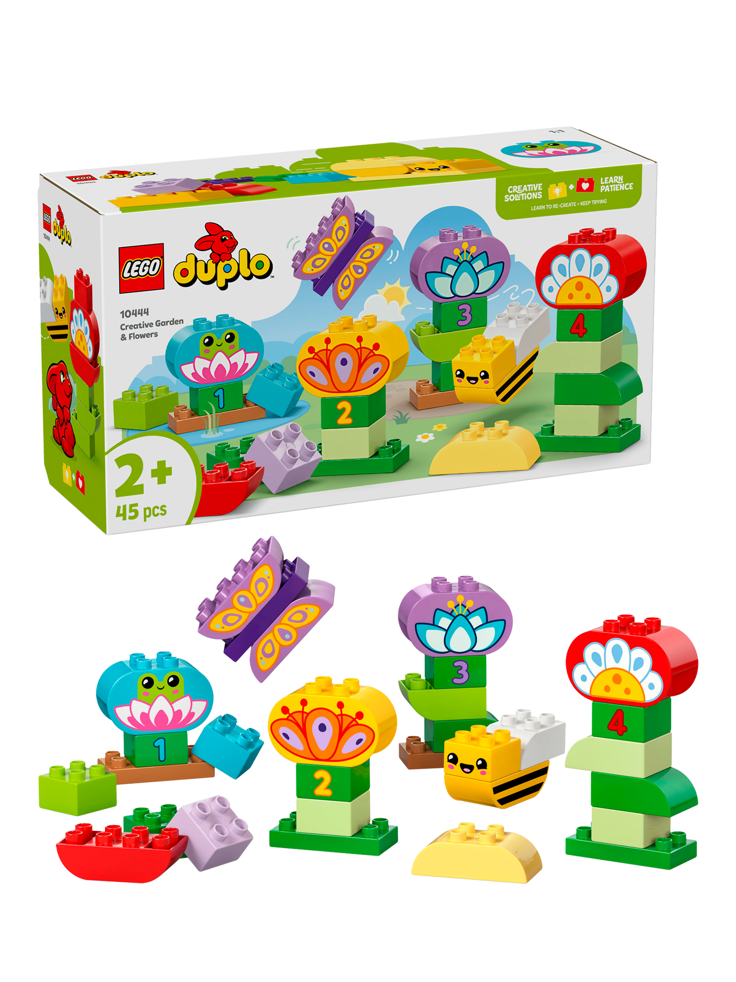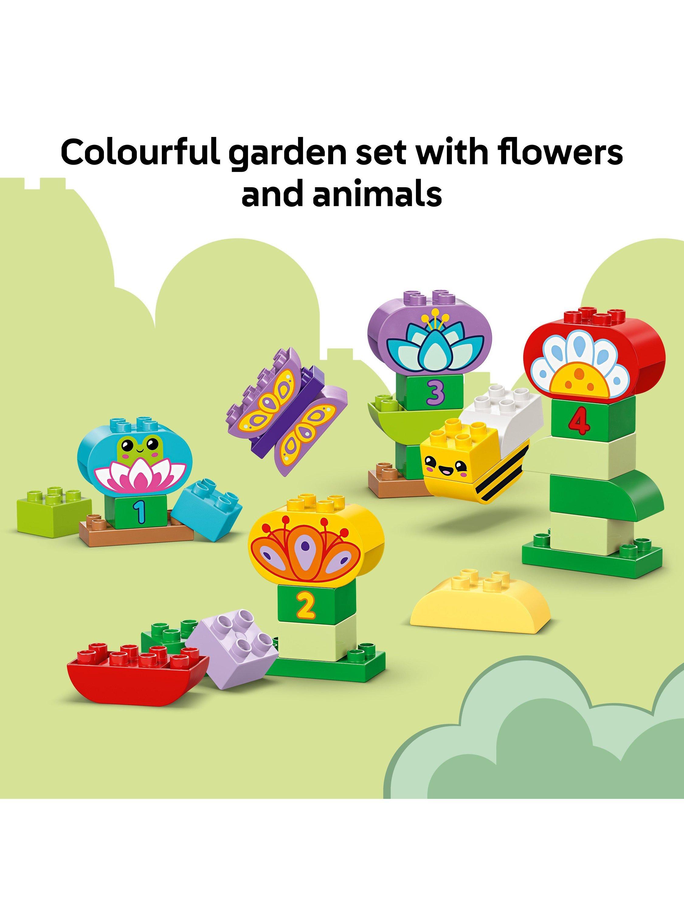 Help your child's creative and fine motor skills blossom with the LEGO DUPLO Town Creative Garden & Flowers (10444) stacking toy for 2-year-olds and over. With 45 LEGO DUPLO bricks to build colourful flowers and cute LEGO DUPLO animal and insect toys, this building set makes a great Montessori toy, as it inspires creative kids to construct a brick-built scene of ever-changing beauty.