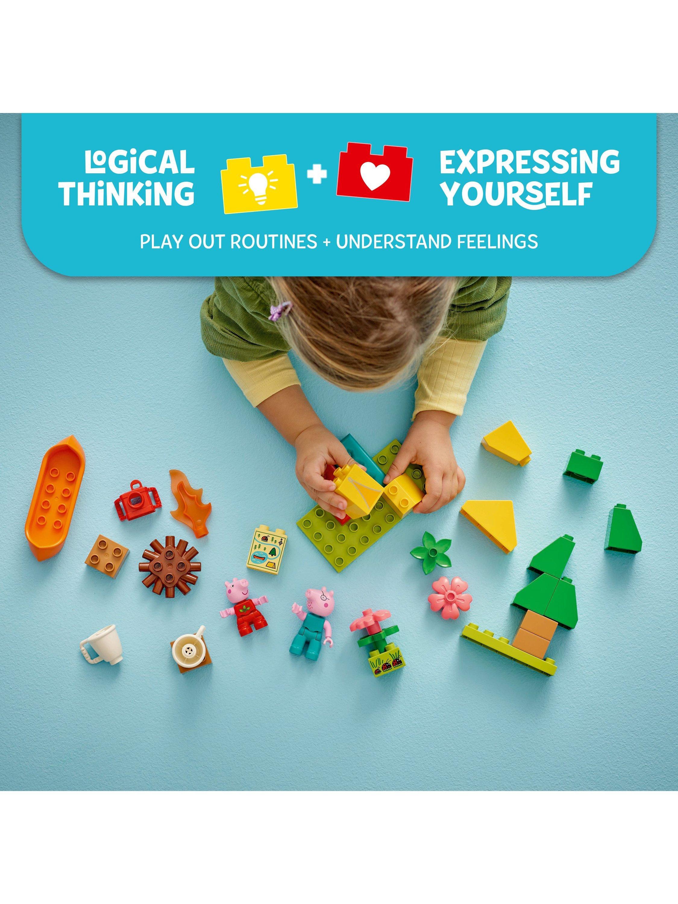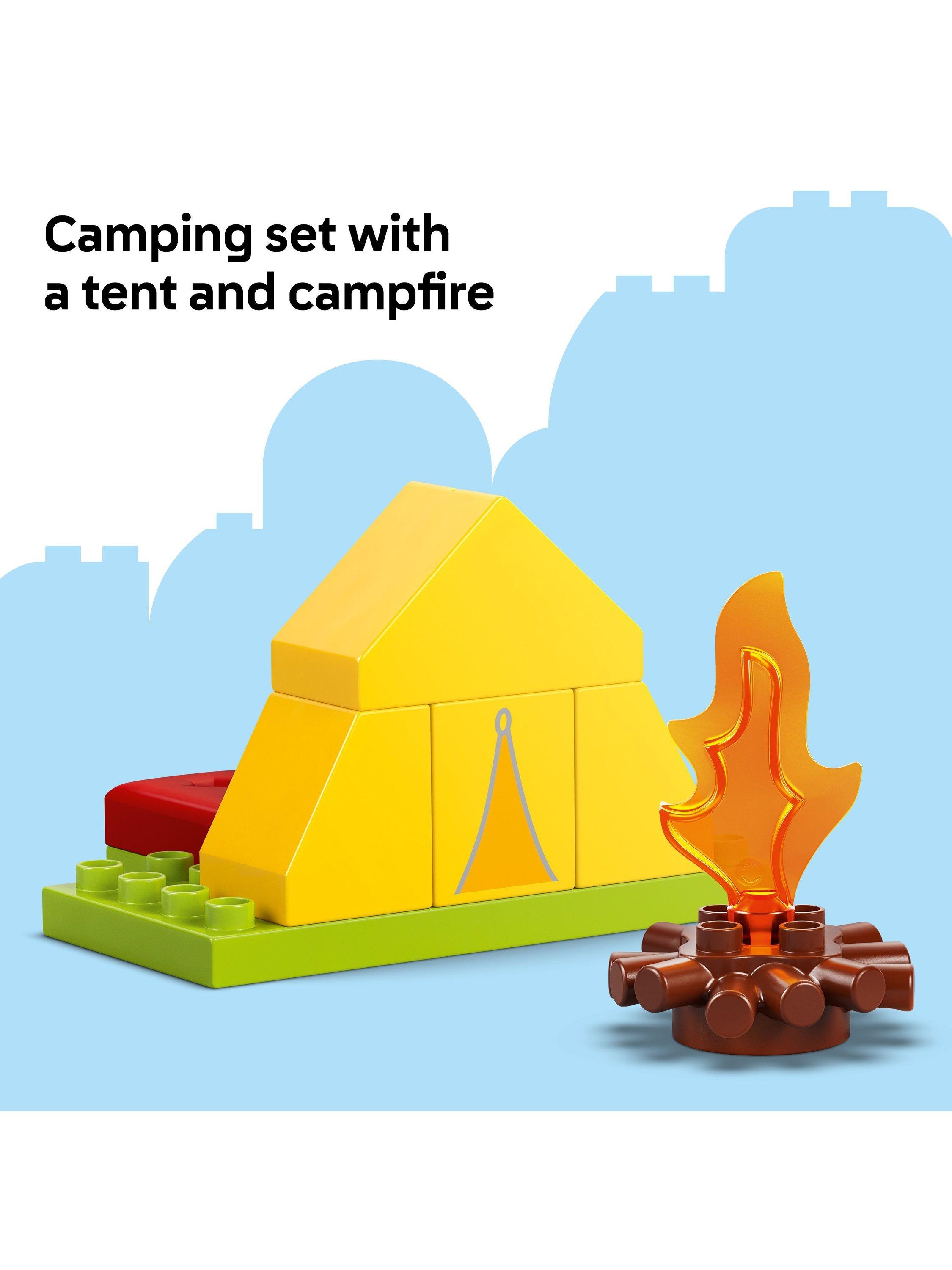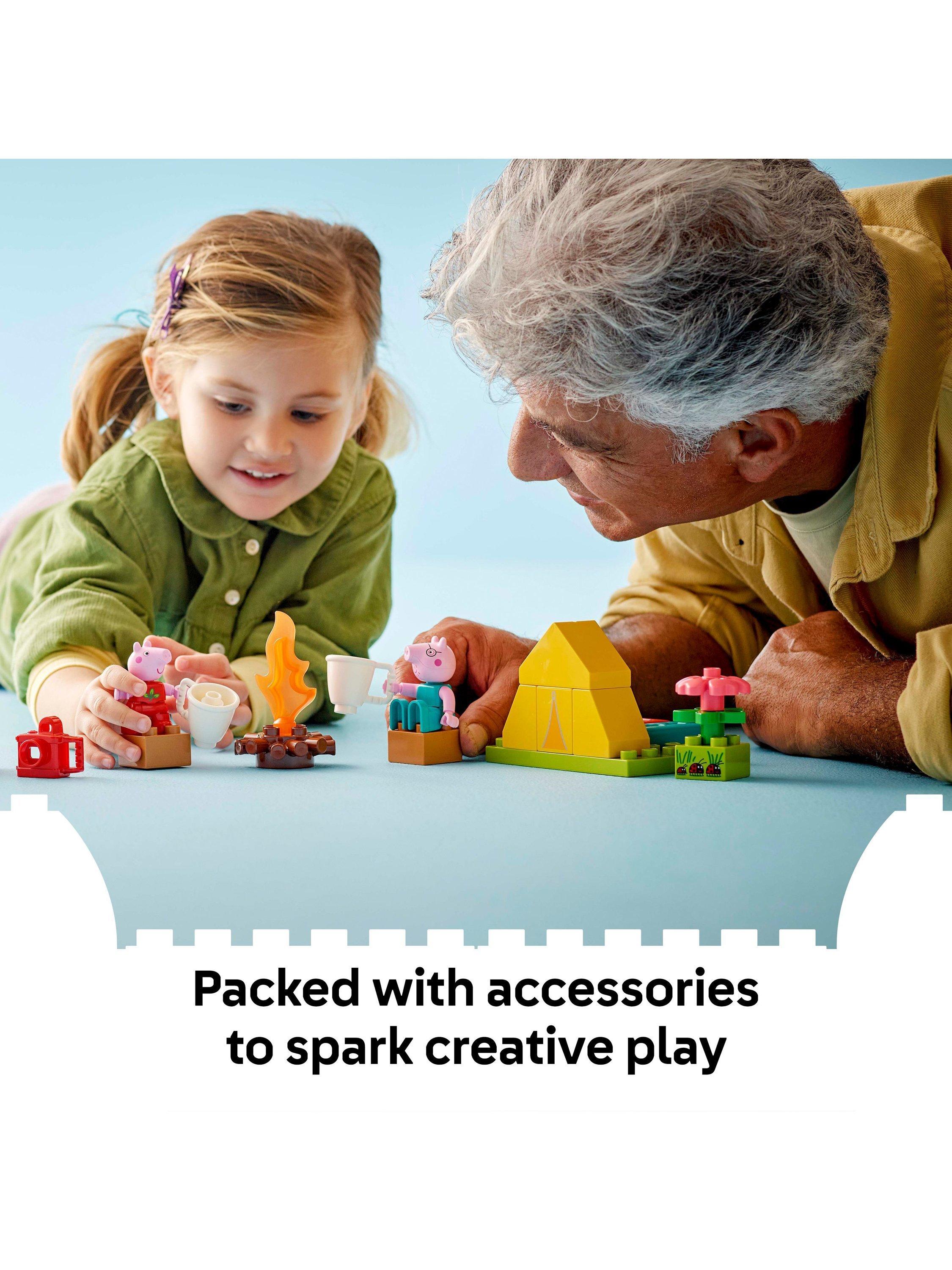 Toddlers embark on a LEGO® DUPLO® Peppa Pig adventure with the Camping Trip (10452) building playset. Through creative play, preschoolers explore how they feel about first-time experiences as they make-believe camping with Peppa Pig and Daddy Pig, then explore a river in the toy canoe.