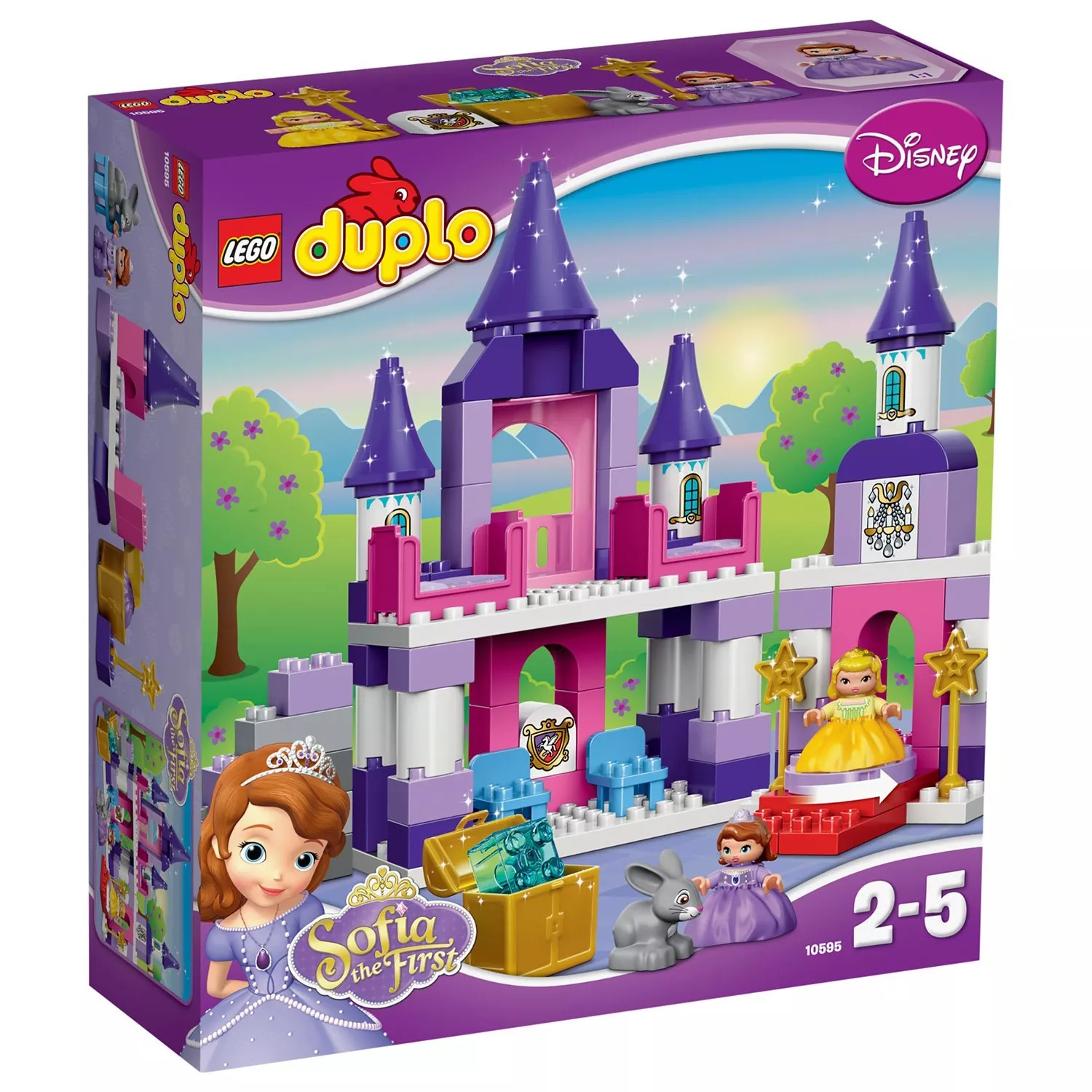 Includes Sofia the First, Princess Amber and Clover the rabbit LEGO DUPLO figures. Castle measures H32 x W28 x D12cm; annex measures H27 x W12 x D12cm.