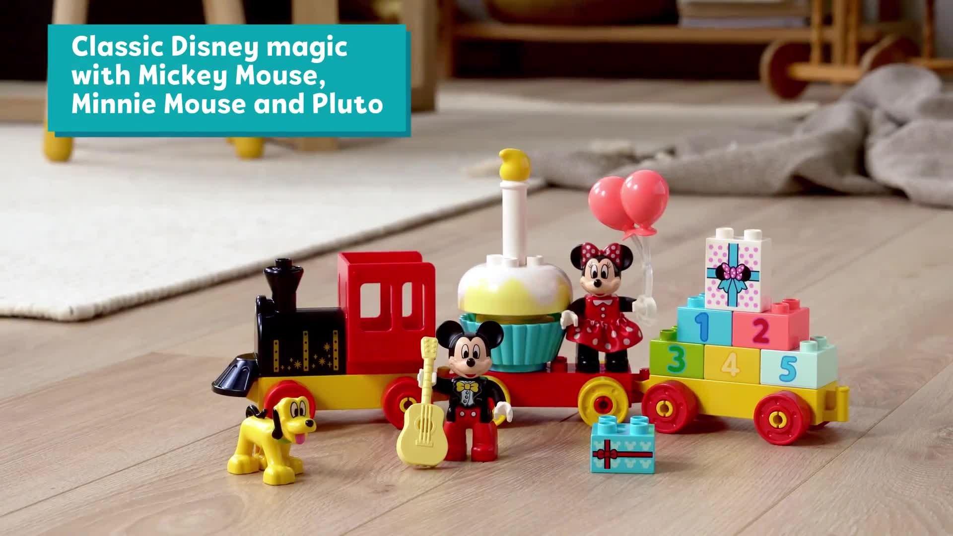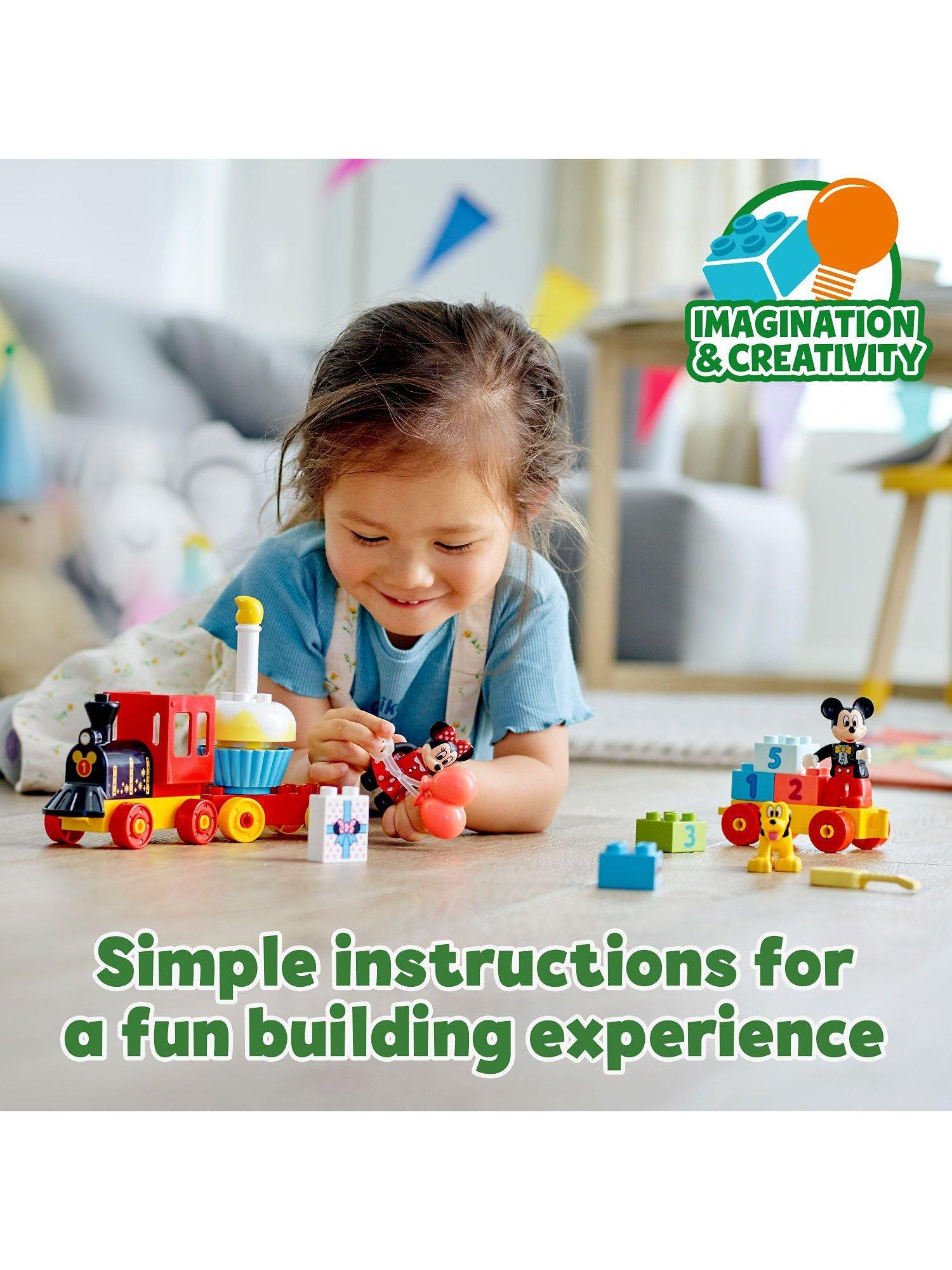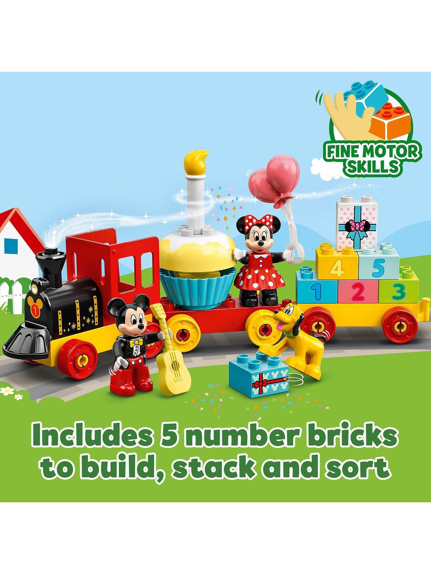 Toddlers join Disney's Mickey Mouse, Minnie Mouse and Pluto as they drive the birthday train, stopping off to play and learn with the onboard activities! This colourful LEGO set improves fine motor skills as kids assemble the train and stack the number bricks; inspires creativity as they decorate the wagons, and develops social skills as they role-play with the lovable Disney characters.