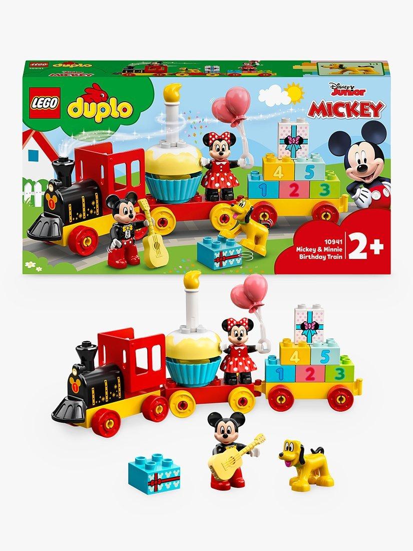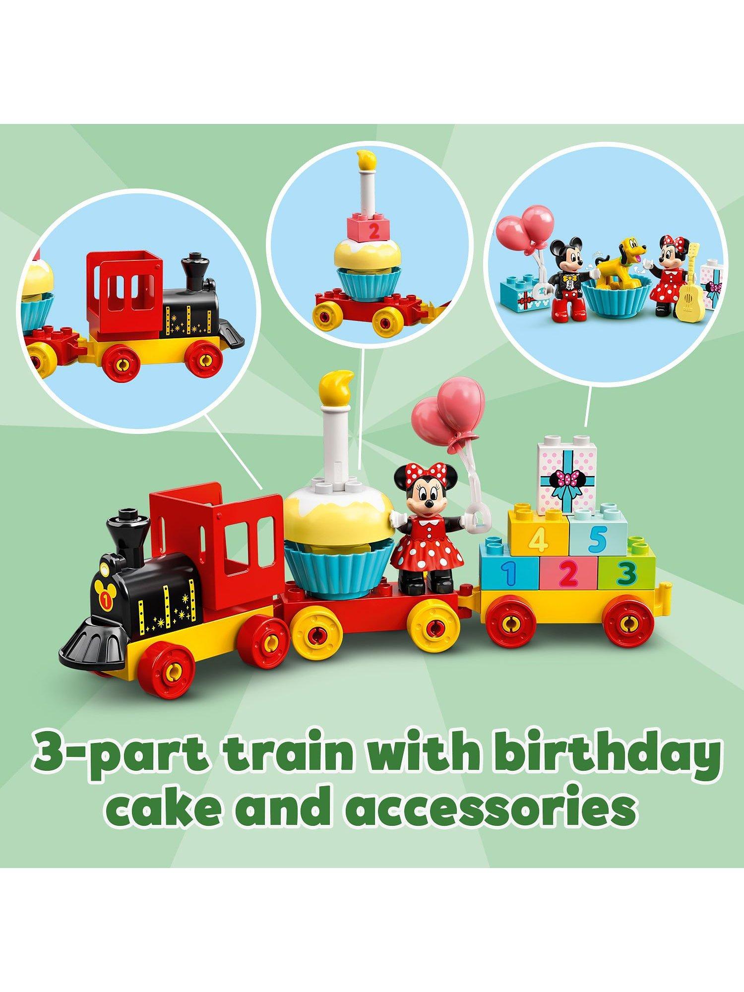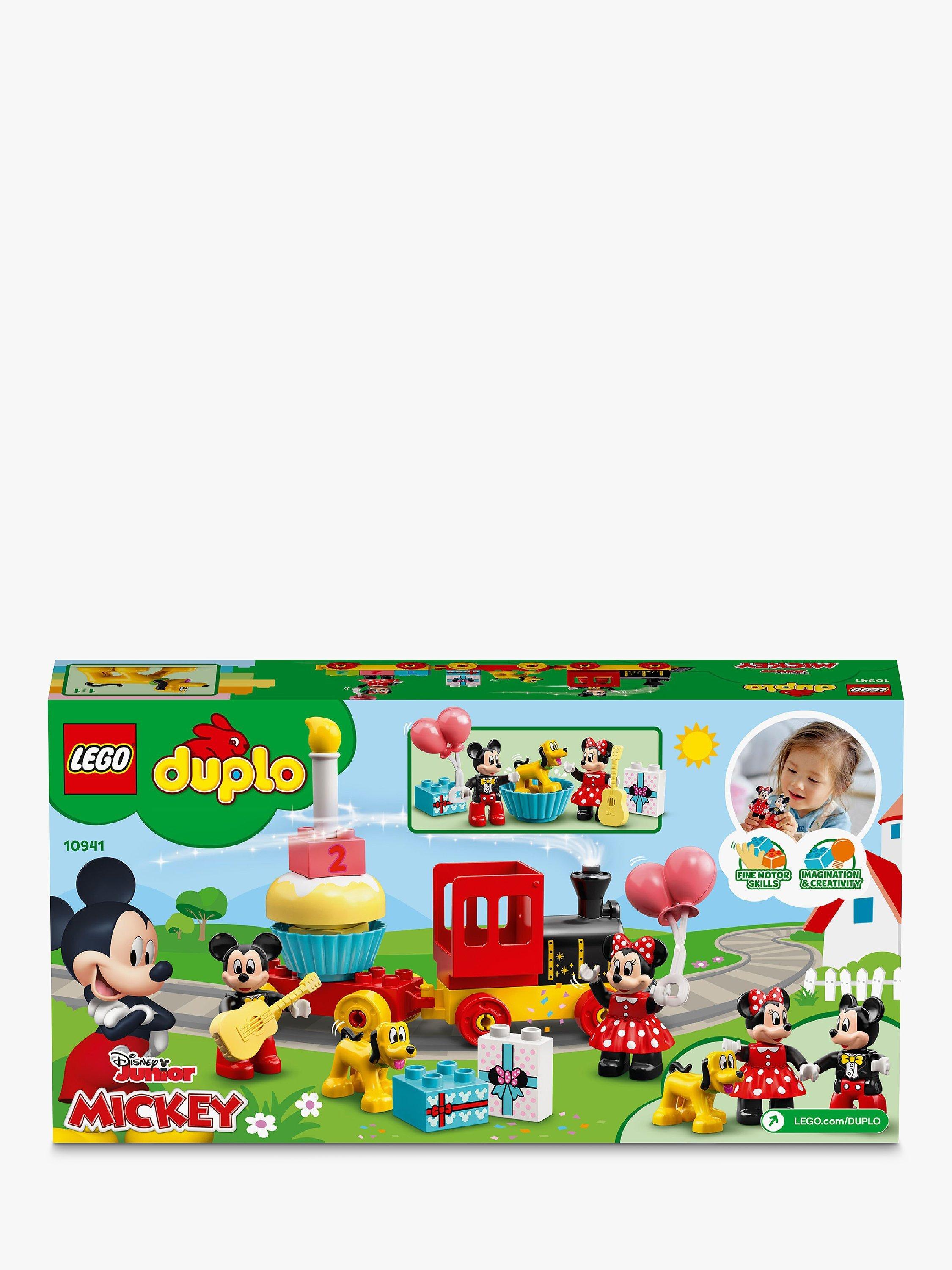 Toddlers join Disney's Mickey Mouse, Minnie Mouse and Pluto as they drive the birthday train, stopping off to play and learn with the onboard activities! This colourful LEGO set improves fine motor skills as kids assemble the train and stack the number bricks; inspires creativity as they decorate the wagons, and develops social skills as they role-play with the lovable Disney characters.