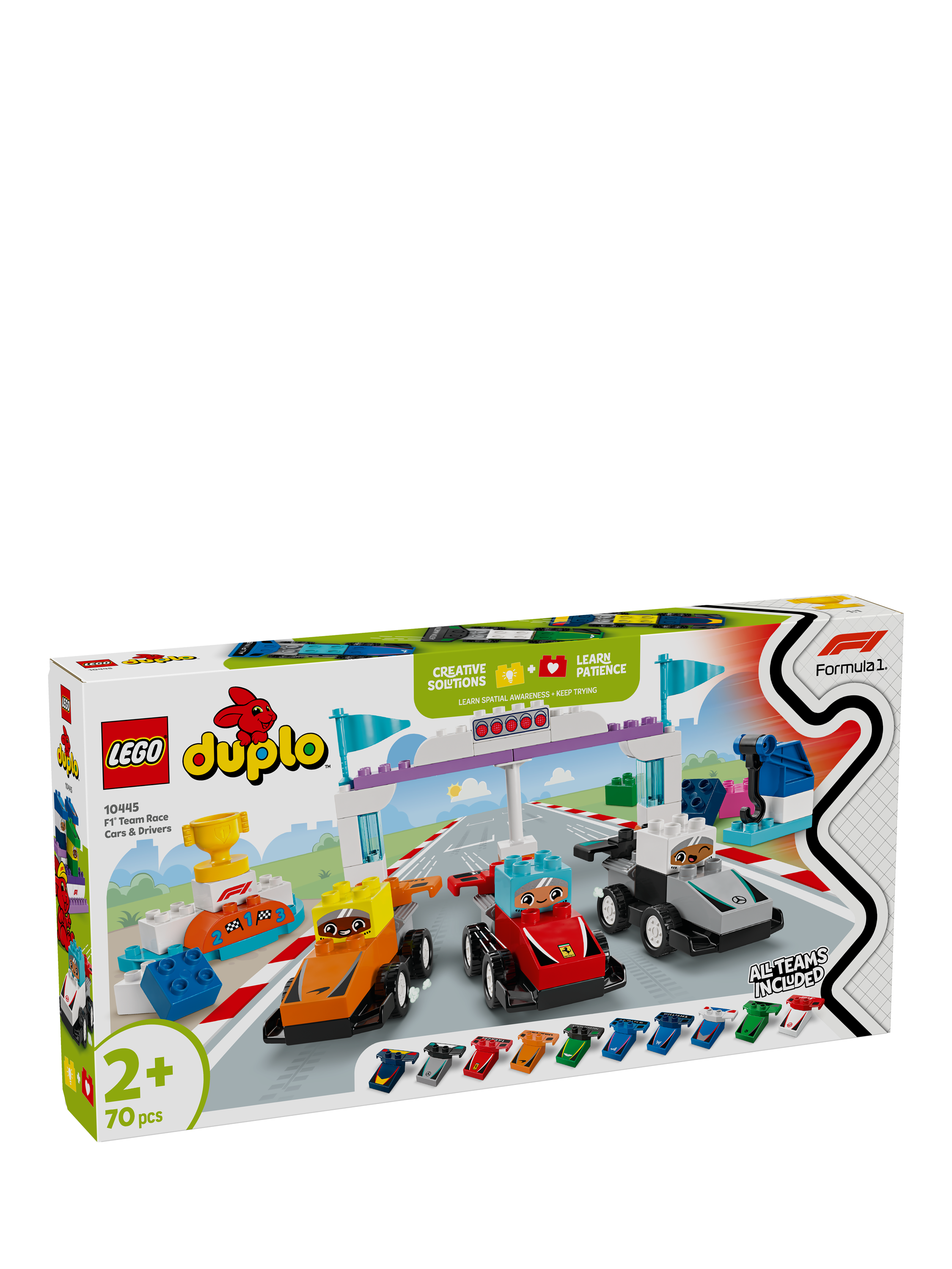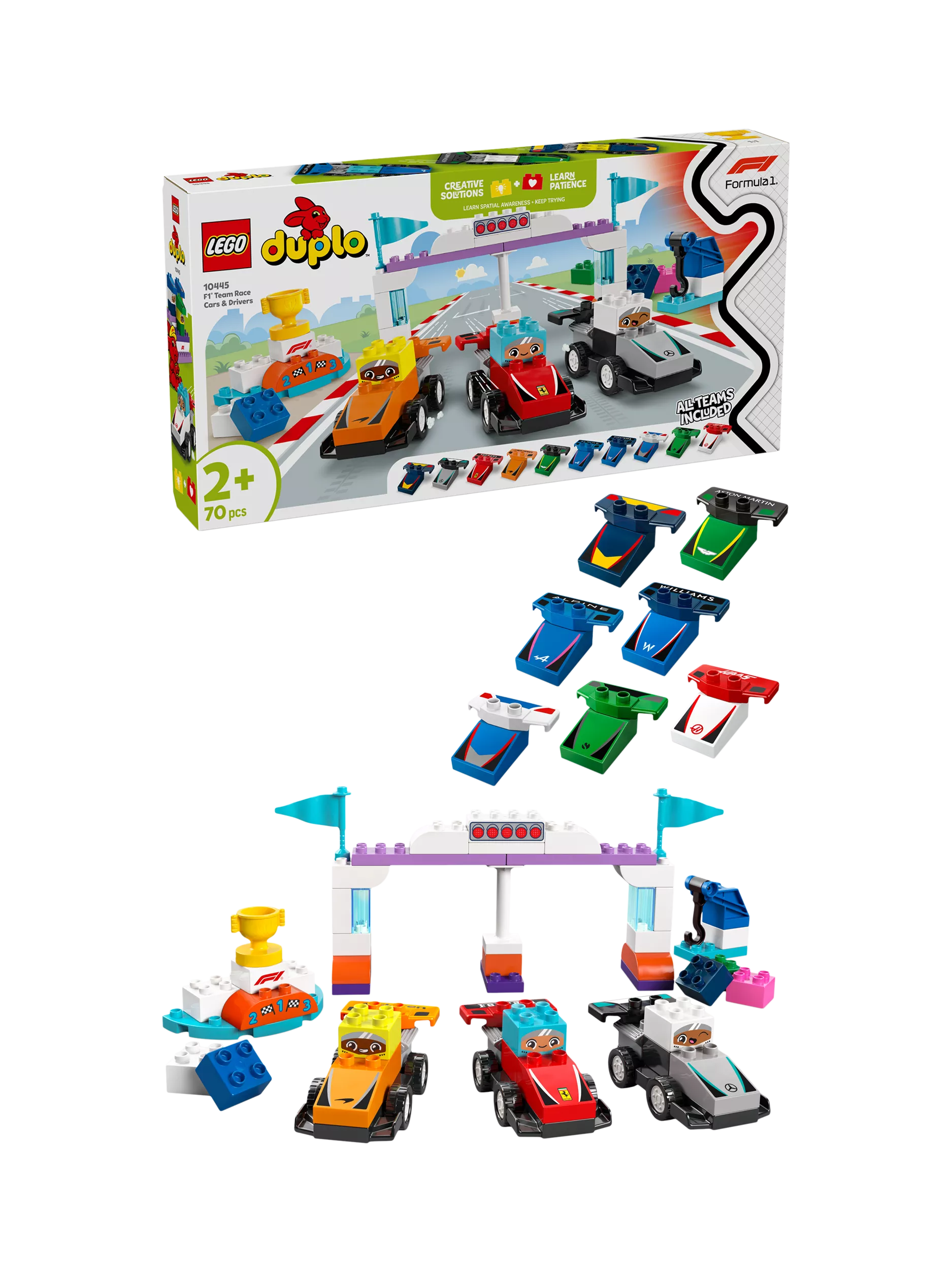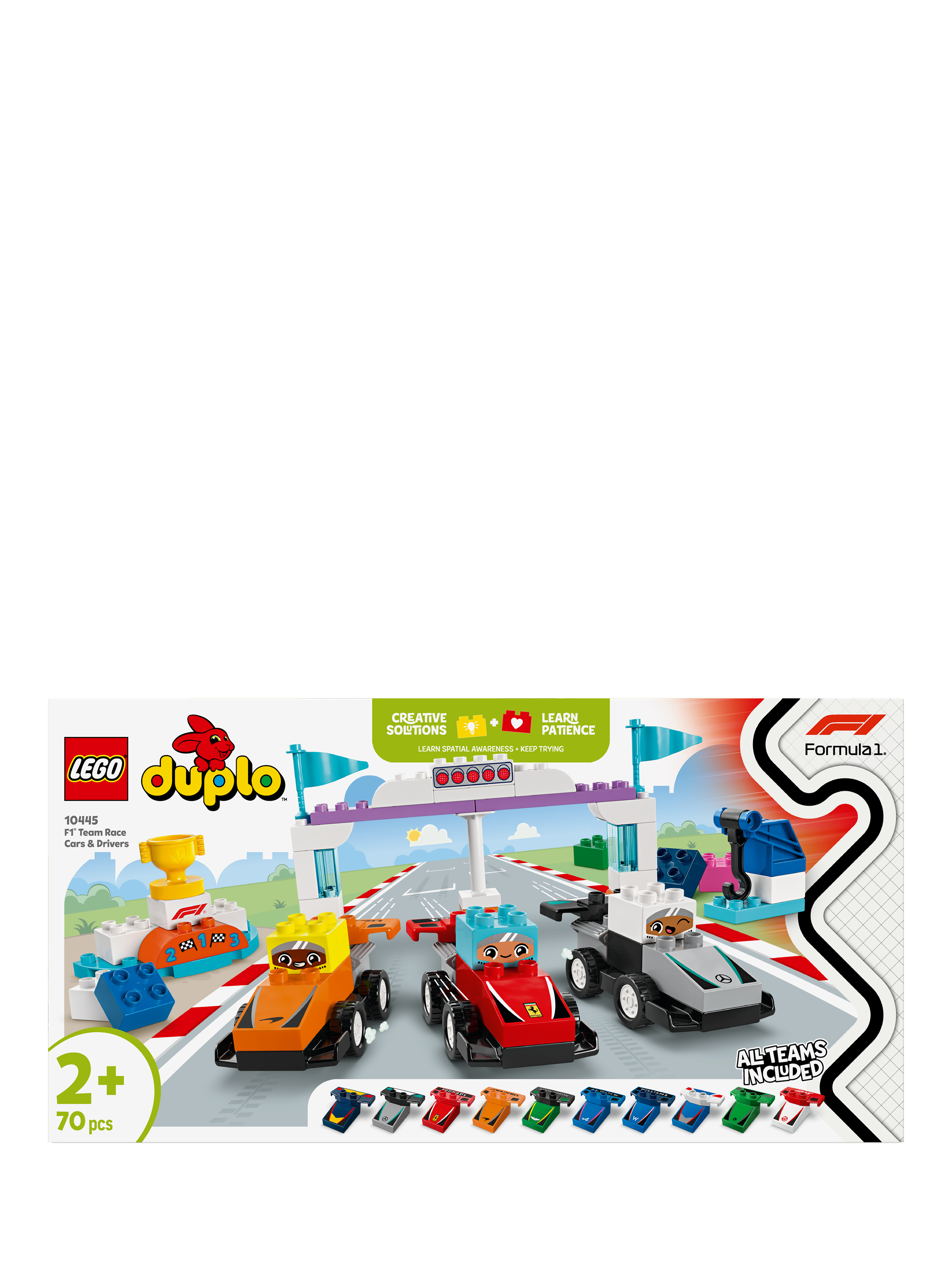 Fire up your engines and get ready to race with the F1® Team Race Cars & Drivers (10445) building toy. This fun family activity lets fans and their junior pit crew recreate the thrill of Formula 1® racing.