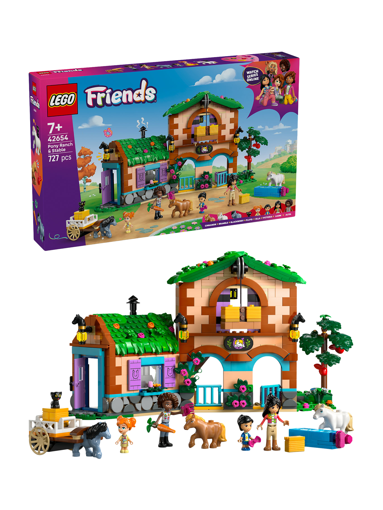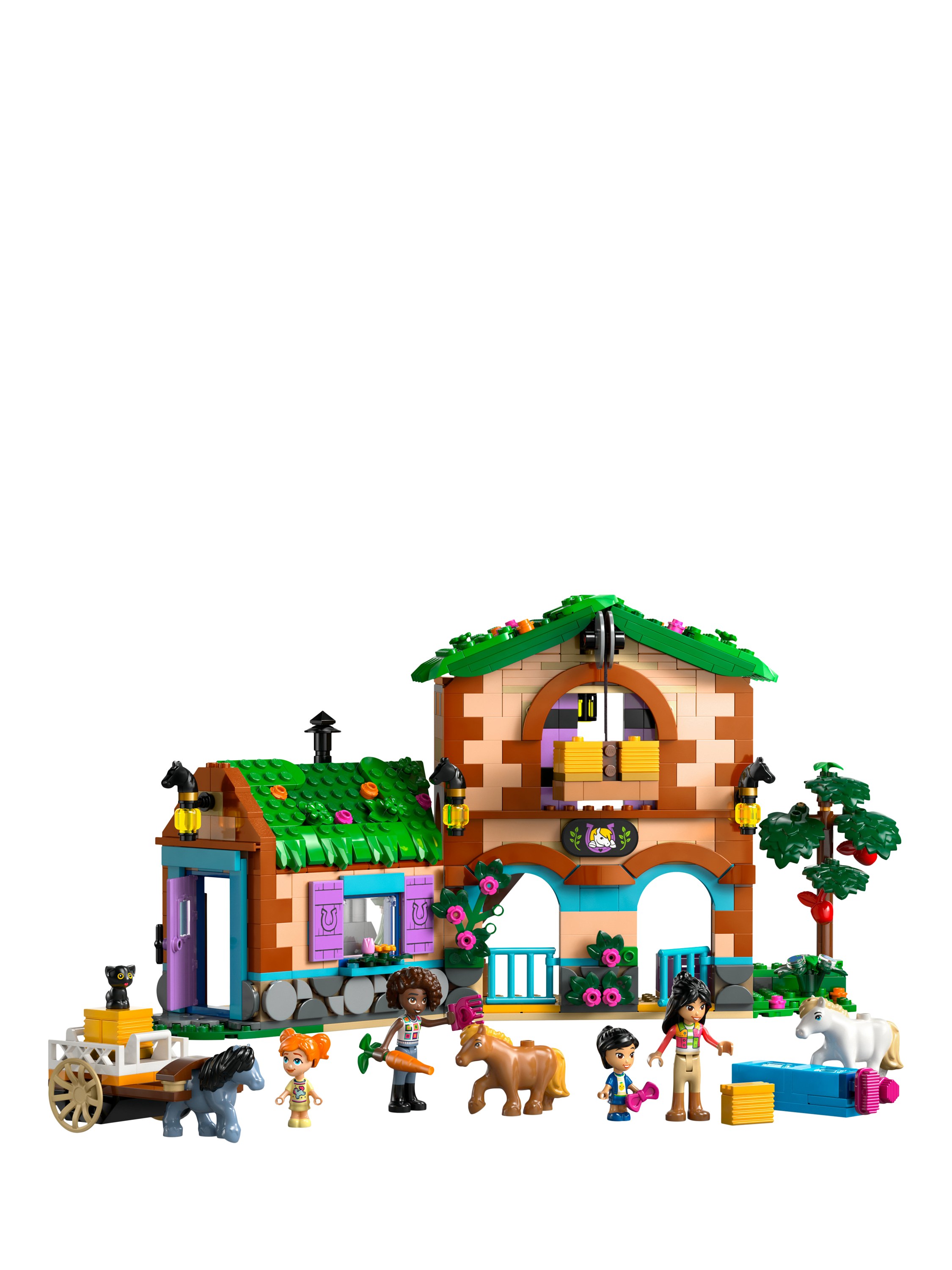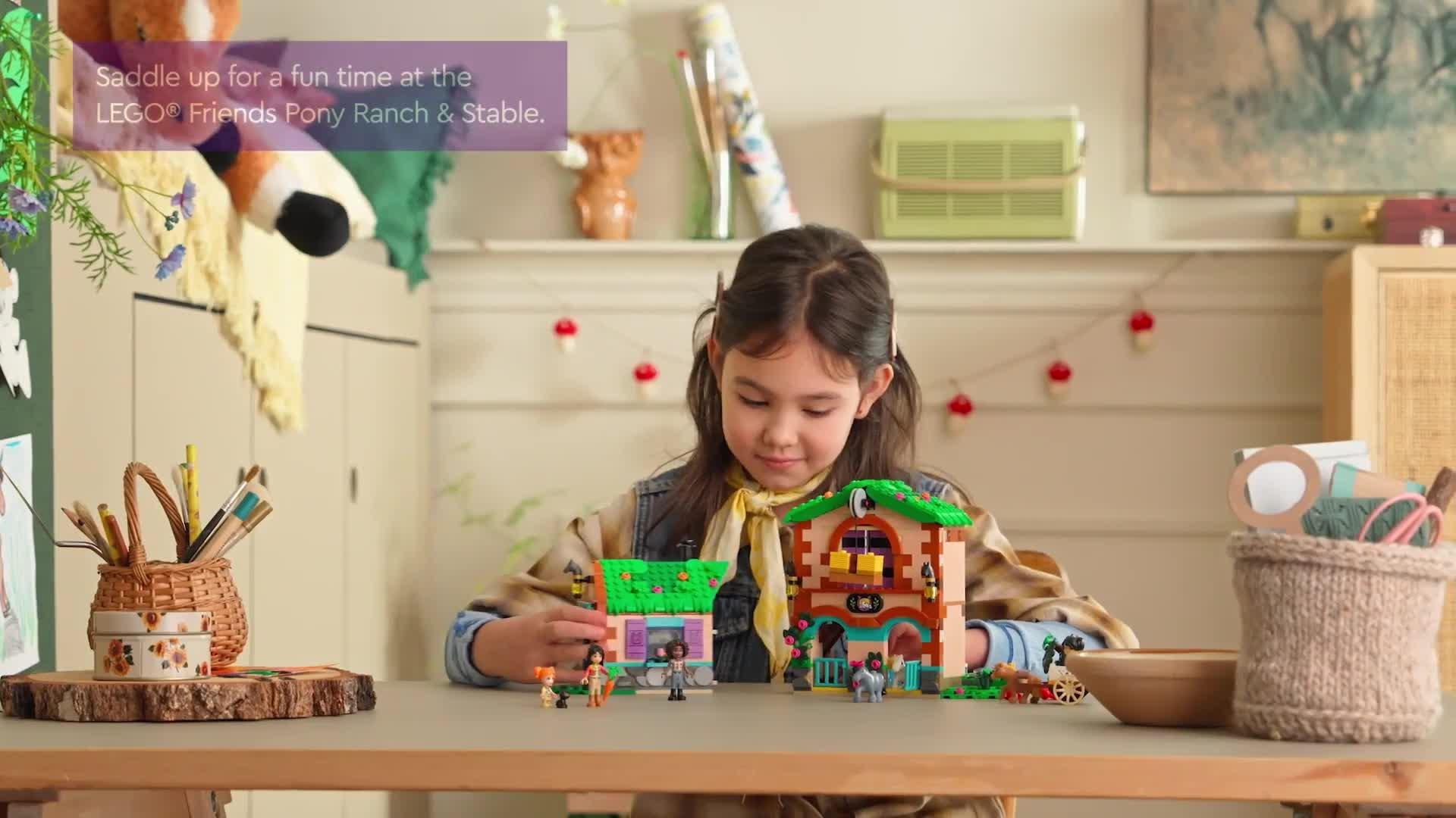 A building set gift to delight young horse-lovers! The LEGO® Friends Pony Ranch & Stable (42654) inspires girls and boys aged 7 and over to create their own friendship stories as they play with the animals. The set includes a buildable pony ranch with stables and living quarters, a cart, 2 minidolls, 2 micro dolls, a cat figure, 3 pony figures and lots of accessories for imaginative play.