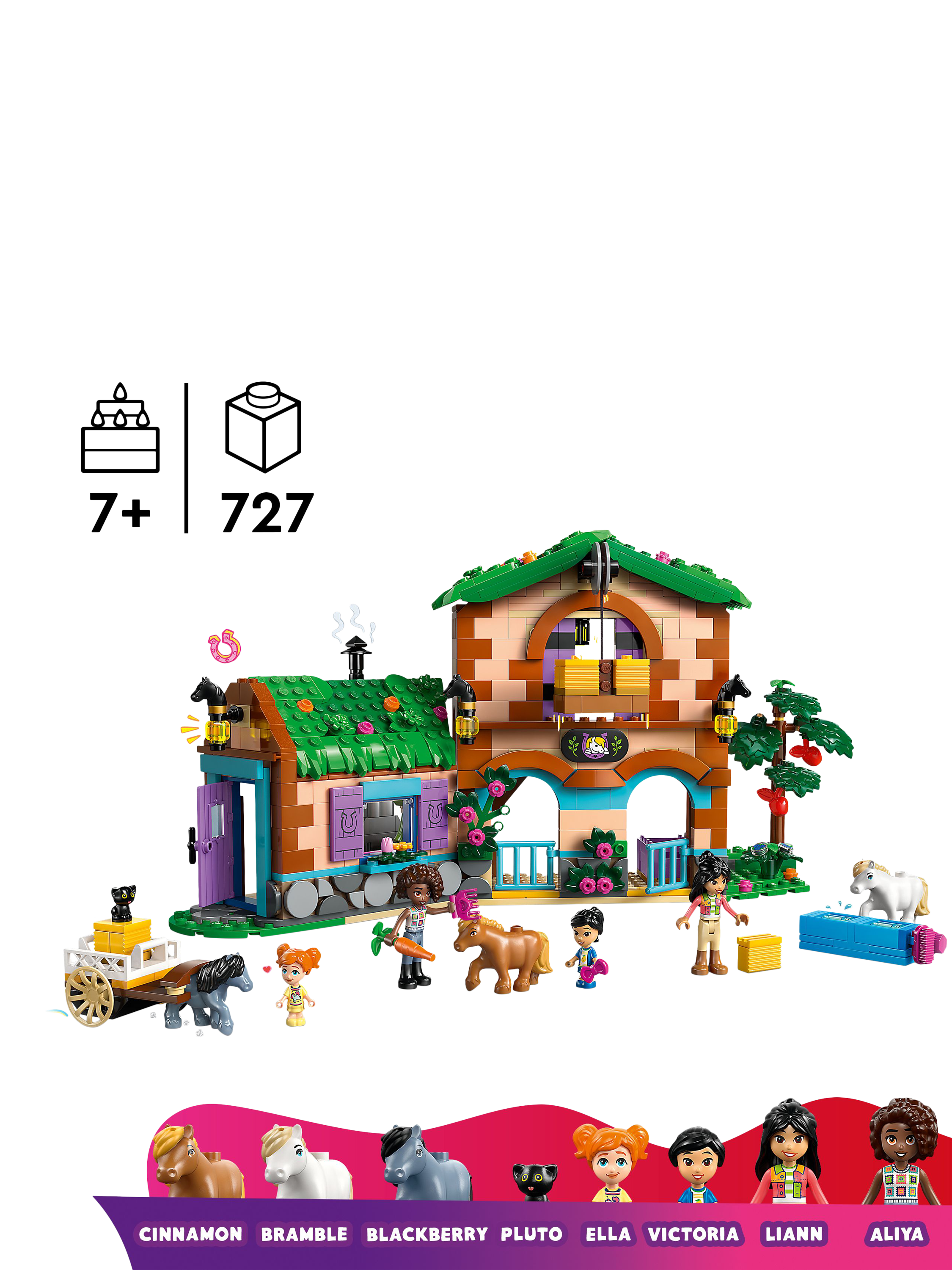 Kids can create endless adventures with characters Aliya, Liann, Victoria and Ella. Grooming and feeding the 3 ponies is lots of fun and there’s a working hay elevator to move hay bales into the hayloft or onto the cart. Inside the ranch, there’s a cosy living area, plus the hayloft where the friends love to sleep above the stable – it’s a horse-lover’s dream come true!