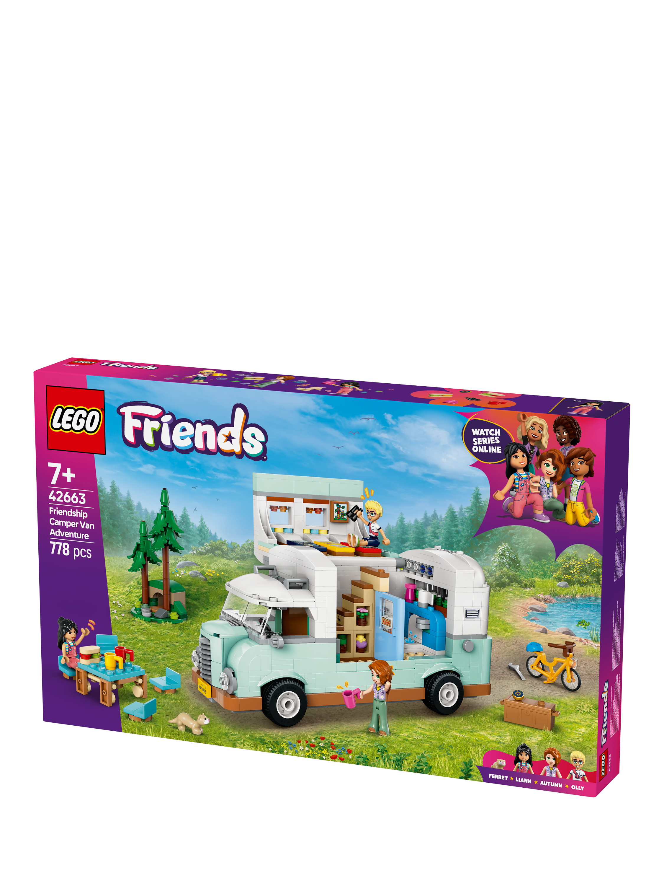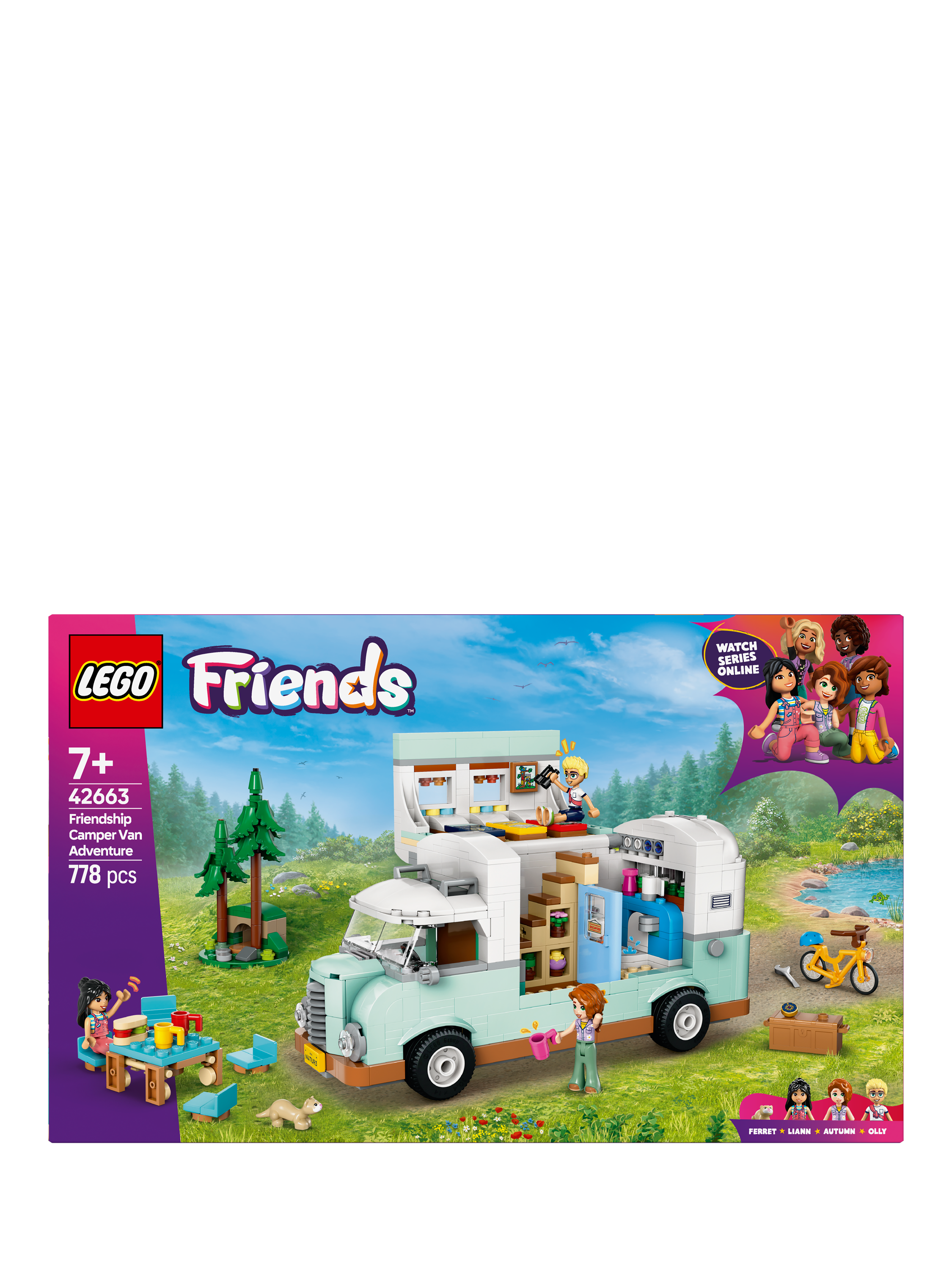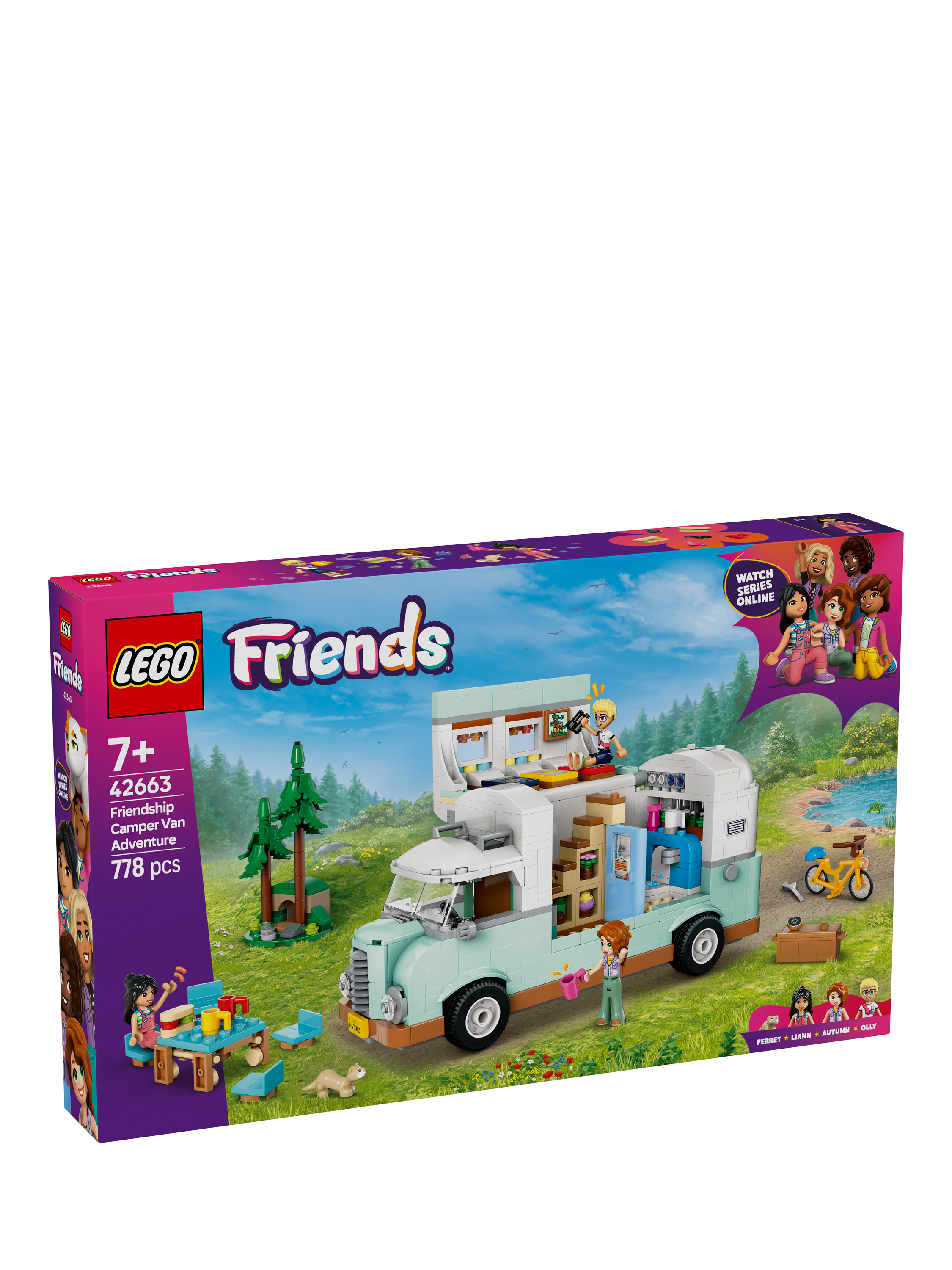 Young imaginations go wild with this kids' role-play building set for girls and boys aged 7 and over. The LEGO® Friends Friendship Camper Van Adventure (42663) features a buildable LEGO vehicle toy, three minidolls and a ferret figure.