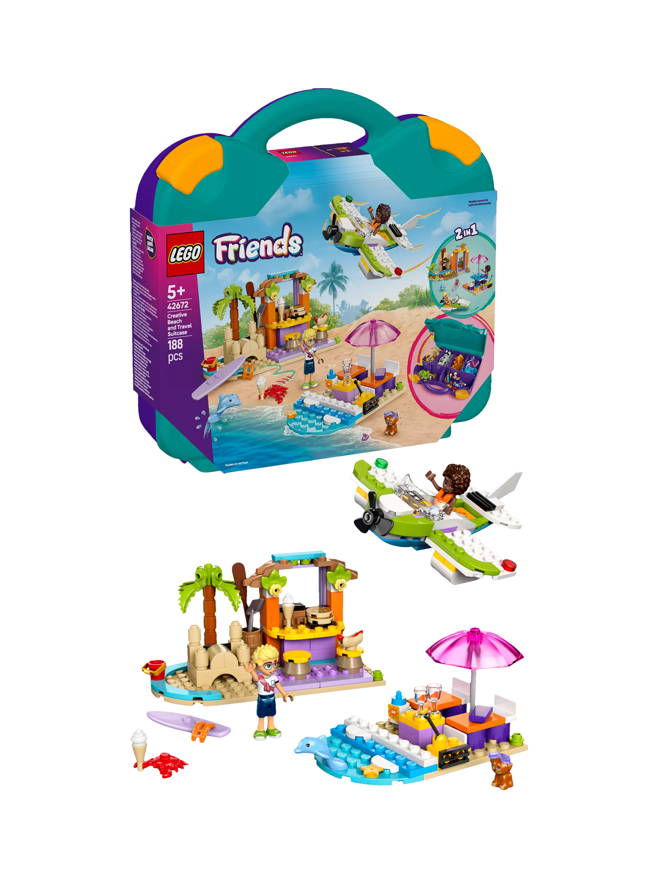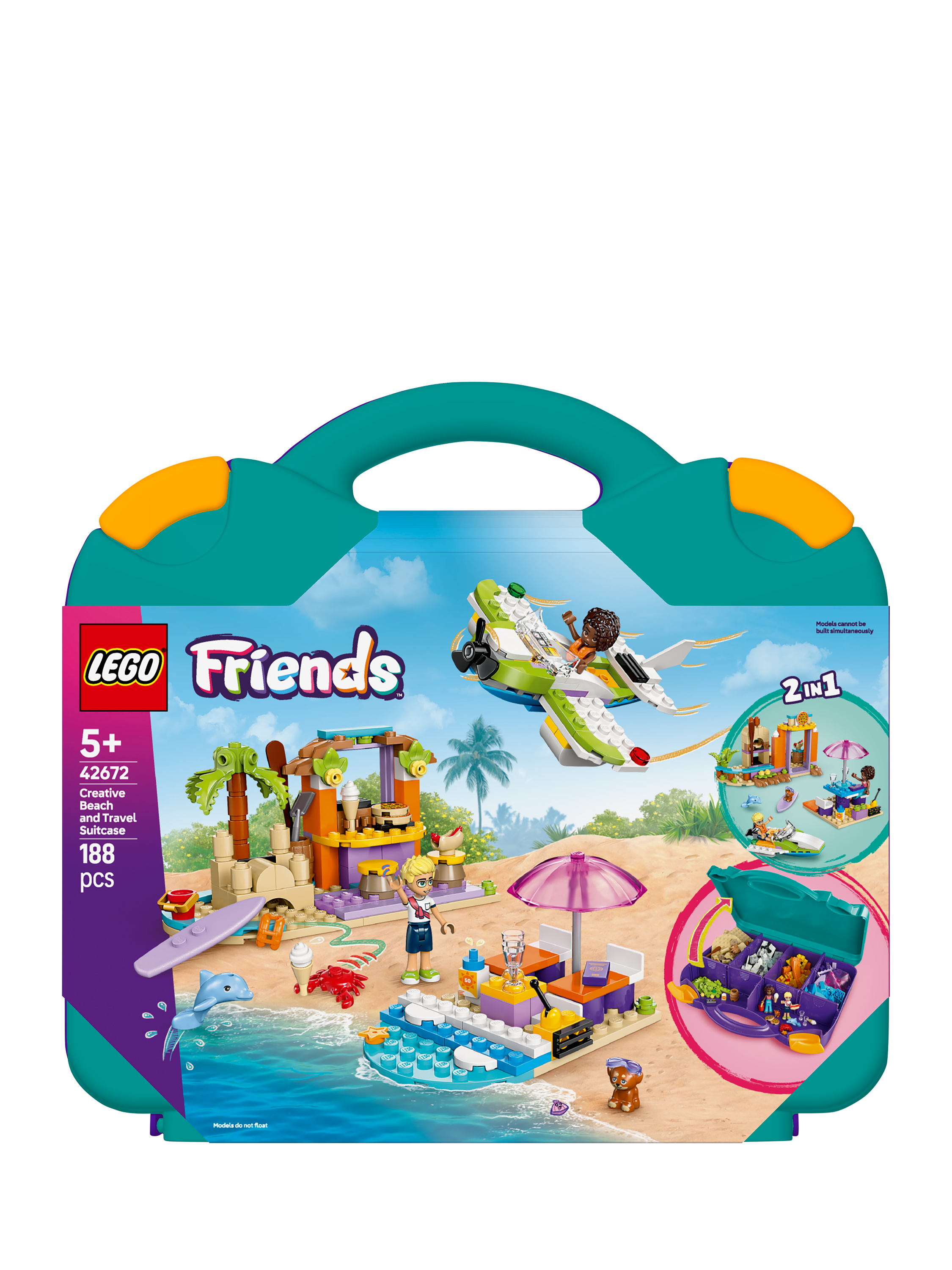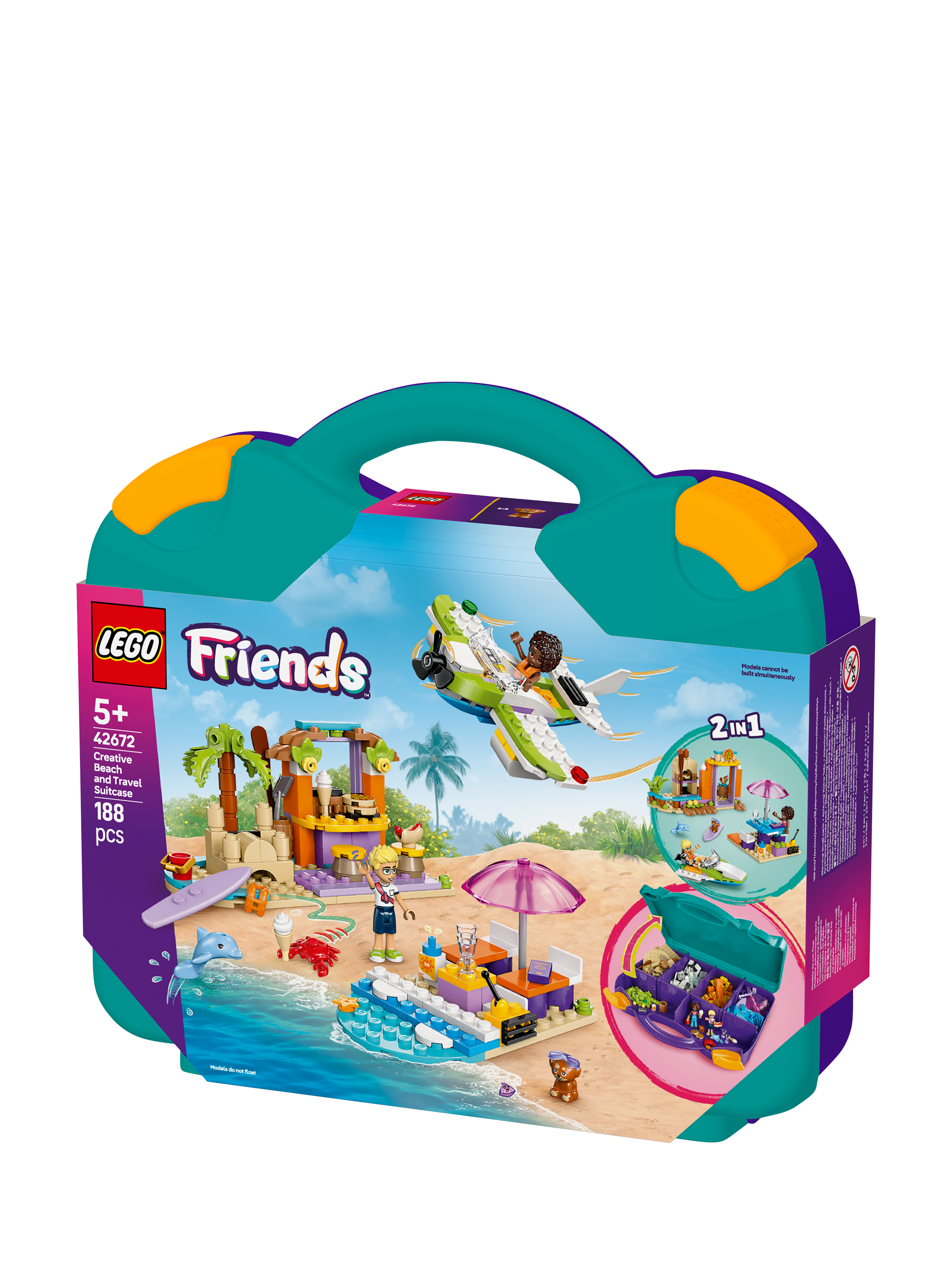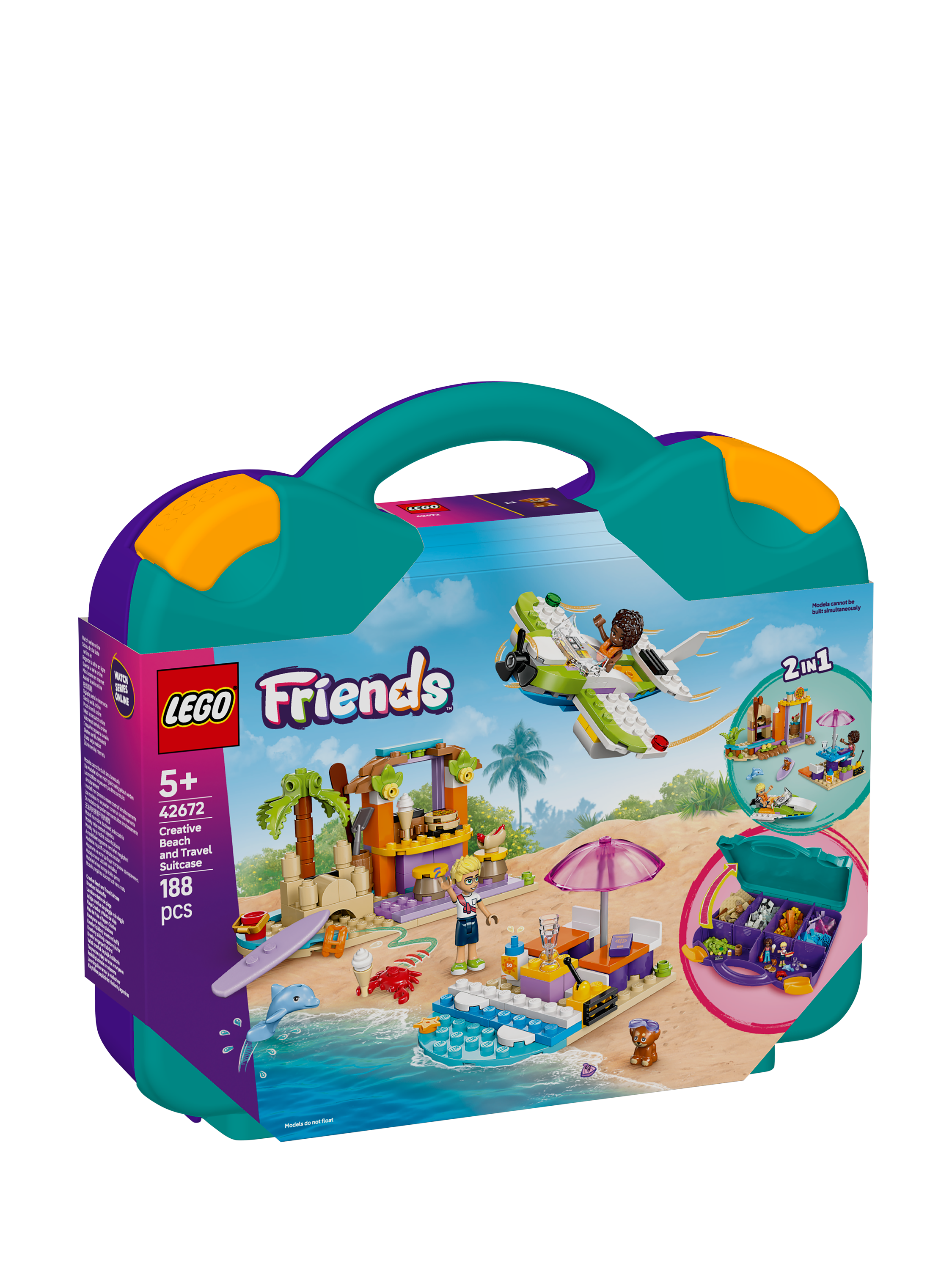 This 2-in-1 buildable toy takes kids on a journey of creativity as they build and rebuild different beach scenes. The LEGO® Friends Creative Beach and Travel Suitcase toy set (42672) for kids makes a great gift for girls and boys aged 5 years old and over. Kids build the 3 models, then rebuild them to create an alternative scene, or use the pieces to create their own imaginative creations.