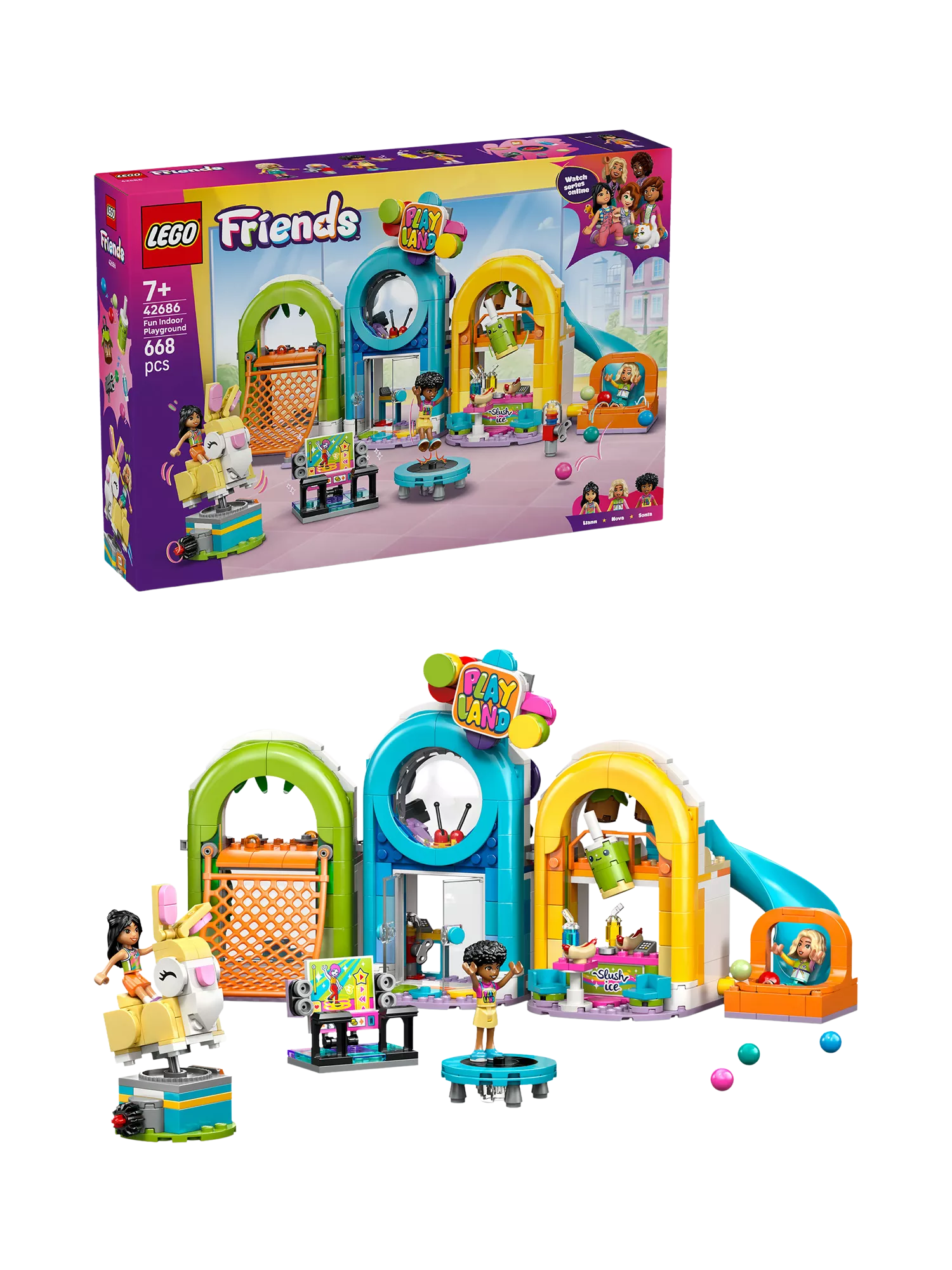 Let kids’ imaginations roam wild as they explore this LEGO Friends Fun Indoor Playground (42686) set for kids aged seven and over including three minidolls.