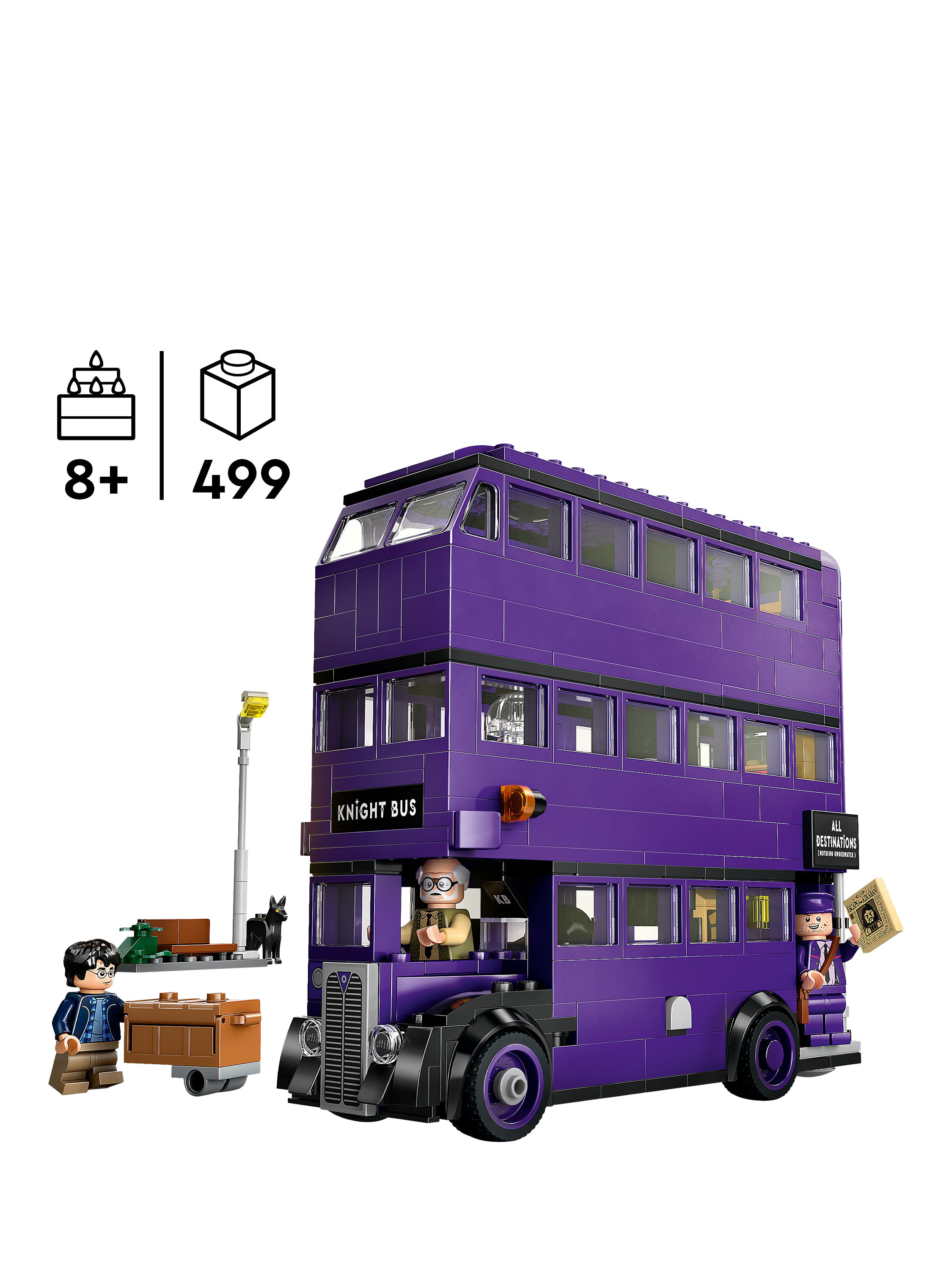 This magical toy building set also features 5 LEGO Harry Potter characters – Harry Potter, Ernie Prang, Stan Shunpike, a sleeping witch and Padfoot™ – to recreate memorable Harry Potter and the Prisoner of Azkaban™ scenes. Other authentic details, including a buildable lamppost where Harry waited (and was scared by Padfoot!) before the Knight Bus arrived, Harry’s trunk and a Daily Prophet newspaper element with the headline ‘Escape from Azkaban’ add to the creative role-play possibilities.