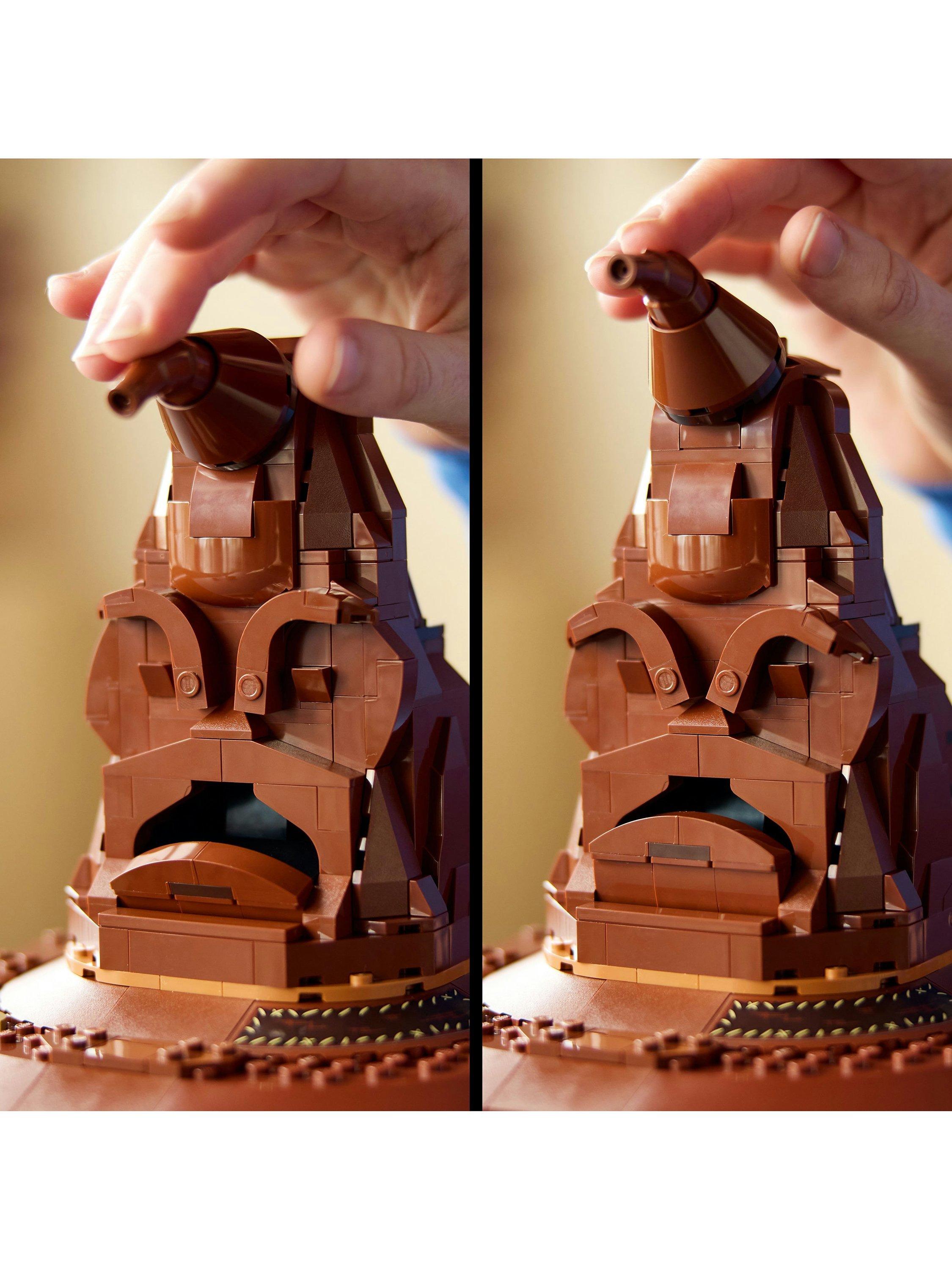 Immerse yourself in a spellbinding build with this Hogwarts™ Talking Sorting Hat™ (76429), the first-ever LEGO® Harry Potter™ set with a sound brick to bring this display model to life. Tip the top of the hat or place it on your head to activate the voice of the Sorting Hat and find out which Hogwarts house it selects for you. Listen out for the Sorting Hat Song every now and then too.
