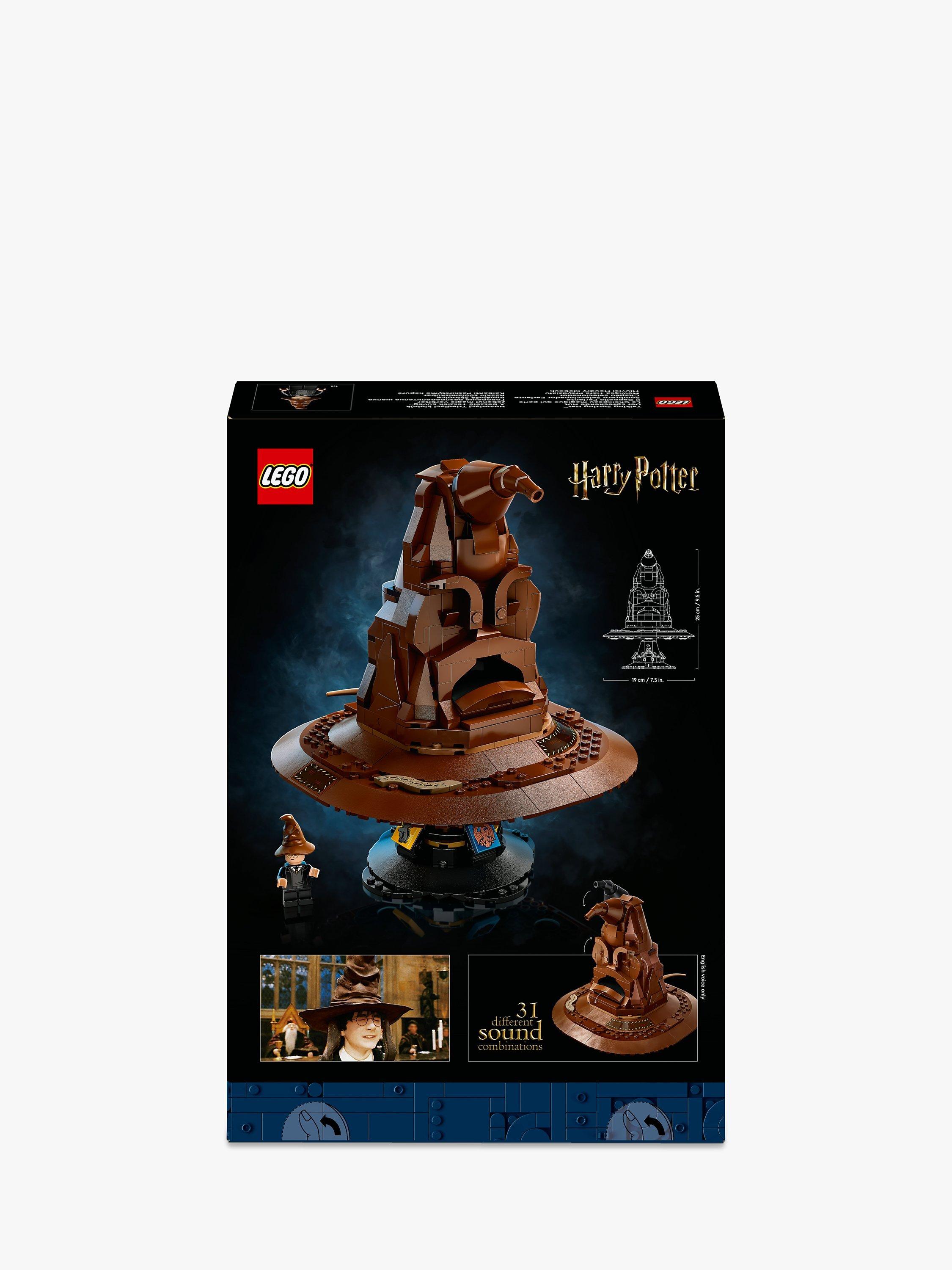 - The sorting hat speaks due to a randomised sound brick and also includes a Harry Potter character minifigure