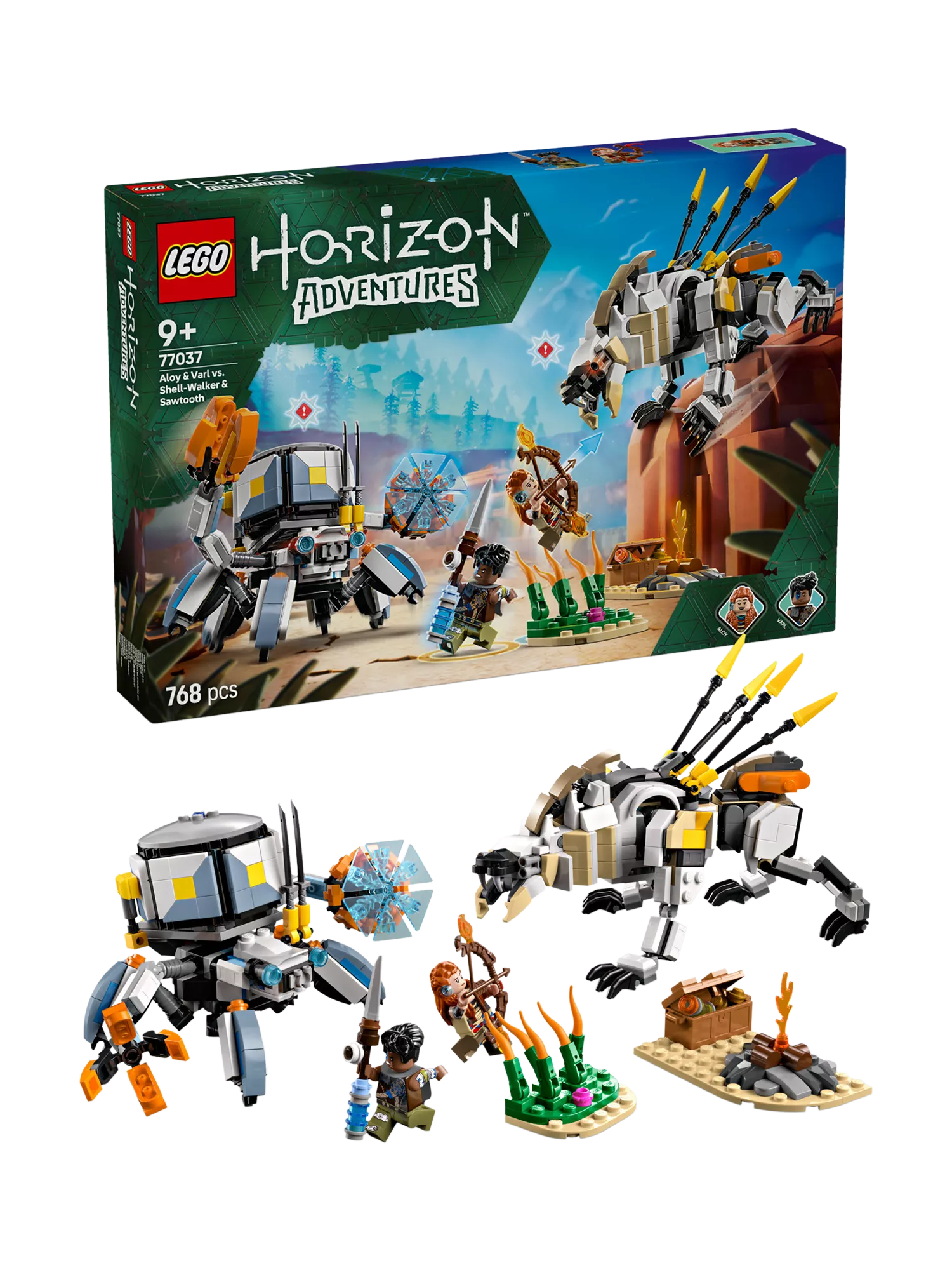 LEGO Horizon Adventures Aloy & Varl vs. Shell-Walker & Sawtooth (77037) is a collectable fantasy gaming toy for 9-plus-year-old boys and girls.