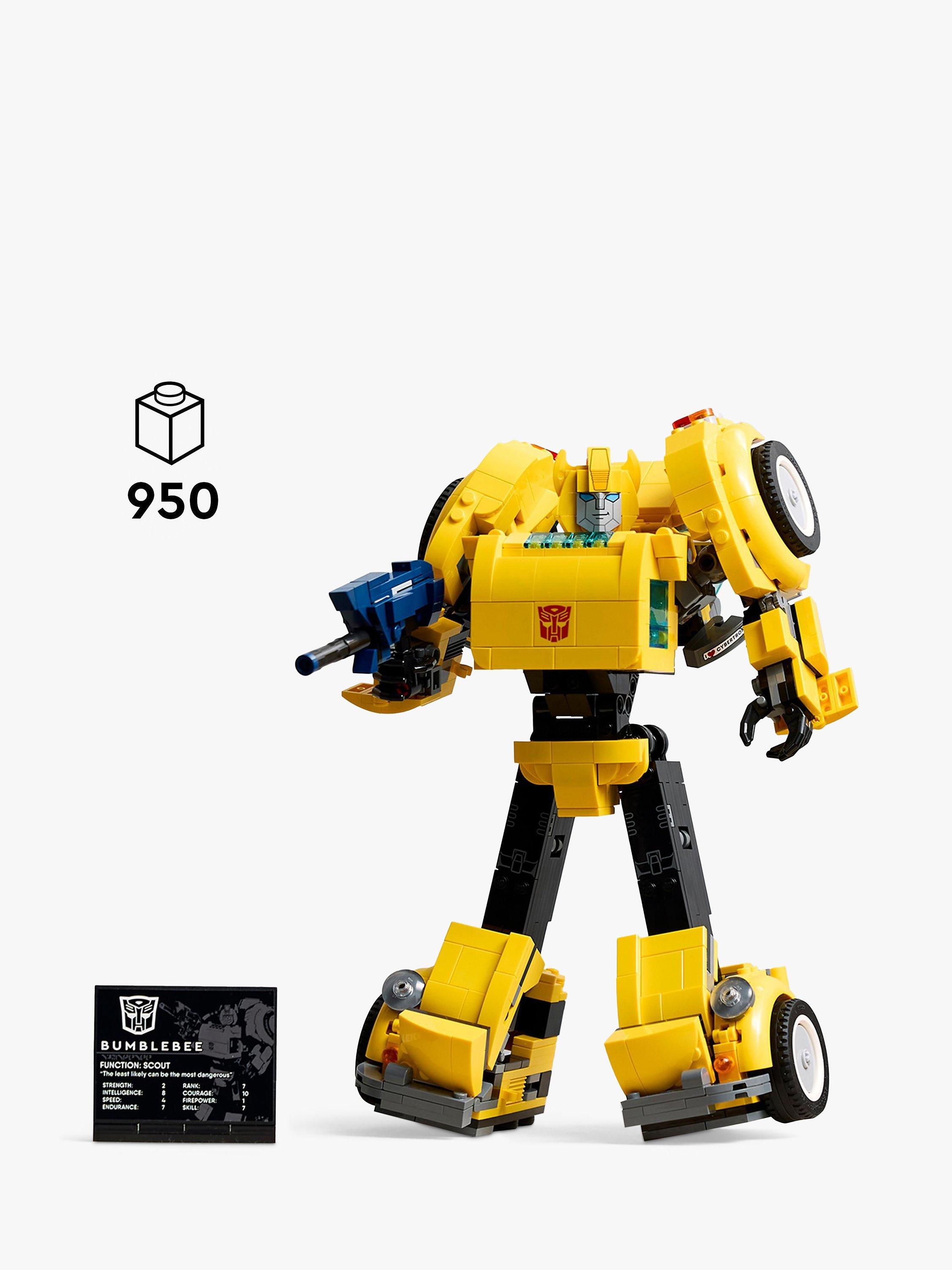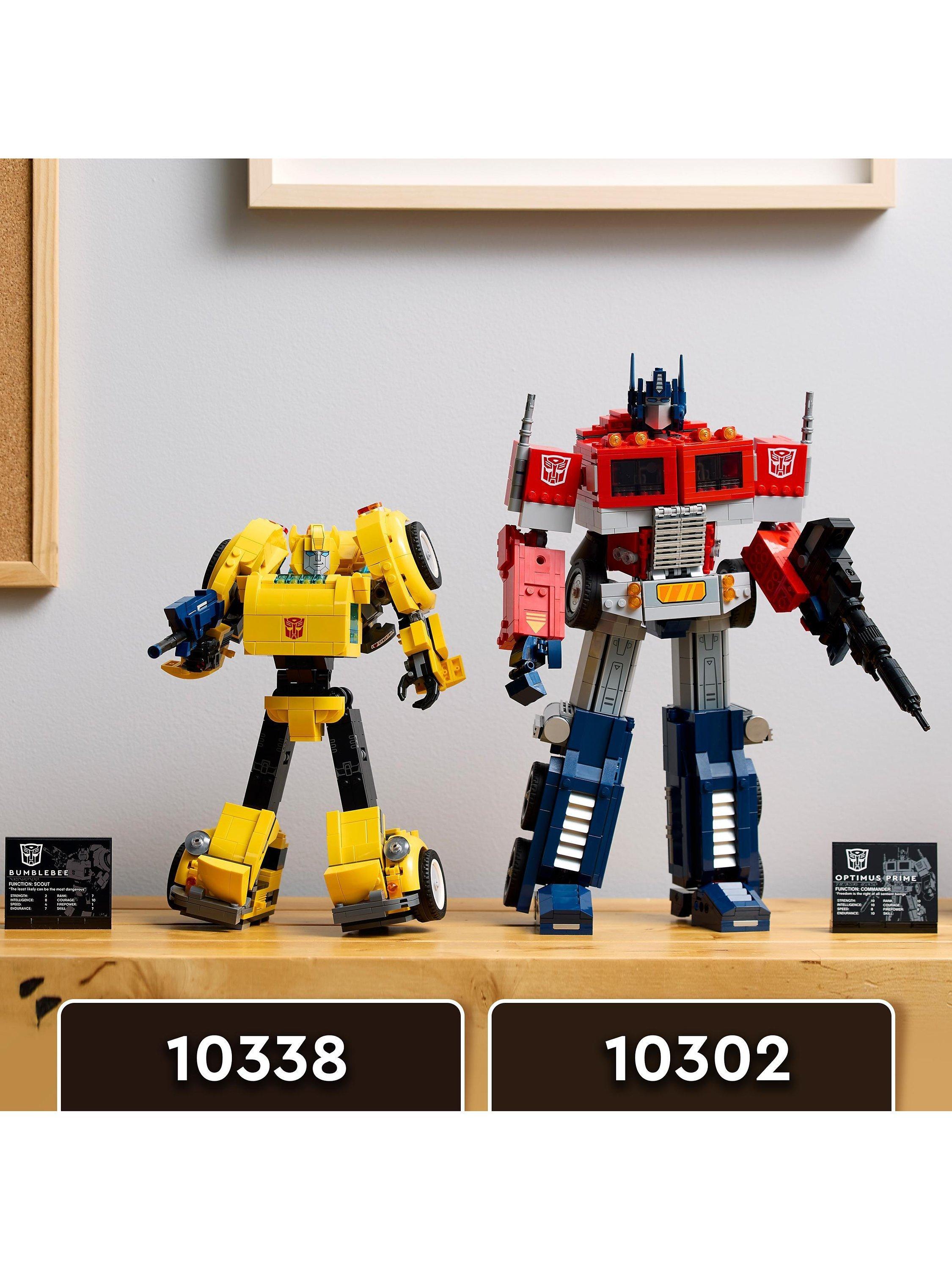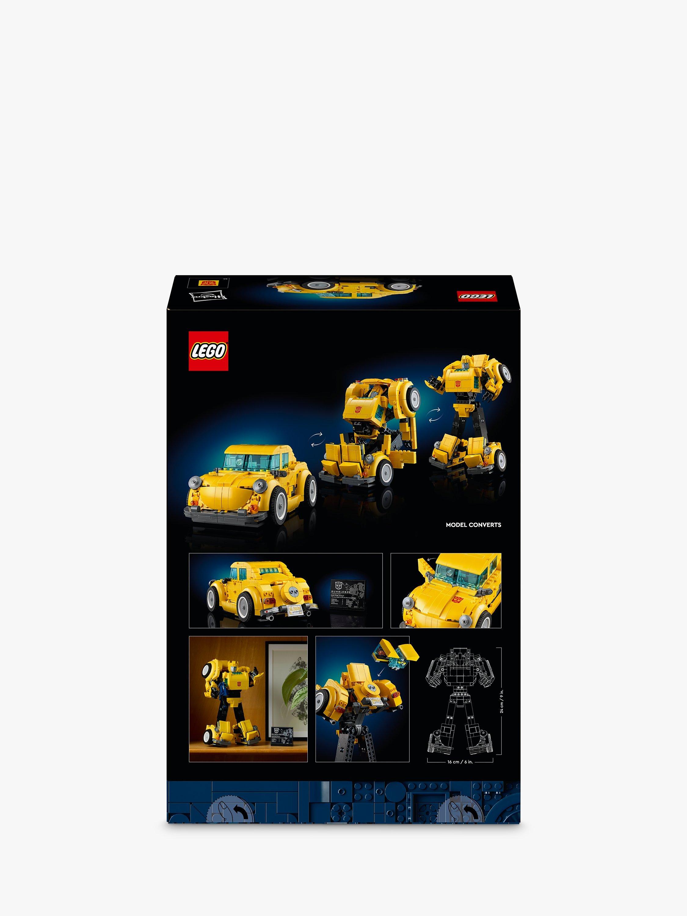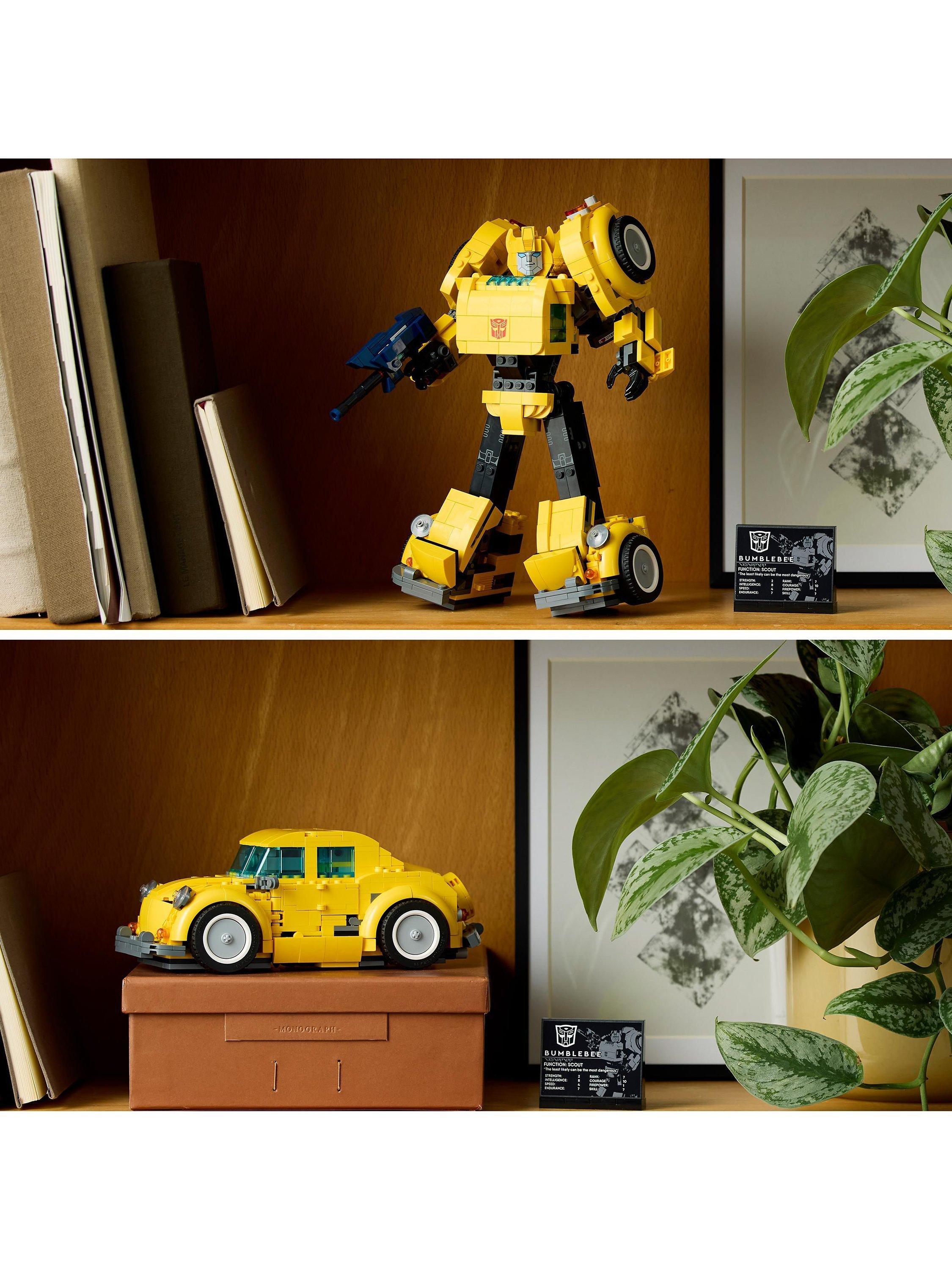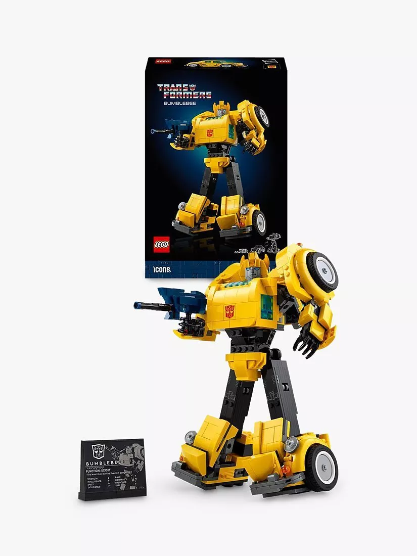 Rekindle your passion for the Transformers universe with this LEGO Icons Transformers Bumblebee (10338) model kit for adults to build. Craft a meticulously detailed model of the iconic 1980s robot action figure that converts from Autobot to vehicle mode. The buildable Transformers figure features articulated joints, an ion blaster and a jetpack. A display plaque listing power statistics adds the finishing touch for a captivating display.