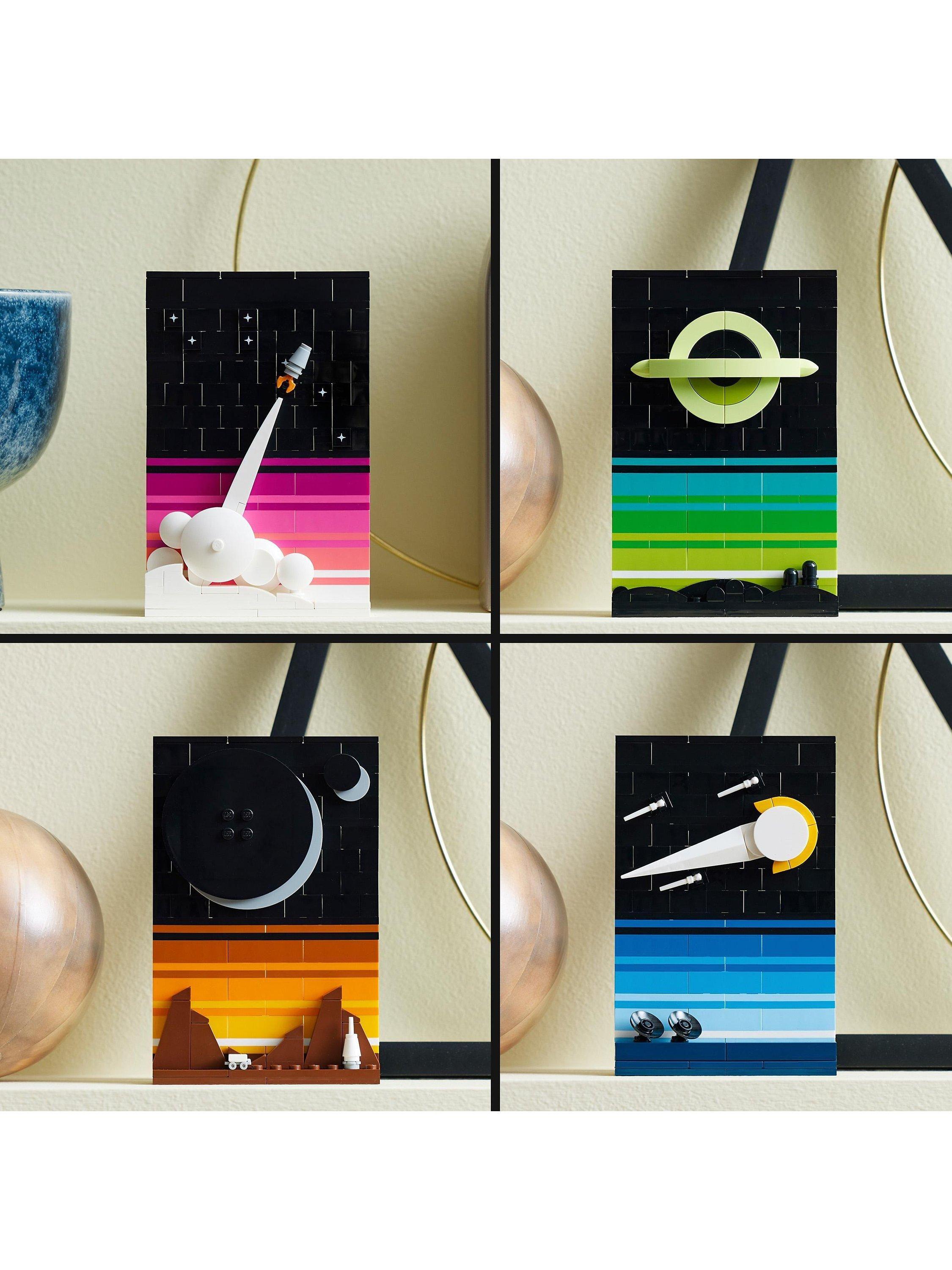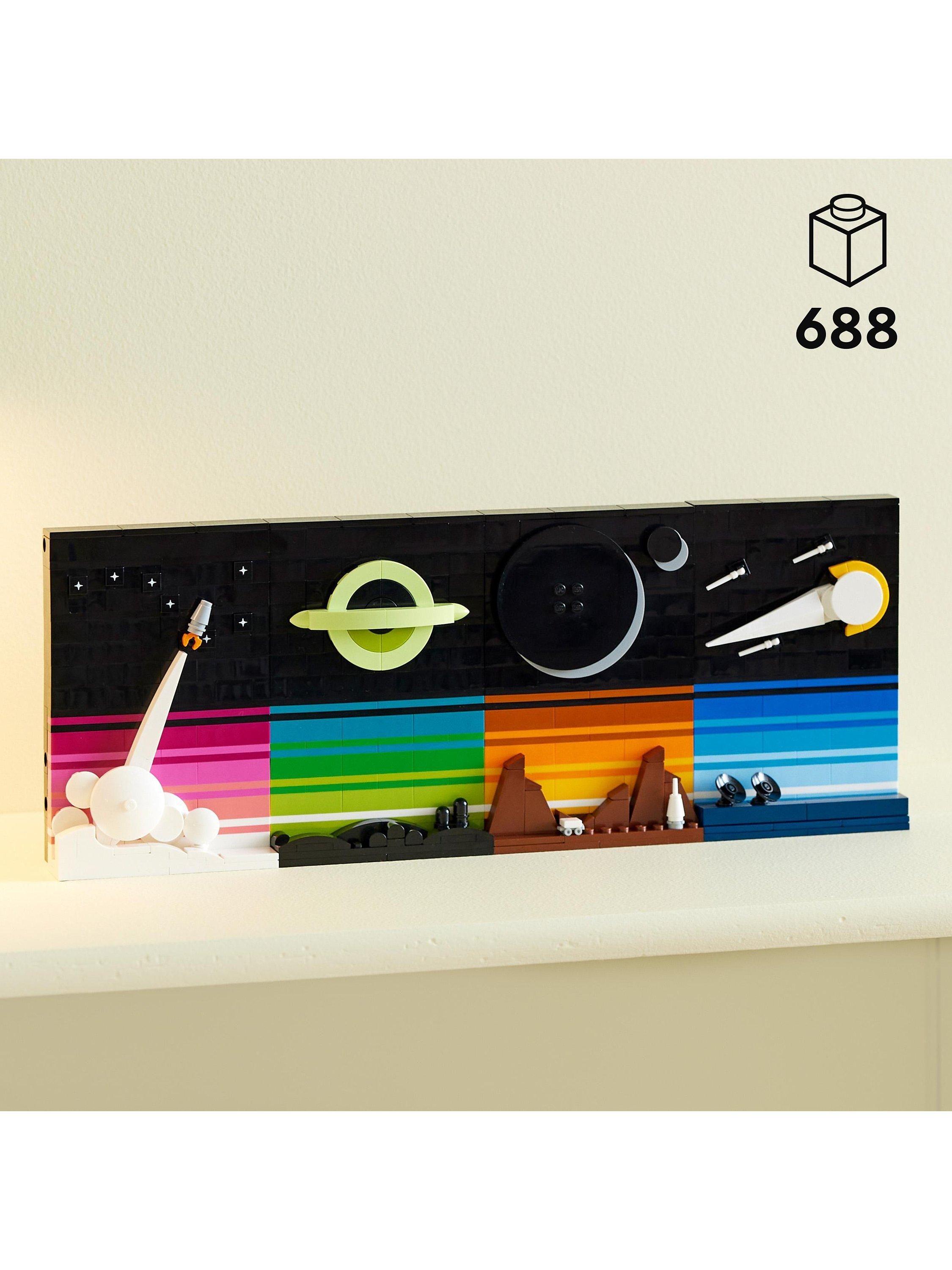 - Contains 688 pieces and comes with 4 connectable, space-themed designs