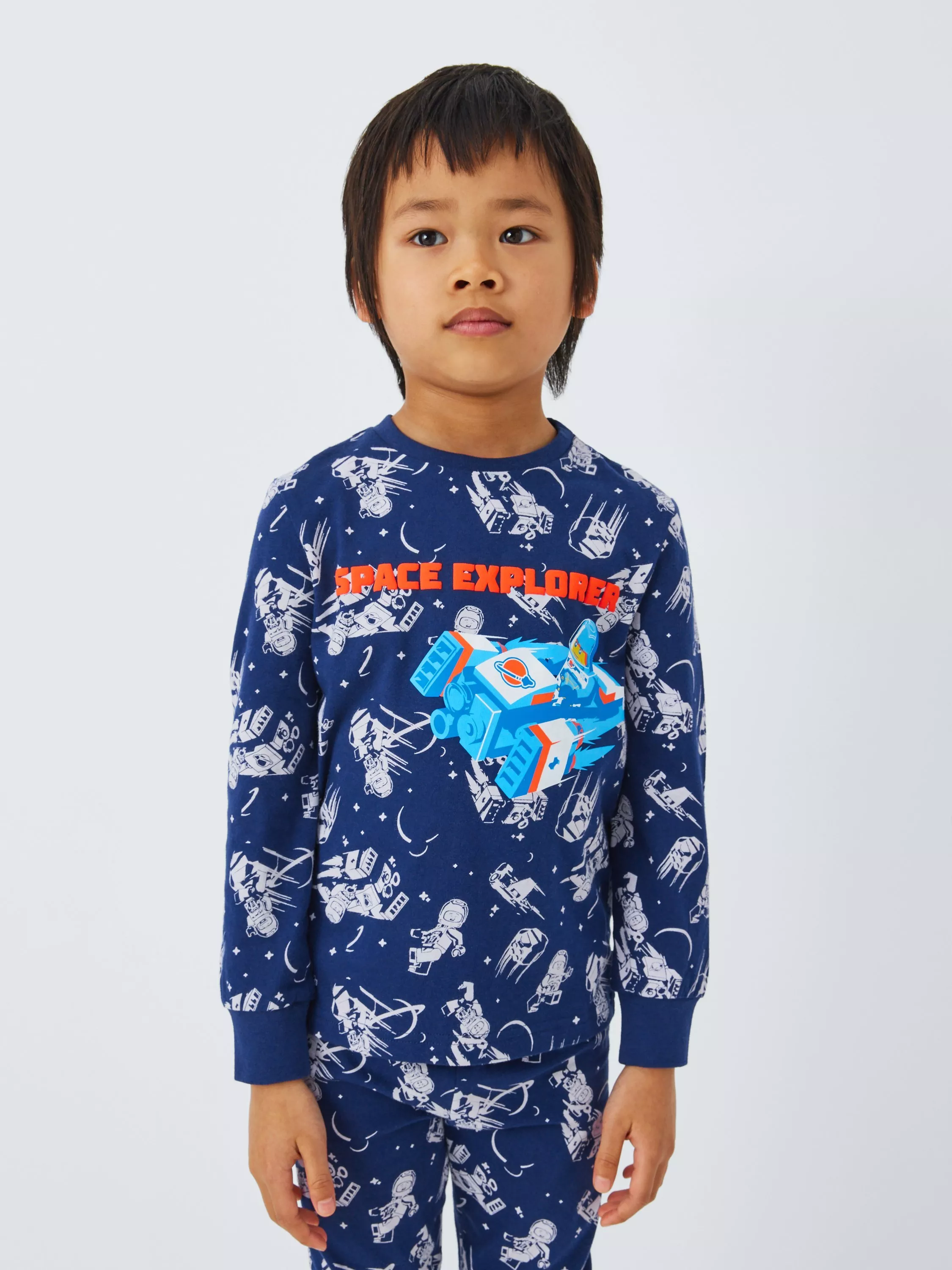 Stylish pyjamas with Lego City Space theme all over print and puff printed logo.