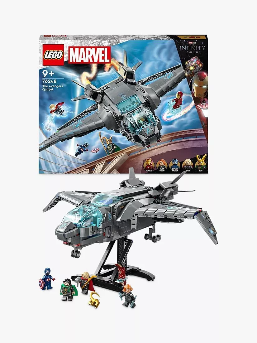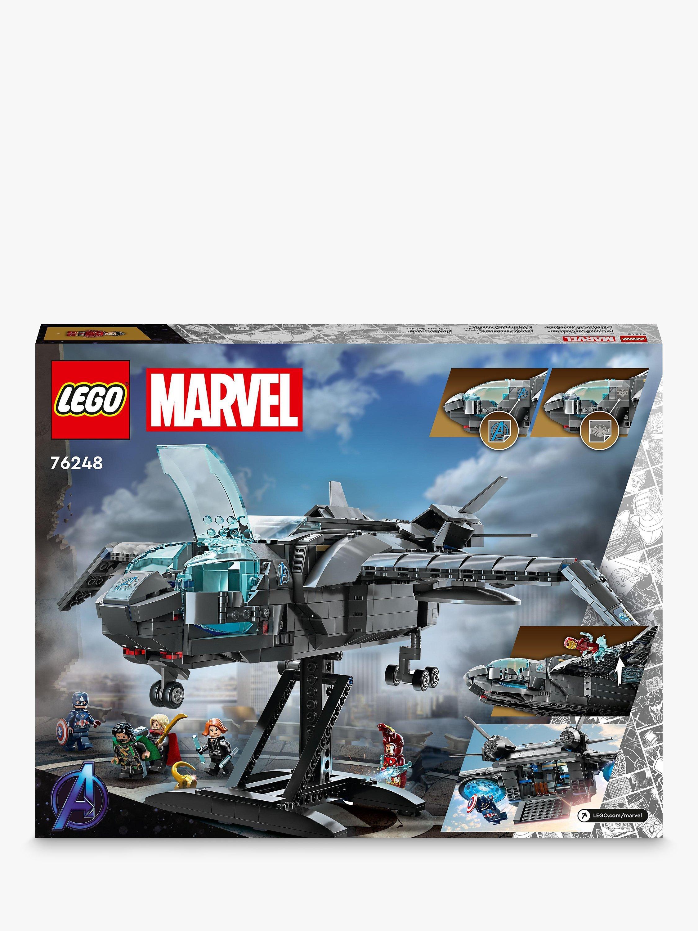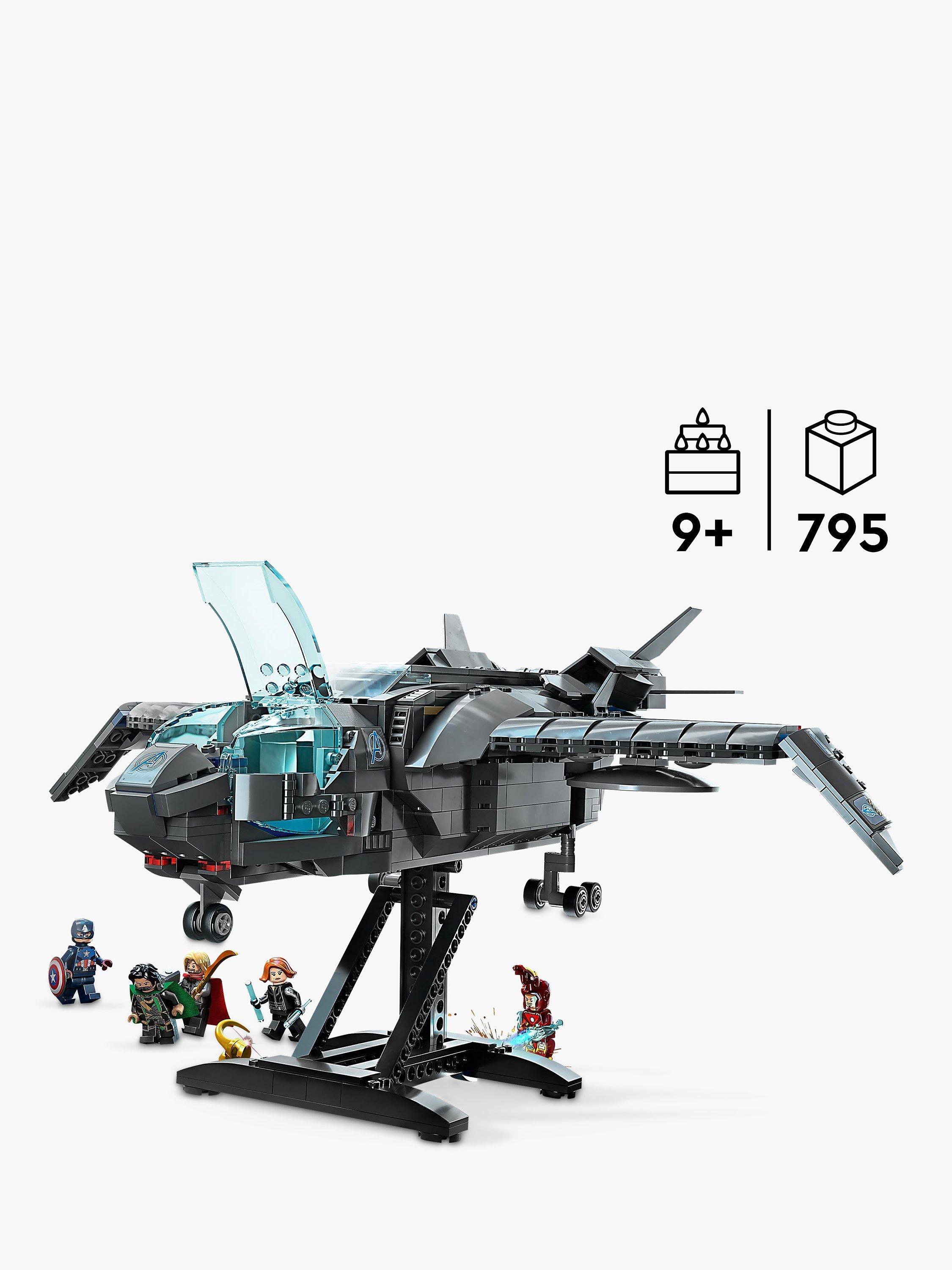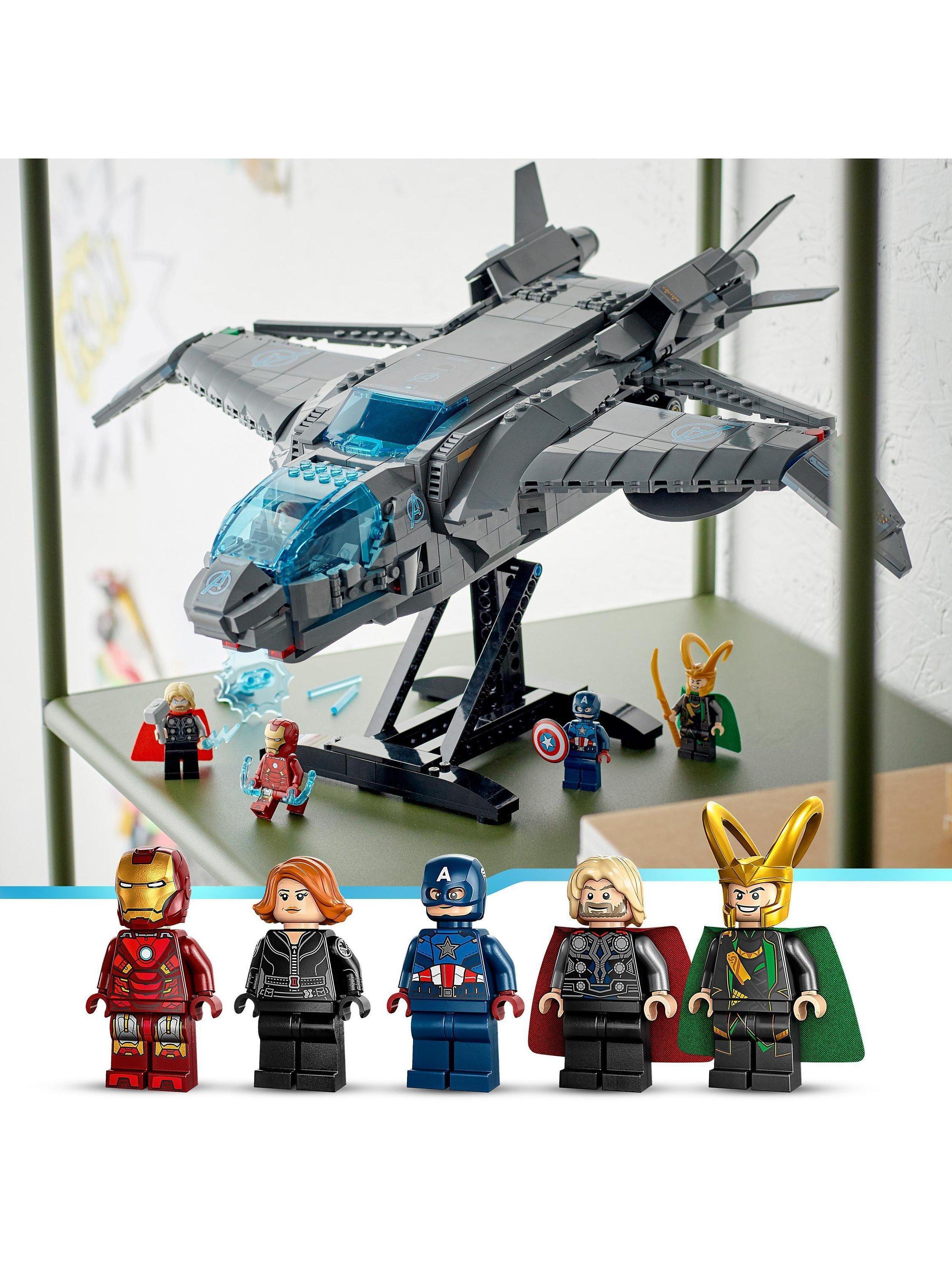 - Contains 795 pieces along with 5 minifigures: Black Widow, Thor with his hammer, Iron Man, Captain America with his shield and Loki with his sceptre