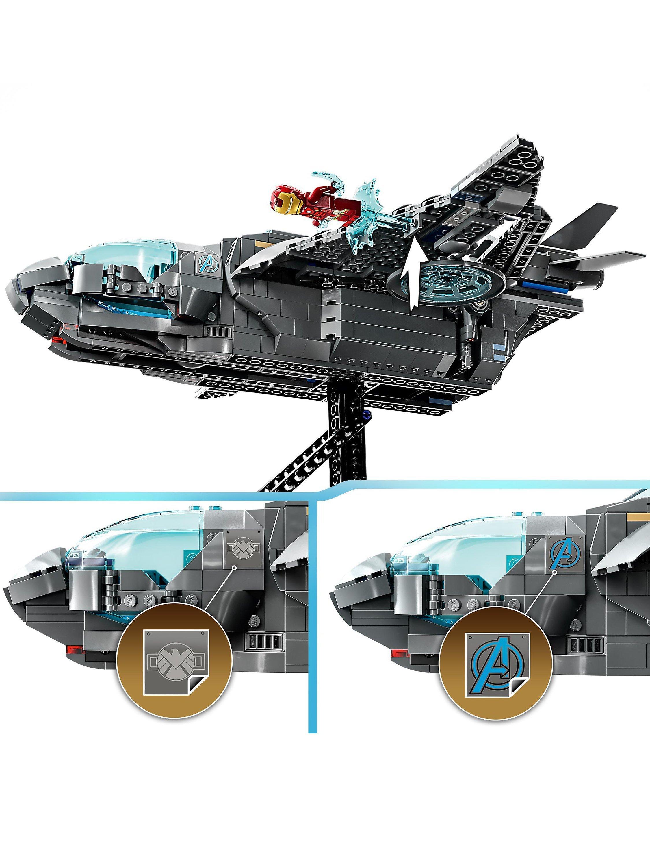 - Fully assembled, the Quinjet measure over 14cm tall, 35cm long and 34cm wide