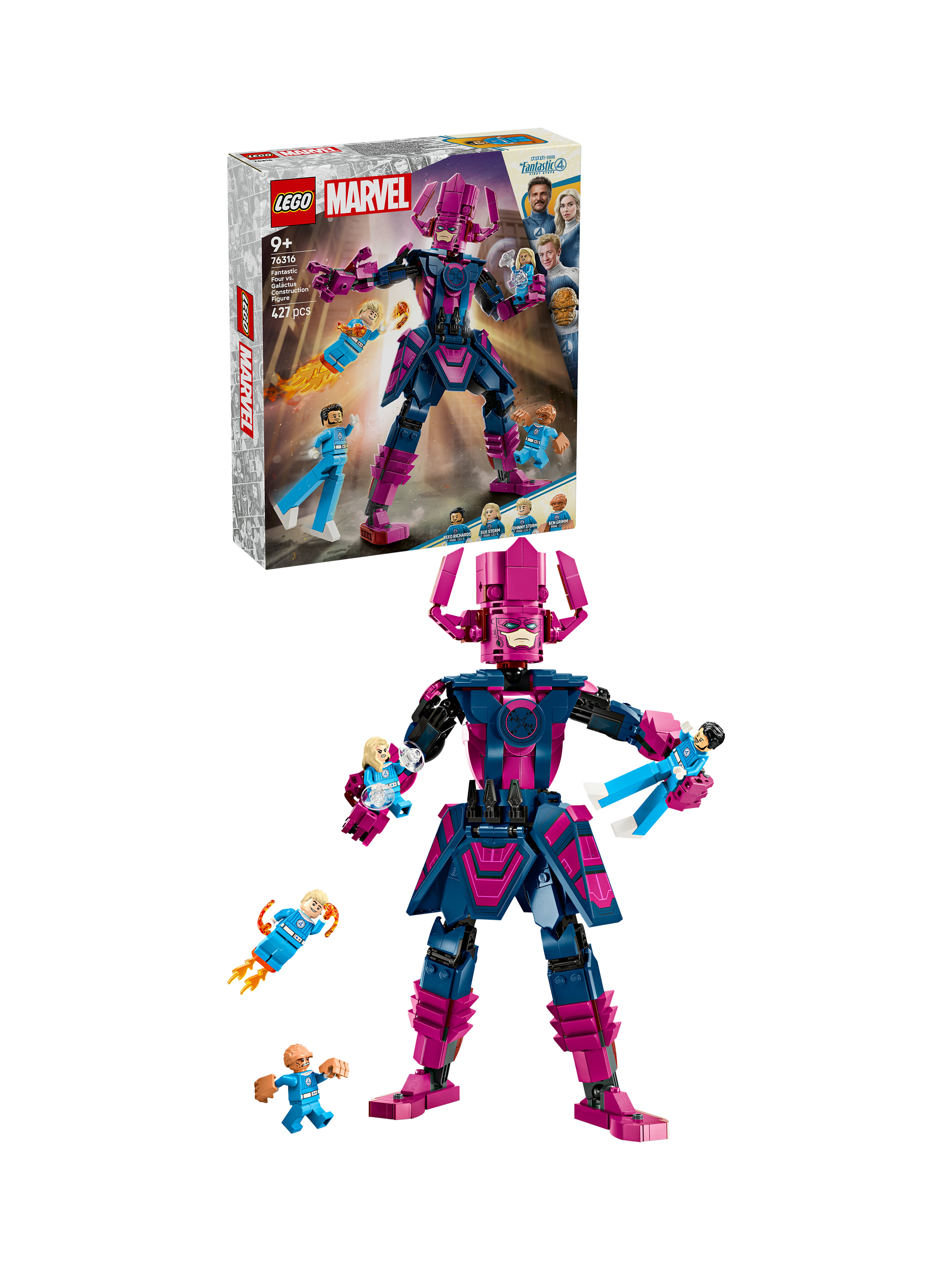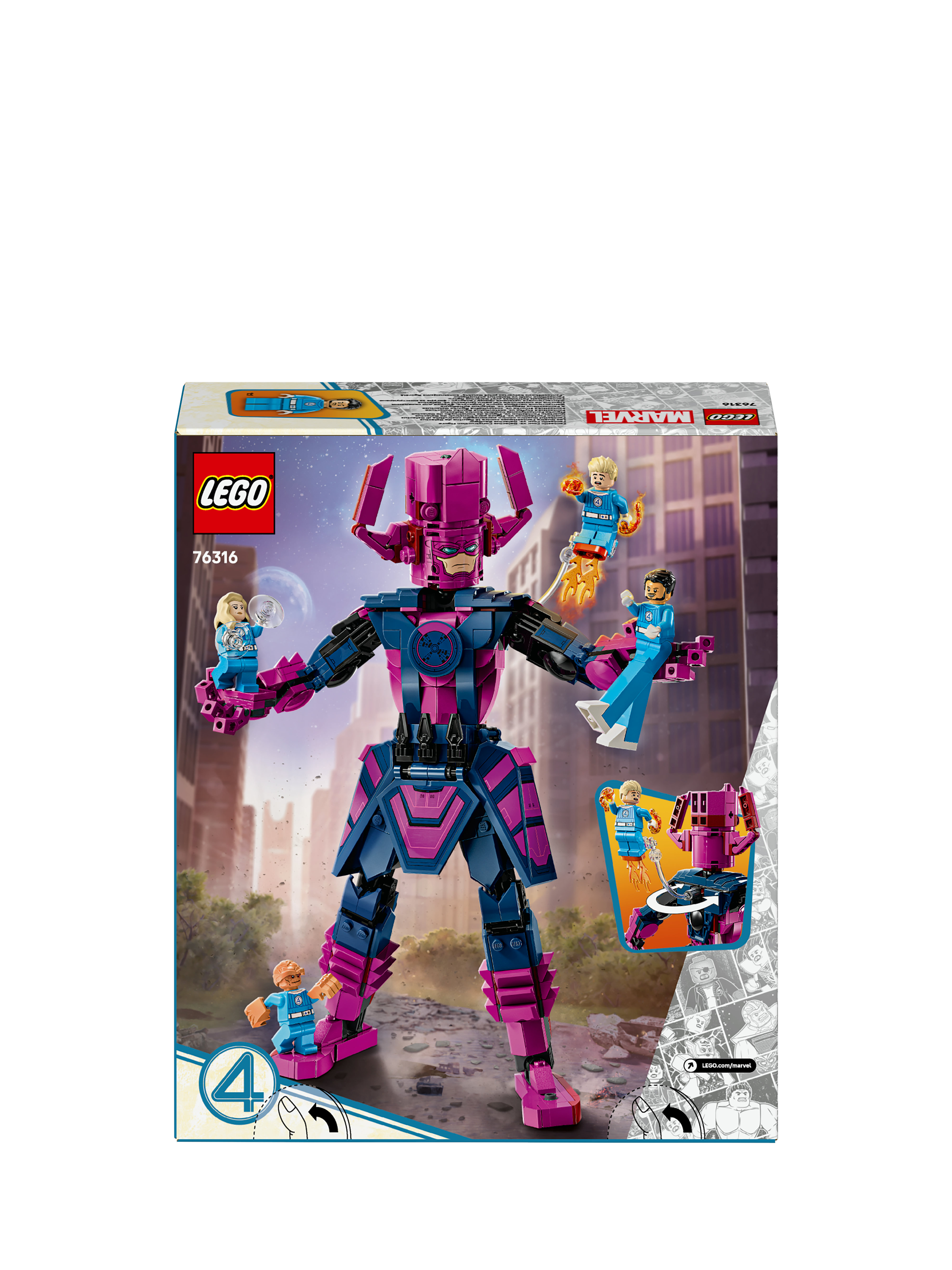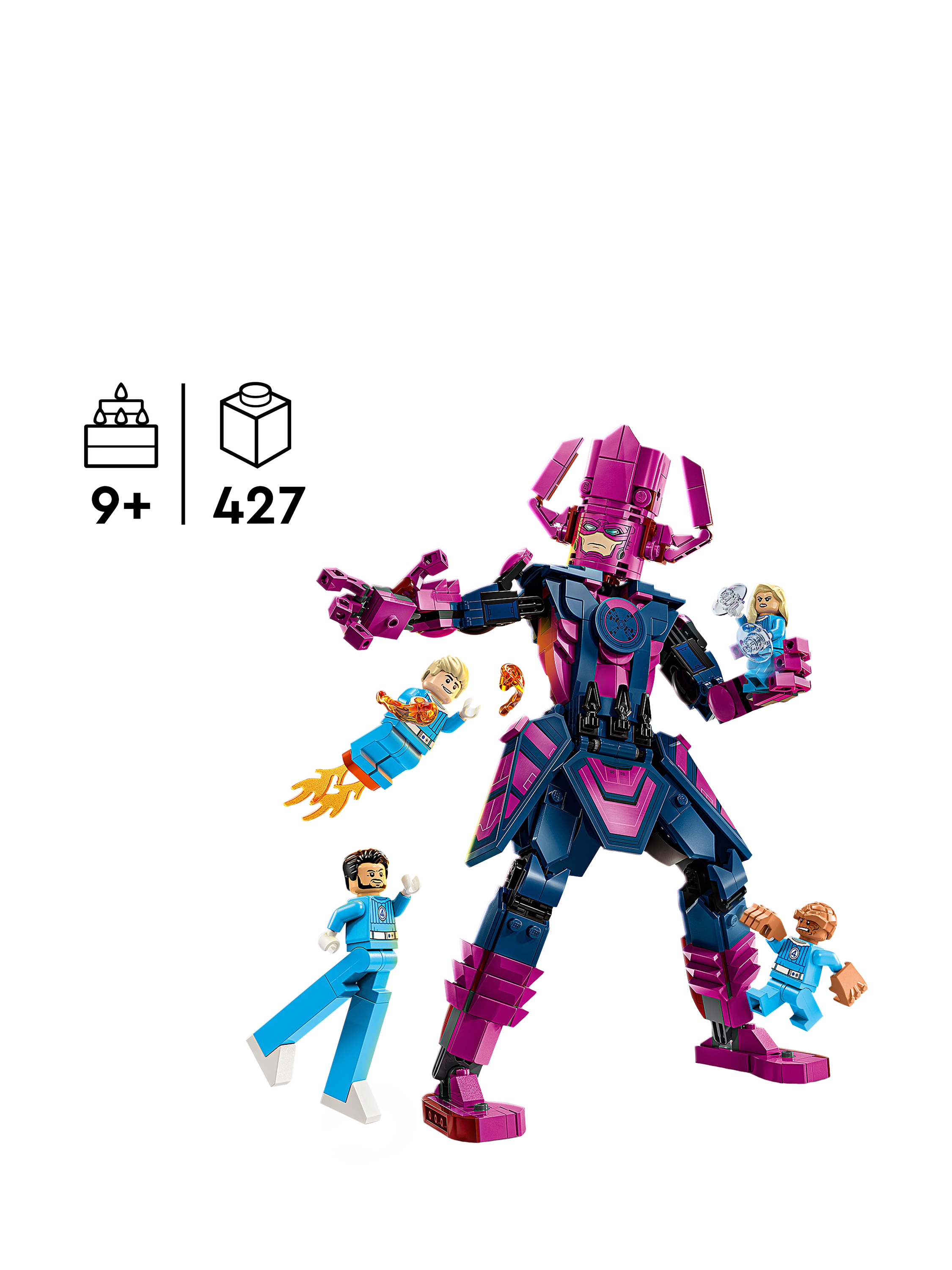 A fully jointed construction figure of the film's iconic villain, Galactus, which stands over 28cm tall is also included in the building set. This posable LEGO Marvel figure prompts endless action as he battles the Super Heroes.