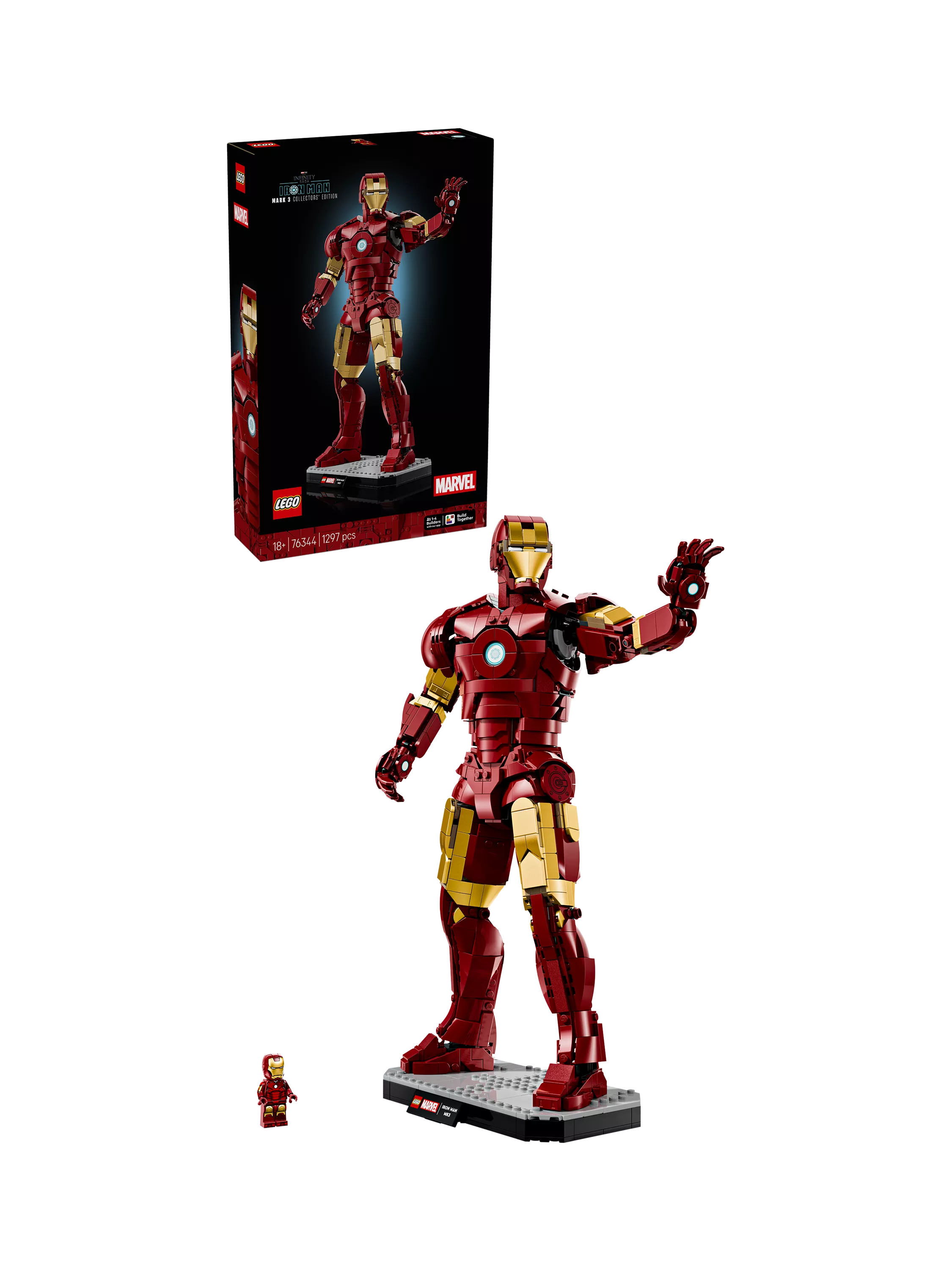 Fans of Super Hero action can recreate Iron Man's appearance in Marvel Studios’ Avengers: Infinity Saga with the LEGO Marvel Iron Man Mark 3 Collector's Edition (76344) building set for adults. This impressive, 1,297-piece Marvel figure stands over 38cm (15 inches) tall, making it a great birthday or everyday gift for Iron Man fans and LEGO lovers aged 18 and older.