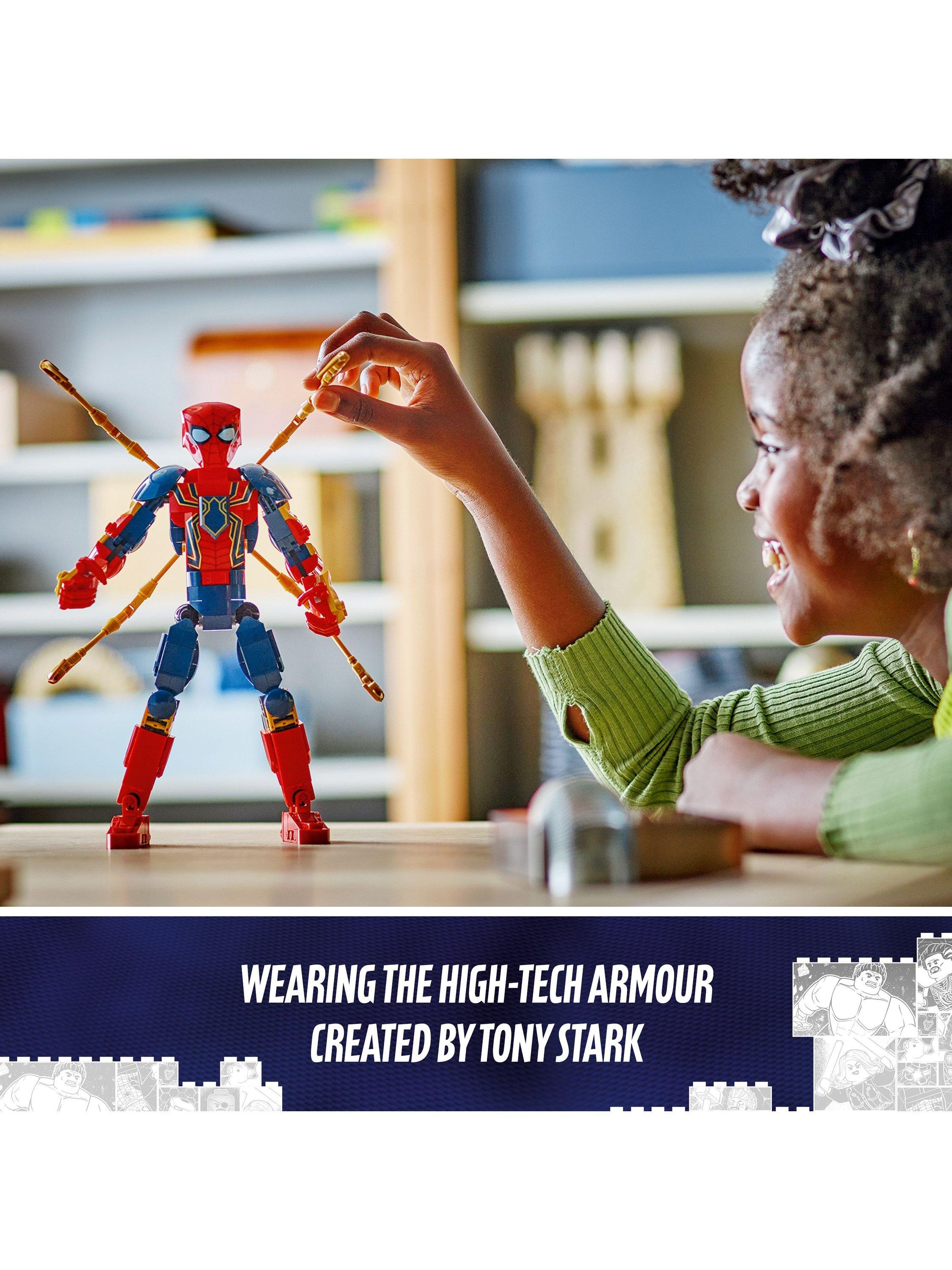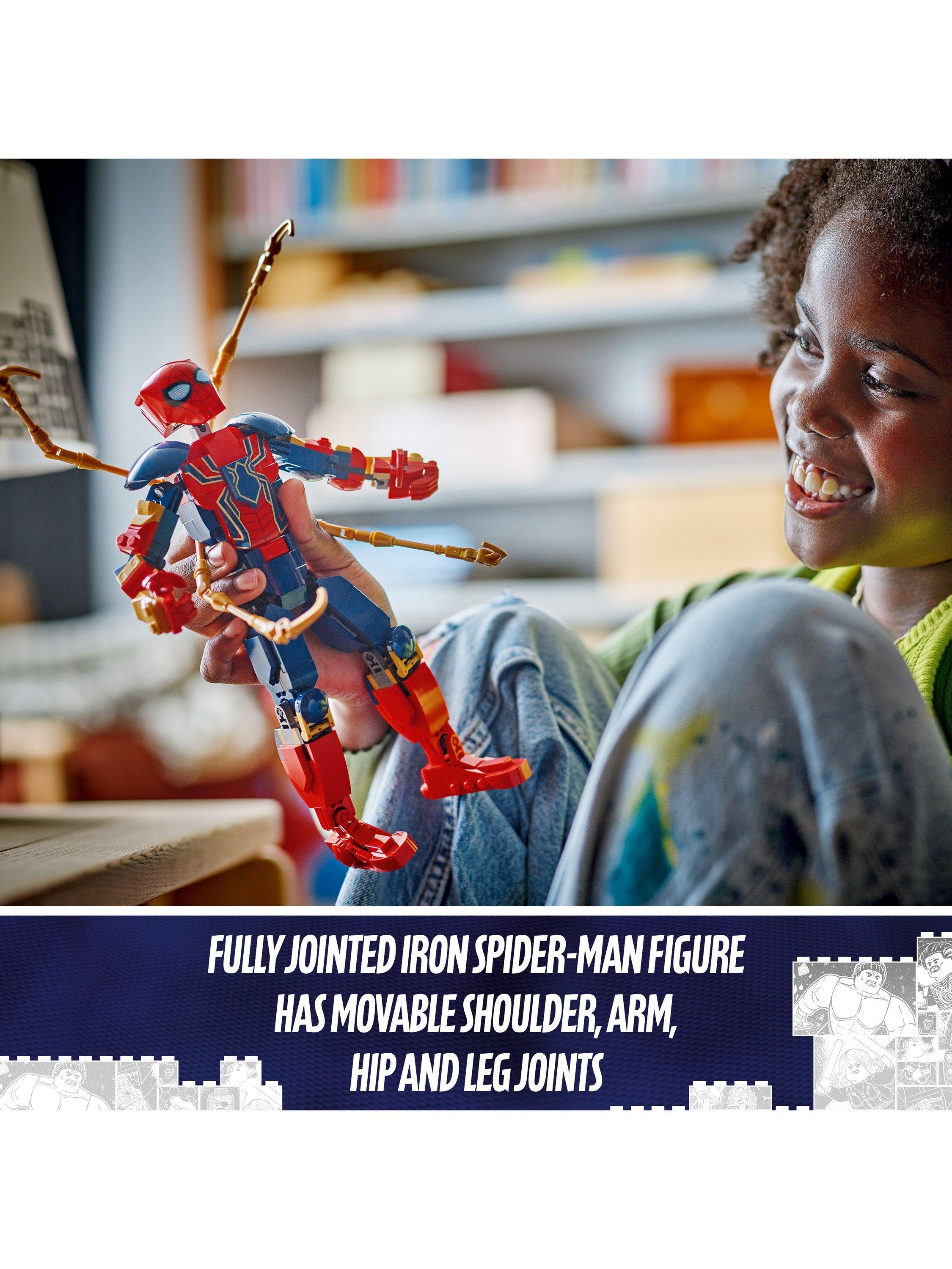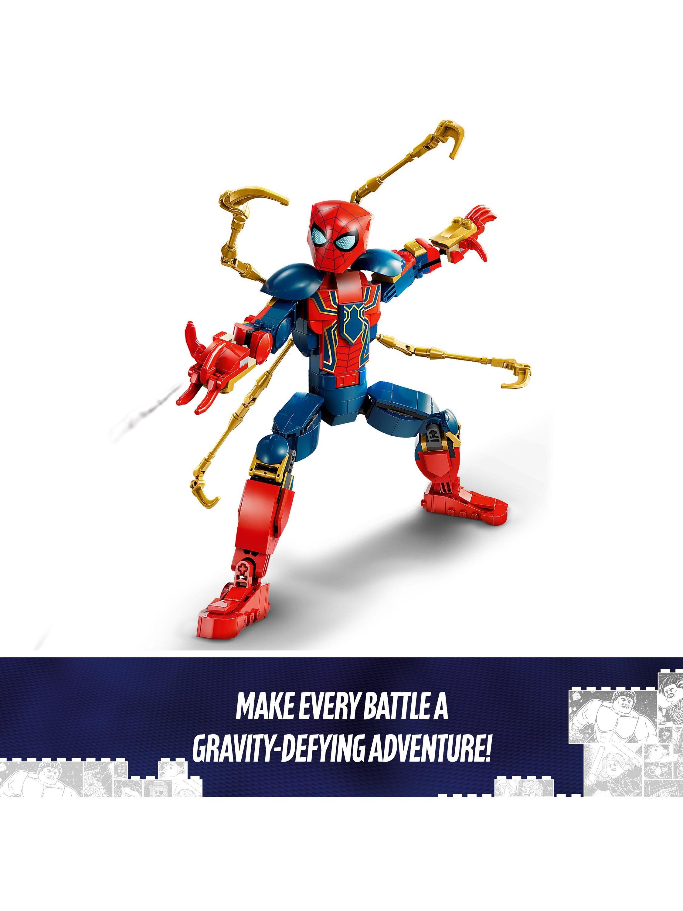 Swing into action with the LEGO® Marvel Iron Spider-Man Construction Figure and make every battle a gravity-defying adventure! Wearing the high-tech armour created by Iron Man superhero Tony Stark, the web-slinging crime fighter bends, twists and turns as he soars and swoops through the streets, bringing villains to justice with the help of his four robot arms.