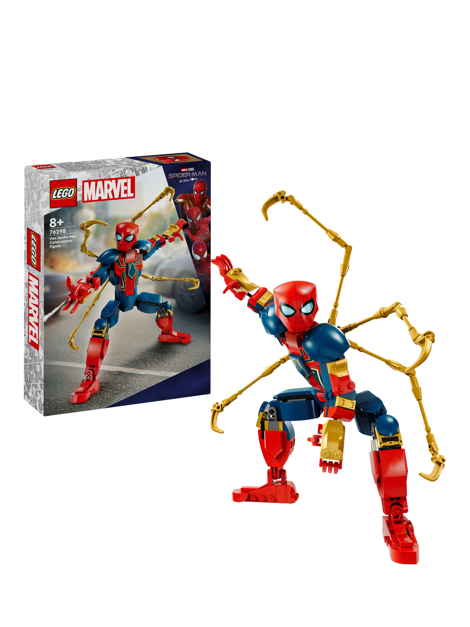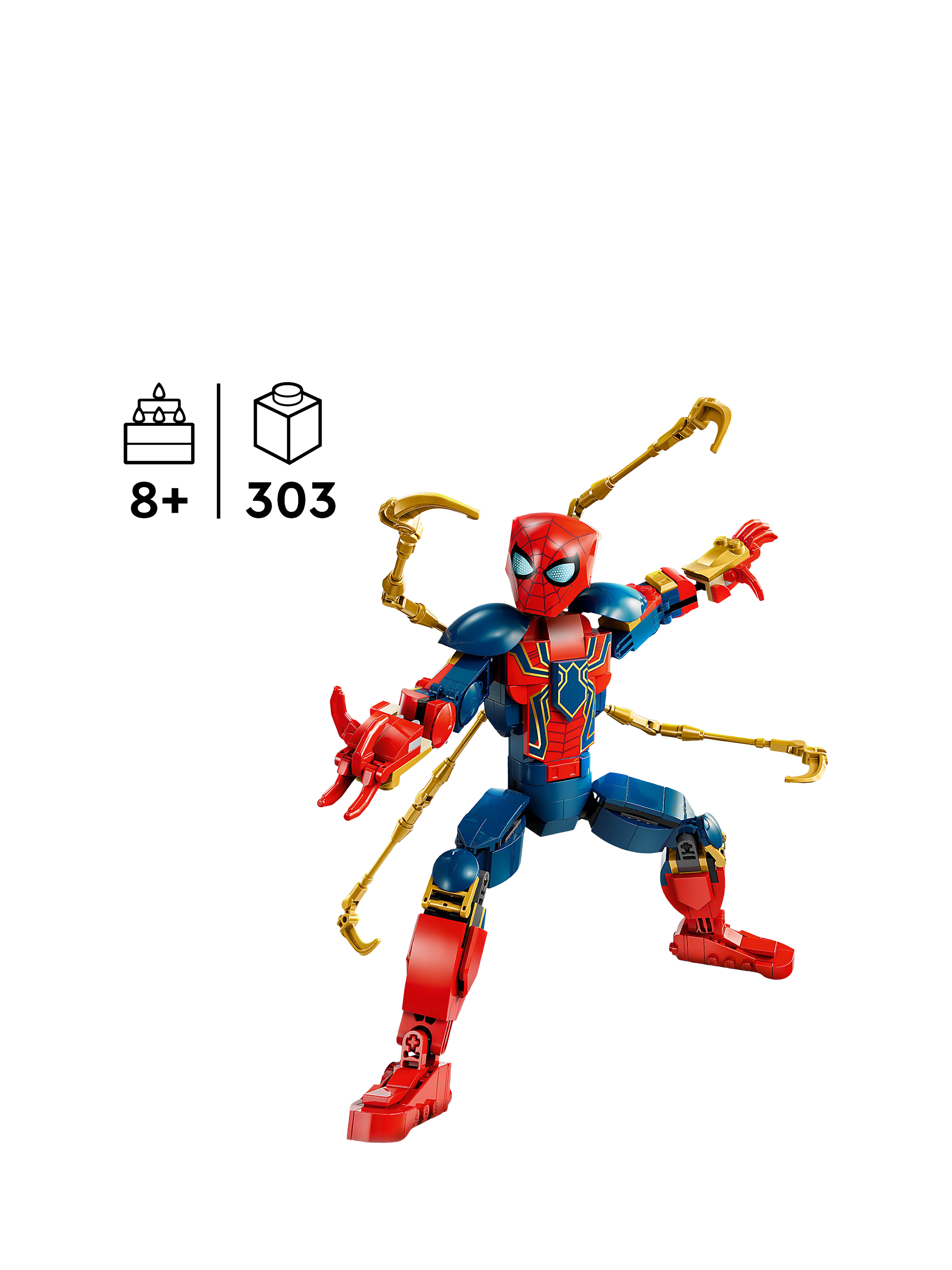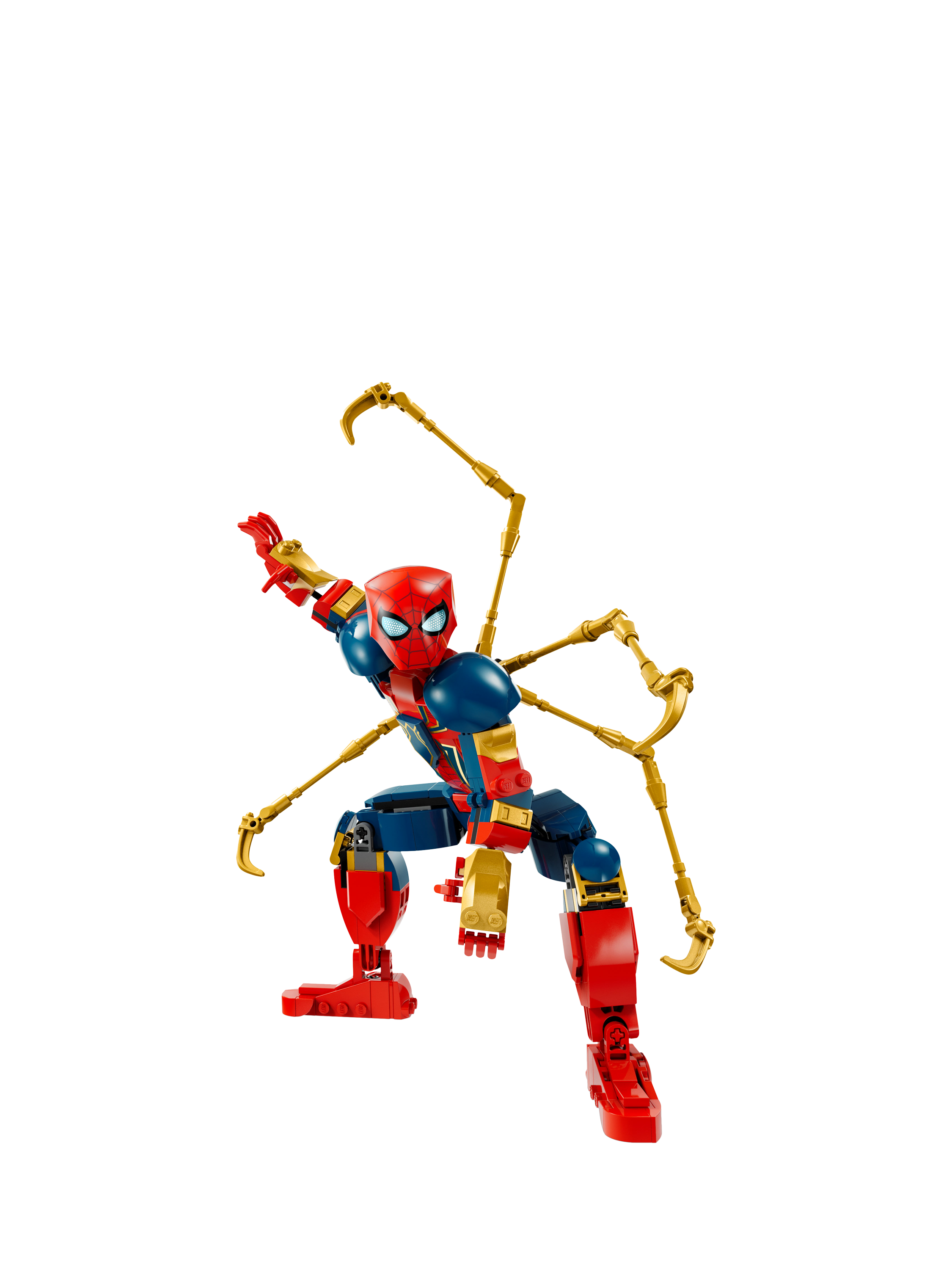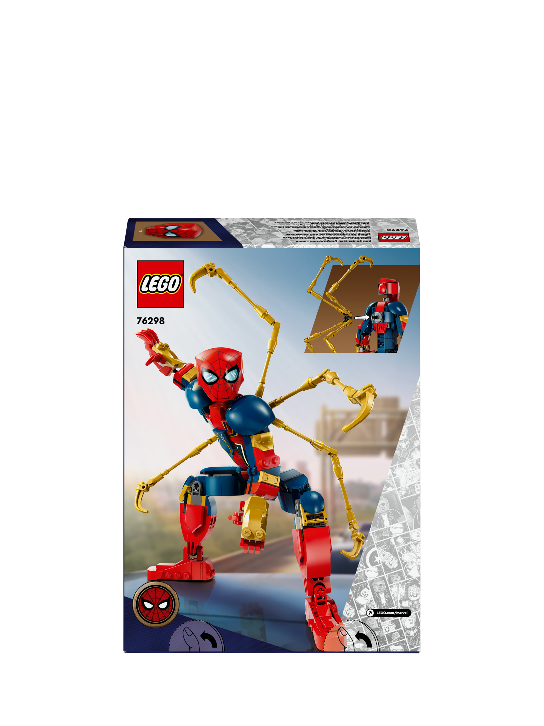 Swing into action with the LEGO® Marvel Iron Spider-Man Construction Figure and make every battle a gravity-defying adventure! Wearing the high-tech armour created by Iron Man superhero Tony Stark, the web-slinging crime fighter bends, twists and turns as he soars and swoops through the streets, bringing villains to justice with the help of his four robot arms.