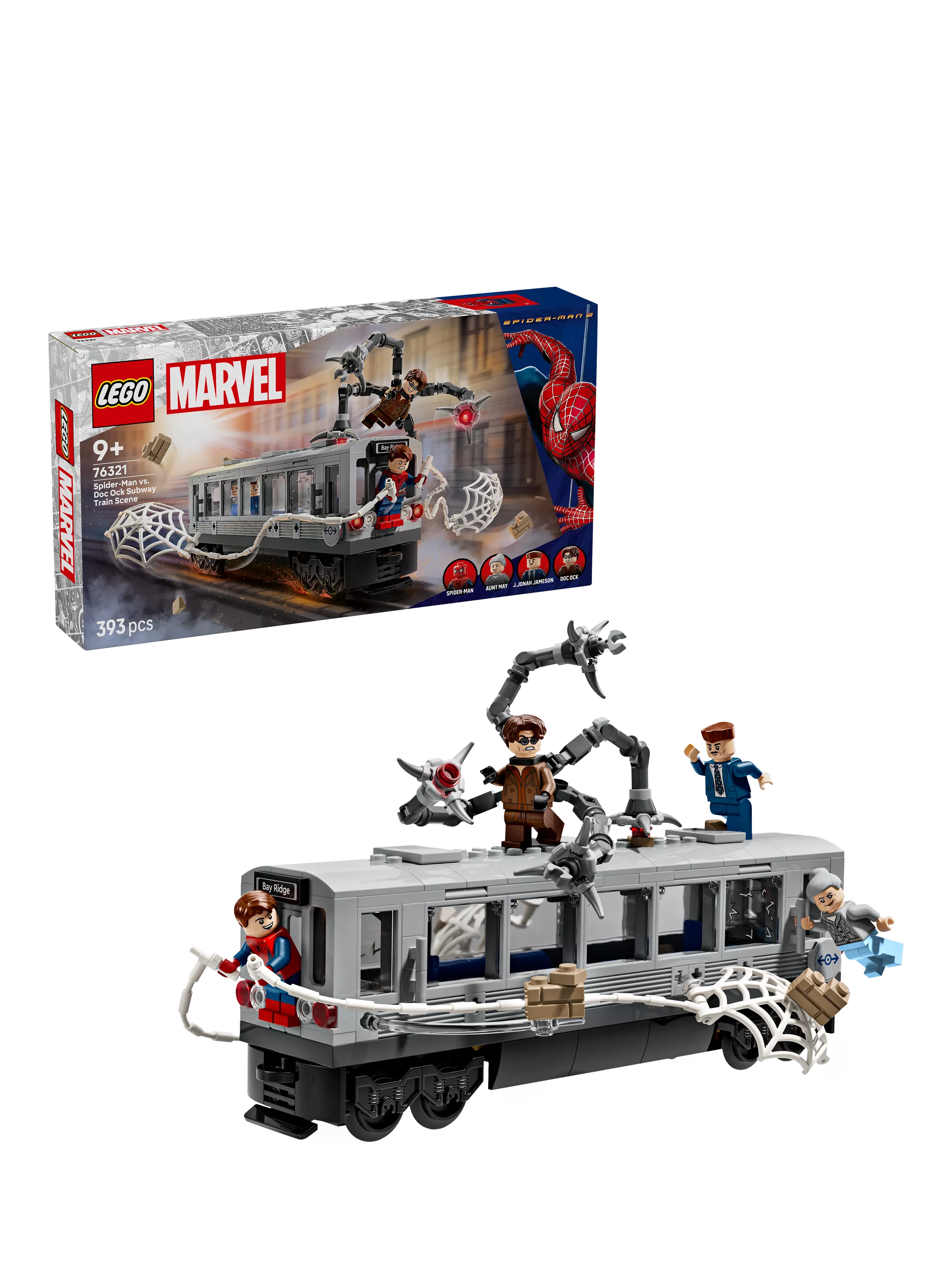 LEGO® Marvel Spider-Man vs. Doc Ock Subway Train Scene (76321) is a fun-building toy for nine+ year old kids who love action adventures and endless imaginative play-and-display possibilities.