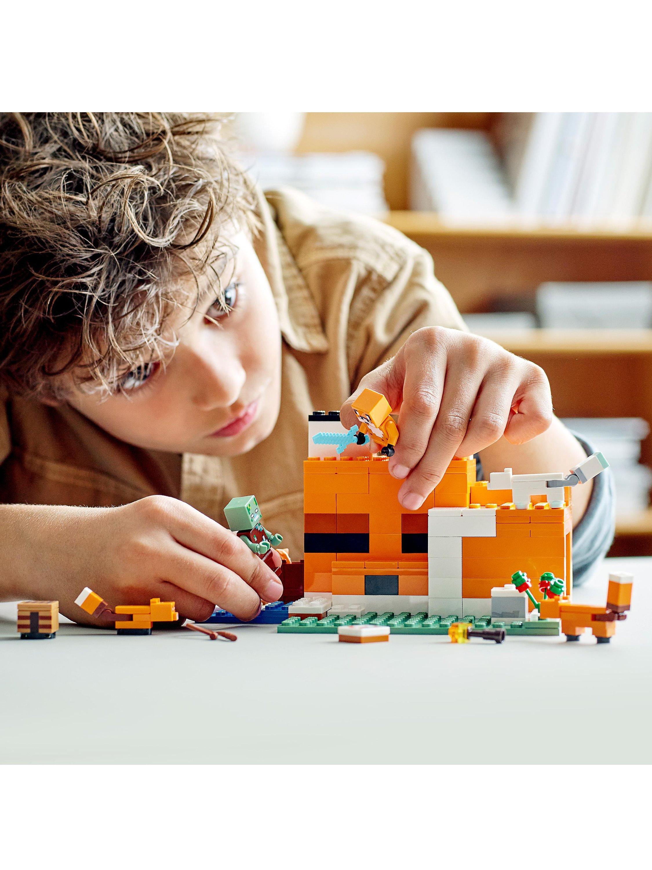 Kids use their Minecraft skills to build a house designed like a sleeping fox with this awesome LEGO set.