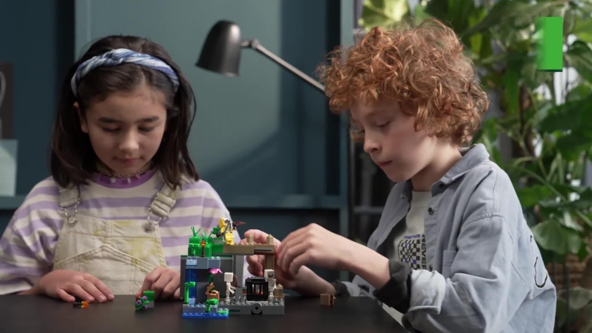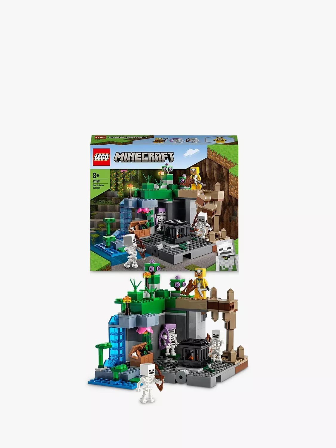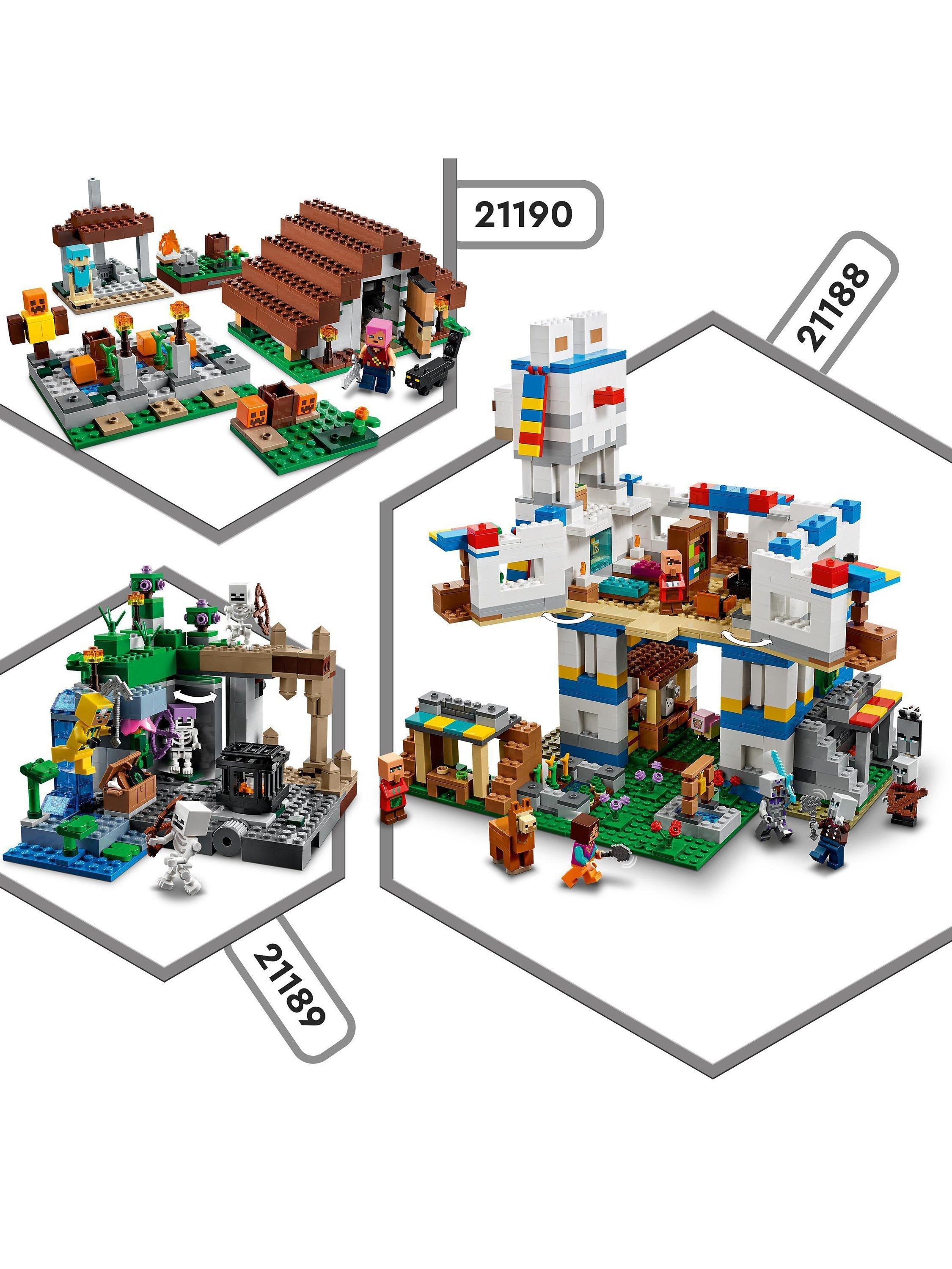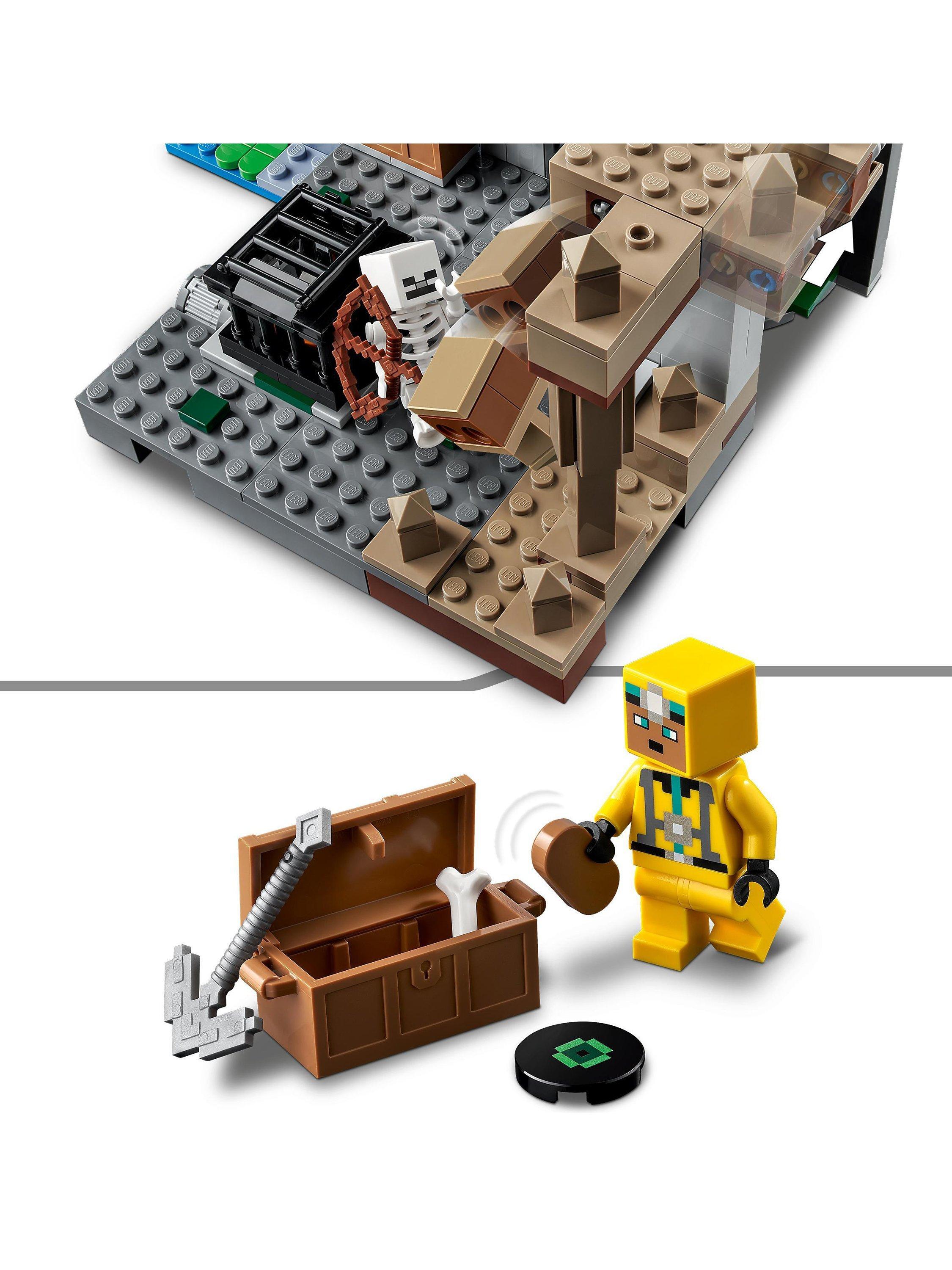 - Includes 364 bricks and includes a cave explorer, 3 skeletons and 3 biomes: a dripstone cave with a rock-fall function; a lush cave with bushes, clay and torches; and a dungeon with a skeleton spawner