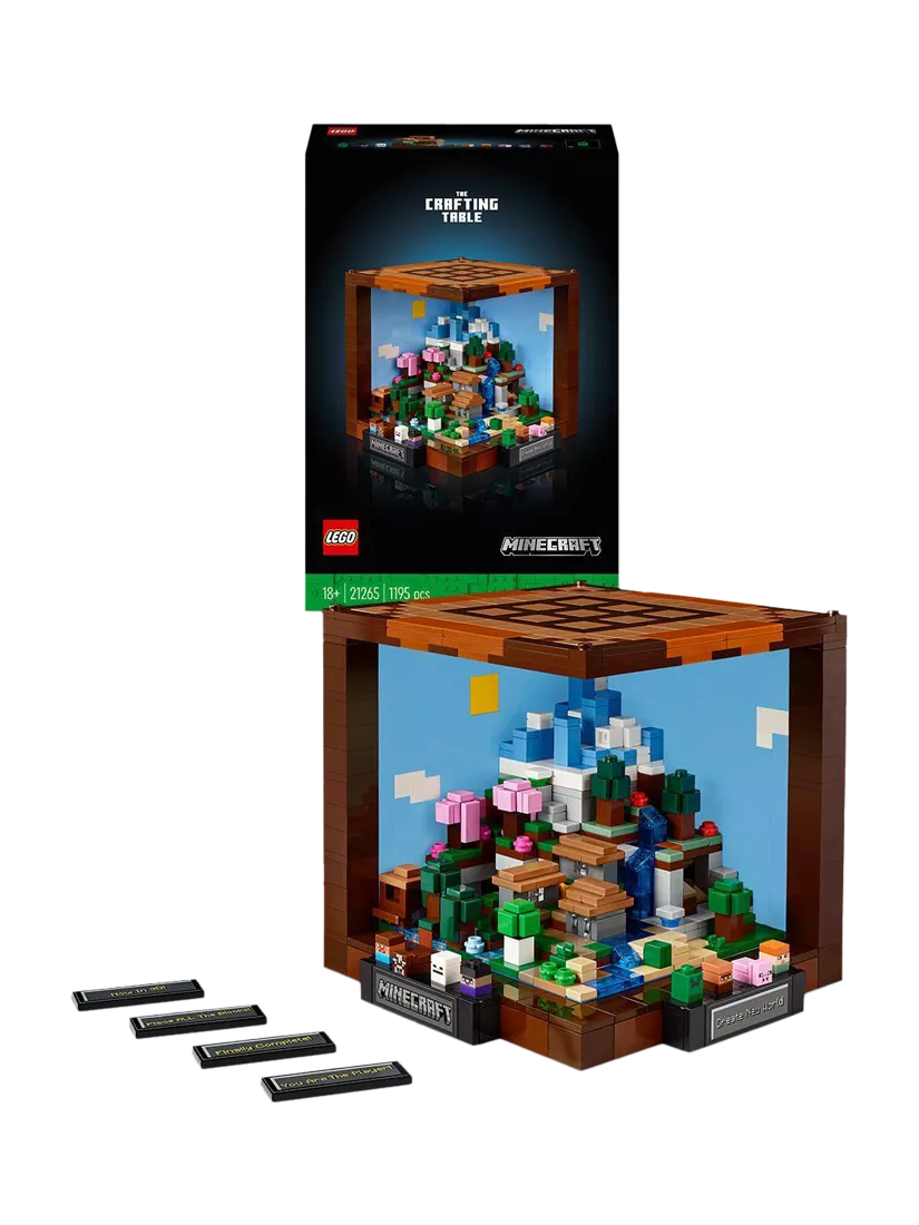 Celebrate Minecraft® creativity with this LEGO® building set for adults designed for the 15th anniversary of the popular video game. Included within LEGO Minecraft The Crafting Table (21265) are familiar biomes, favourite mobs and hidden Easter eggs for adult fans of the game to discover and display.