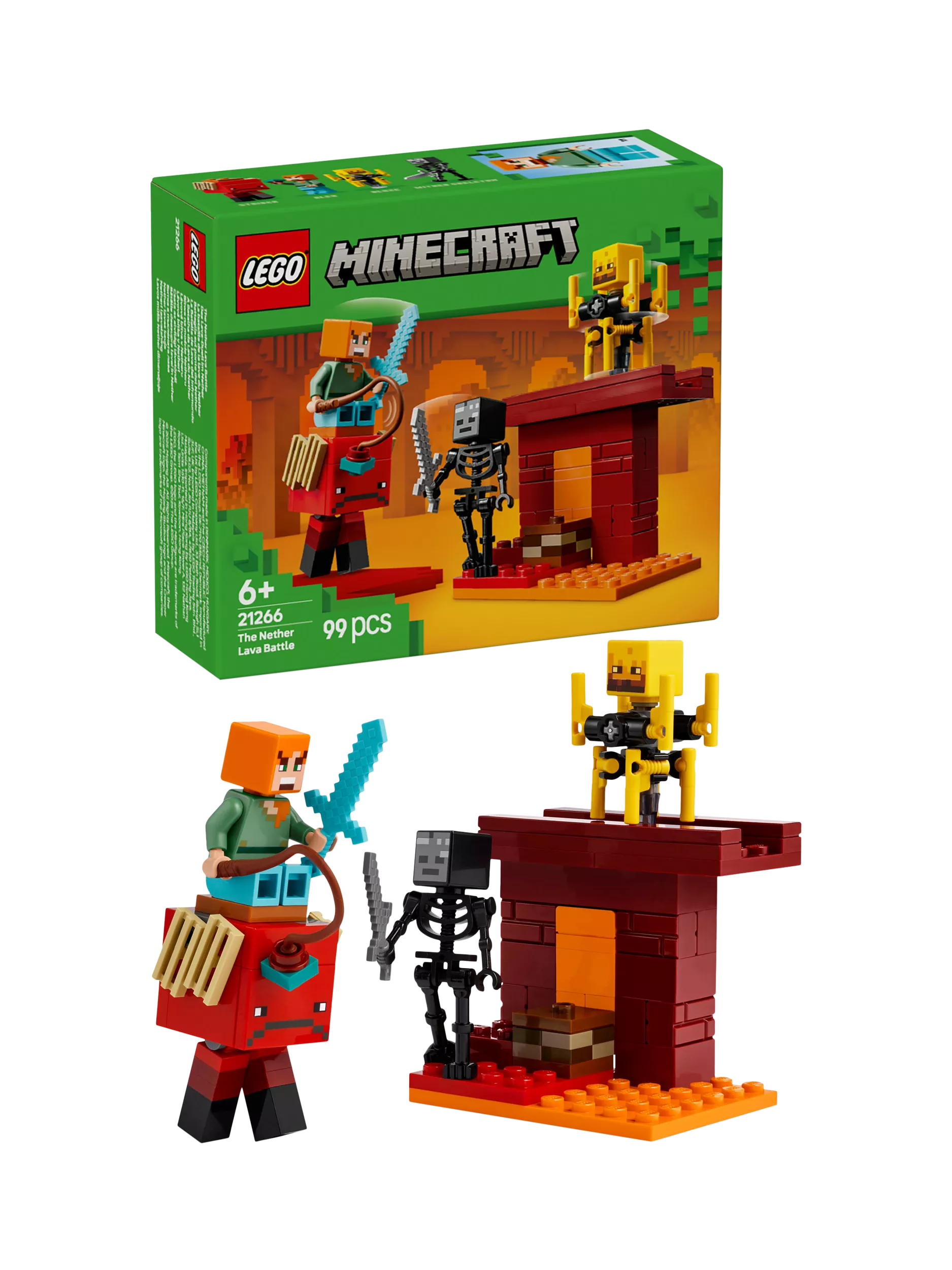 The Nether Lava Battle (21266) is a small LEGO® Minecraft® set that provides a build-and-play version of the popular video game. This versatile Minecraft activity set features popular gaming figures, fun features and endless action, making it the perfect treat for kids aged 6 and over.