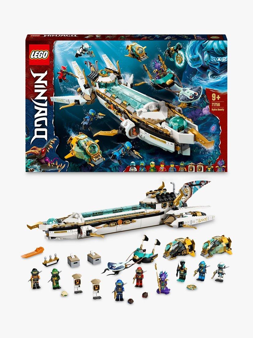 Kids can enjoy all-action battles at the bottom of the sea with this brilliantly detailed NINJAGO® Hydro Bounty LEGO® set. The underwater vehicle comes with 10 minifigures and is crammed with cool features - 2 spring-loaded shooters, an opening cockpit, folding wings, a detachable mech and 2 mini-submarines, all to fuel the imaginations of young ninja fans!