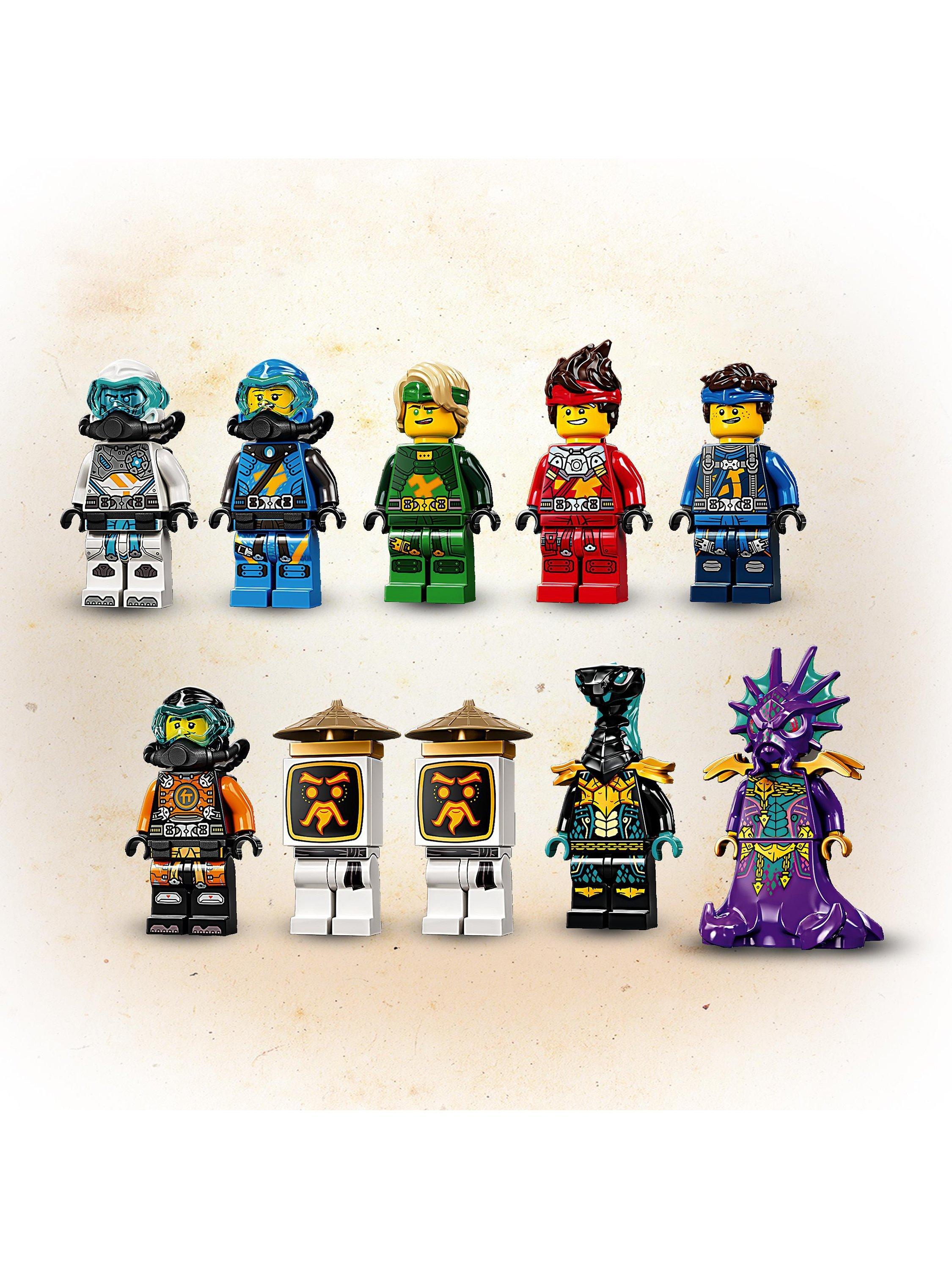 - Contains 1159 pieces and includes 10 minifigures from the NINJAGO®: Seabound TV series: Scuba Kai, Scuba Cole, Scuba Jay, Scuba Lloyd, Scuba Zane and Scuba Nya, Prince Kalmaar, a Maaray Guard and 2 Wu Bots