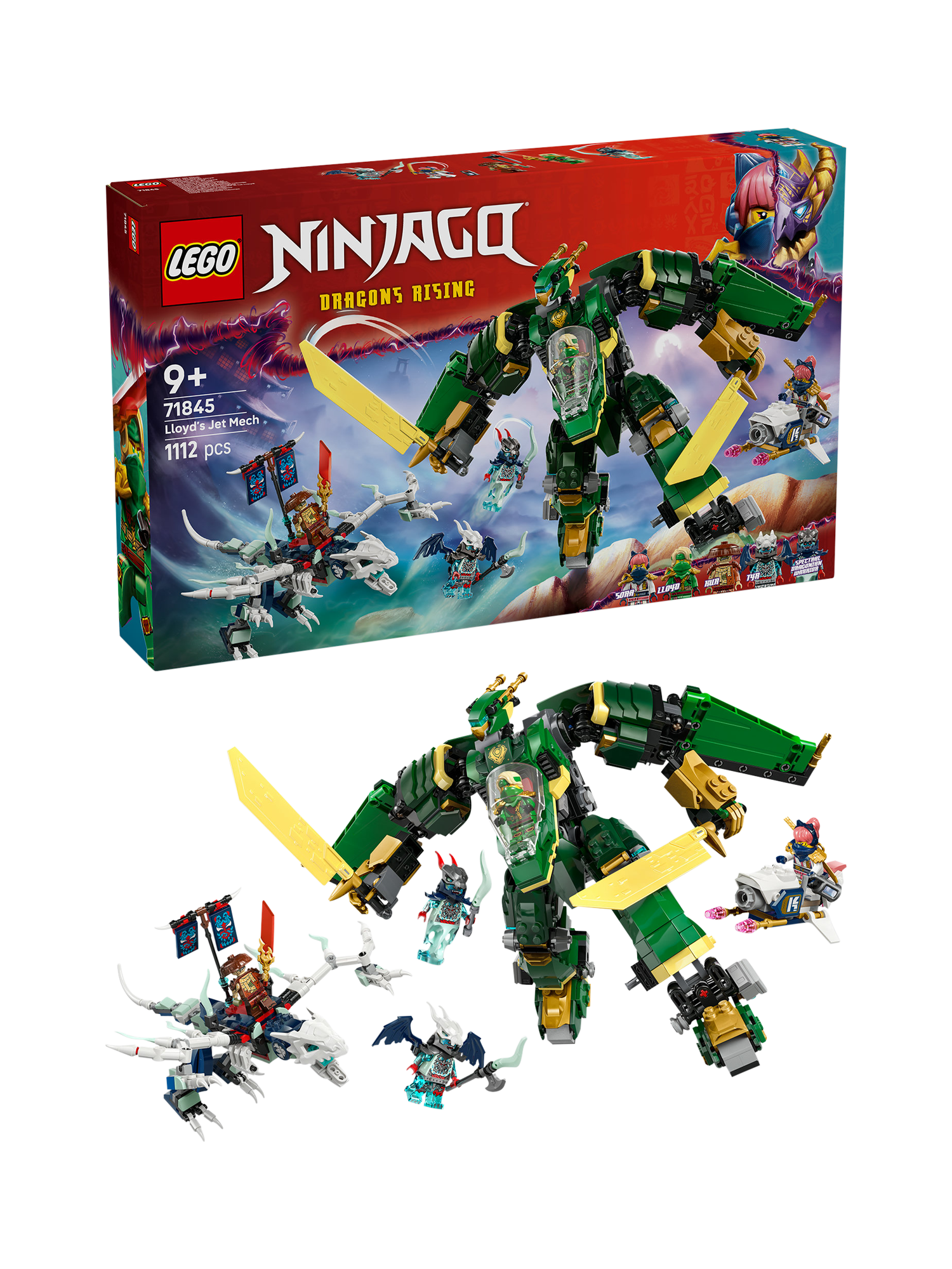 LEGO NINJAGO Lloyd's Jet Mech (71845) ninja toy for 9+ year old boys and girls lets kids enjoy adventures and battles in the air and on the ground as they recreate all-action scenes from season 3 of the NINJAGO Dragons Rising TV show.